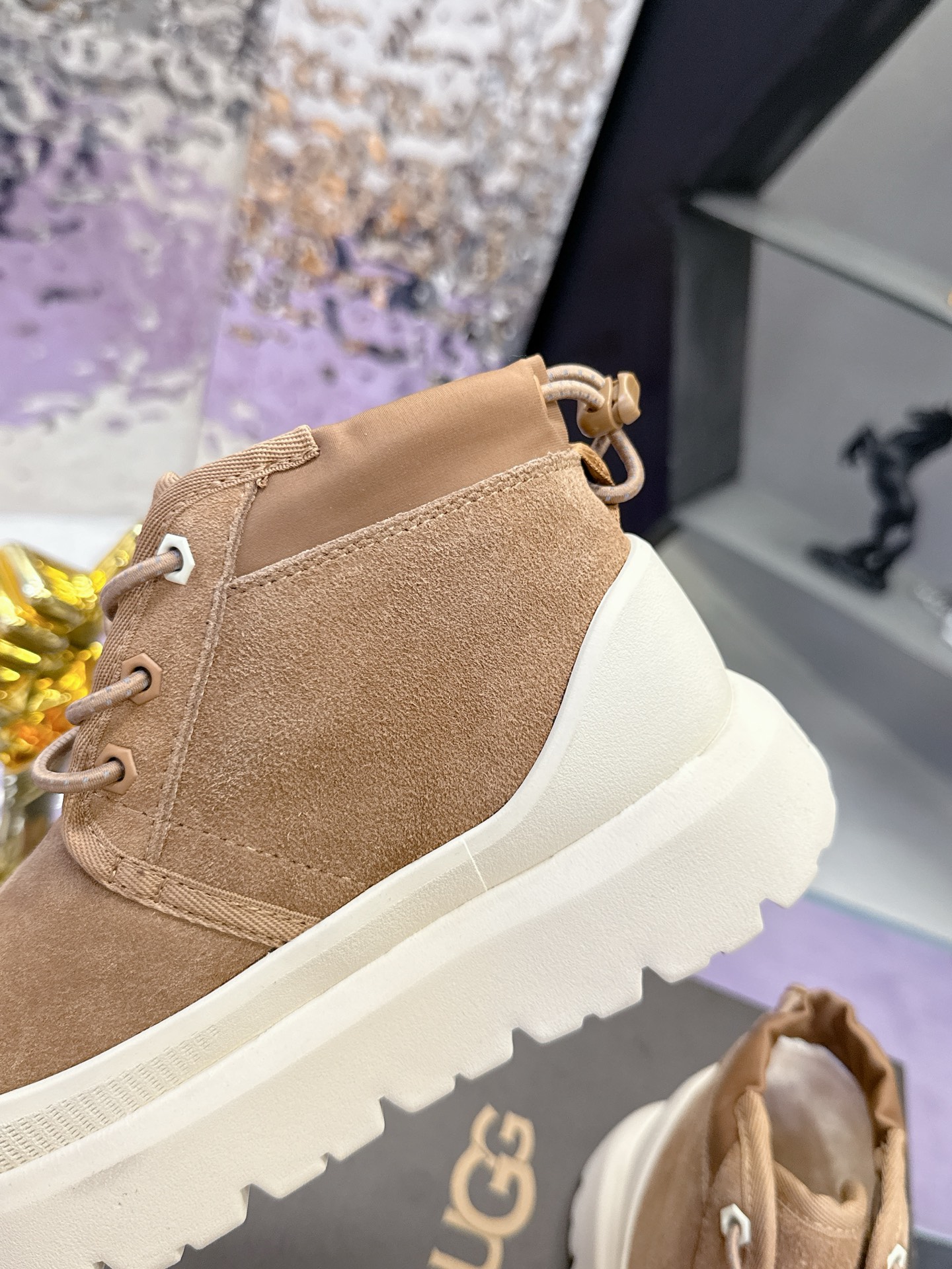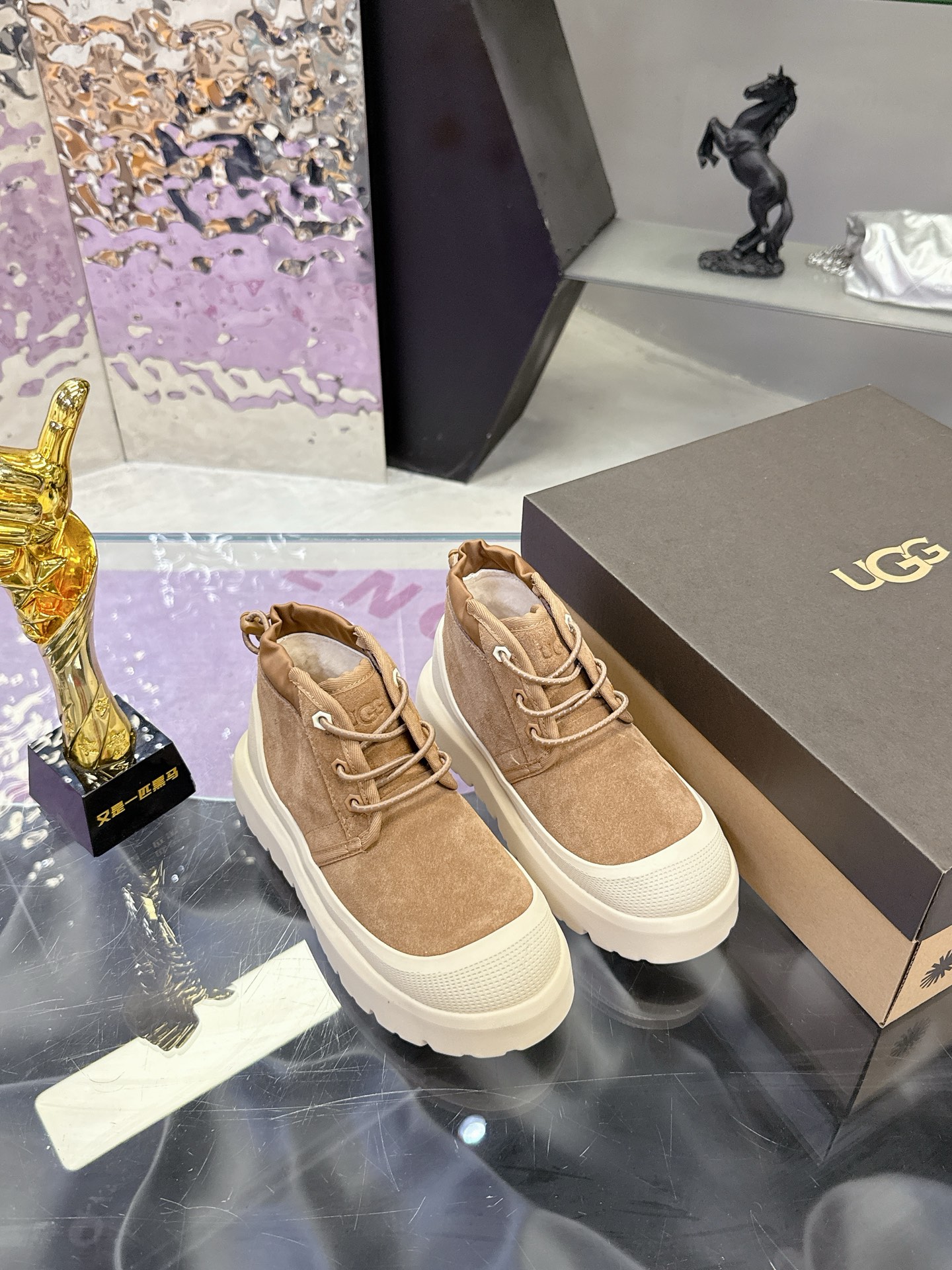 这款鞋子是AAAAA 1:1 质量 (非常棒). 使用了和原版一模一样的材料. 商标部分也保持了和UGG雪地靴一样. 图片拍摄是实物鞋子拍摄, 您所收到的实物保证和我们图片一模一样.