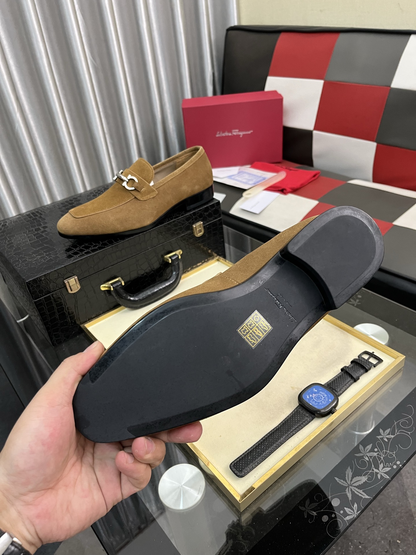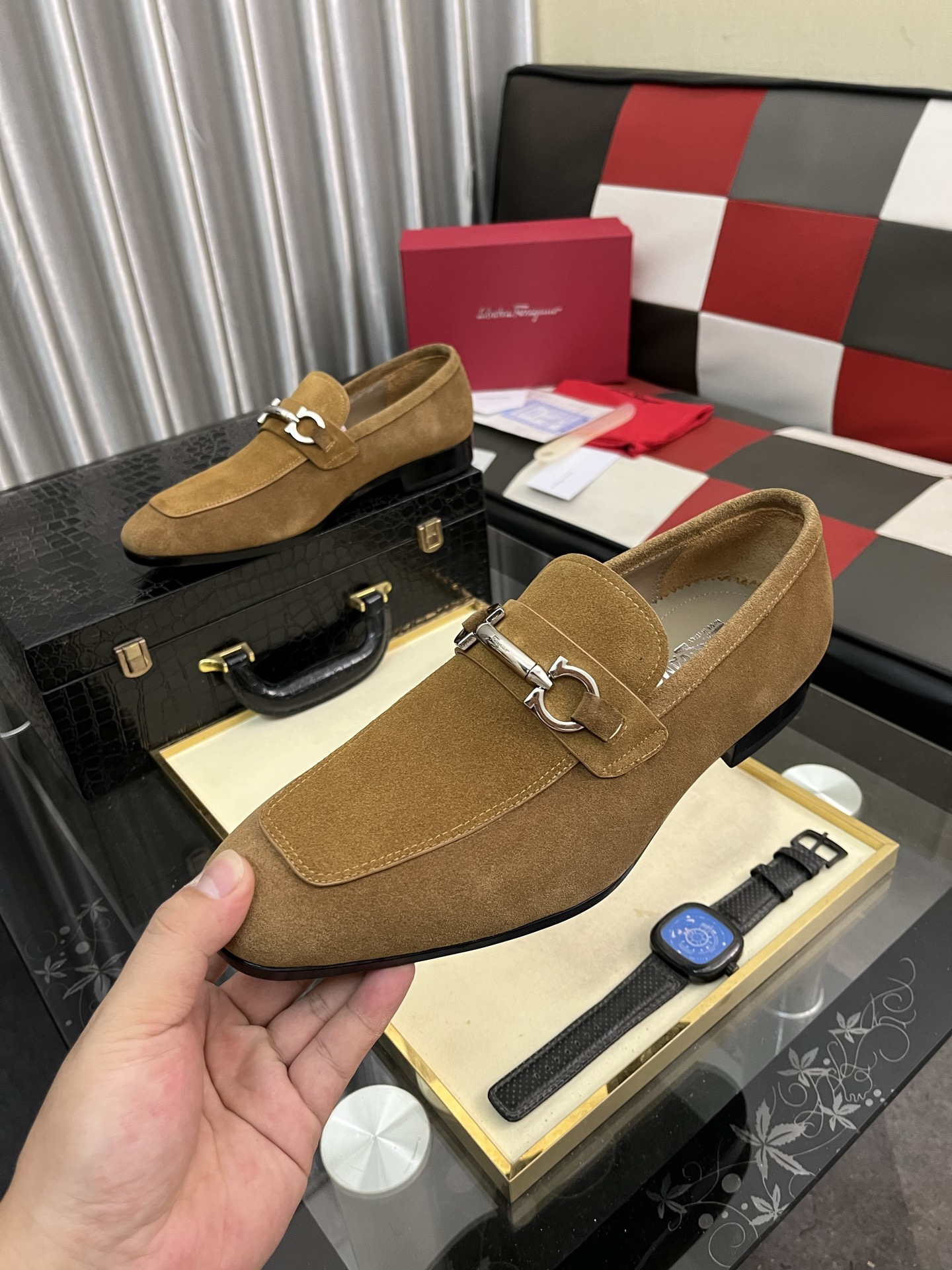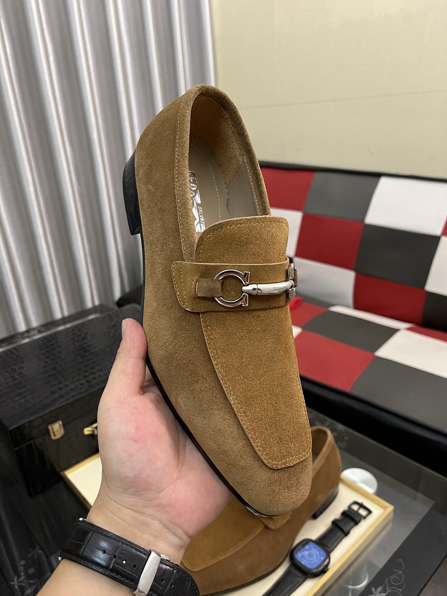 这款鞋子是AAAAA 1:1 质量 (非常棒). 使用了和原版一模一样的材料. 商标部分也保持了和菲拉格慕/Salvatore Ferragamo一样. 图片拍摄是实物鞋子拍摄, 您所收到的实物保证和我们图片一模一样.