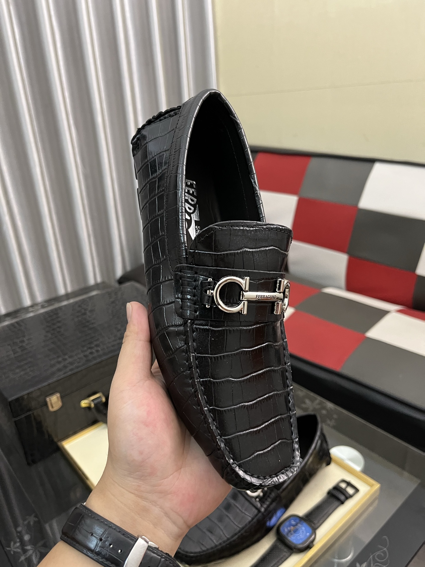 这款鞋子是AAAAA 1:1 质量 (非常棒). 使用了和原版一模一样的材料. 商标部分也保持了和菲拉格慕/Salvatore Ferragamo一样. 图片拍摄是实物鞋子拍摄, 您所收到的实物保证和我们图片一模一样.