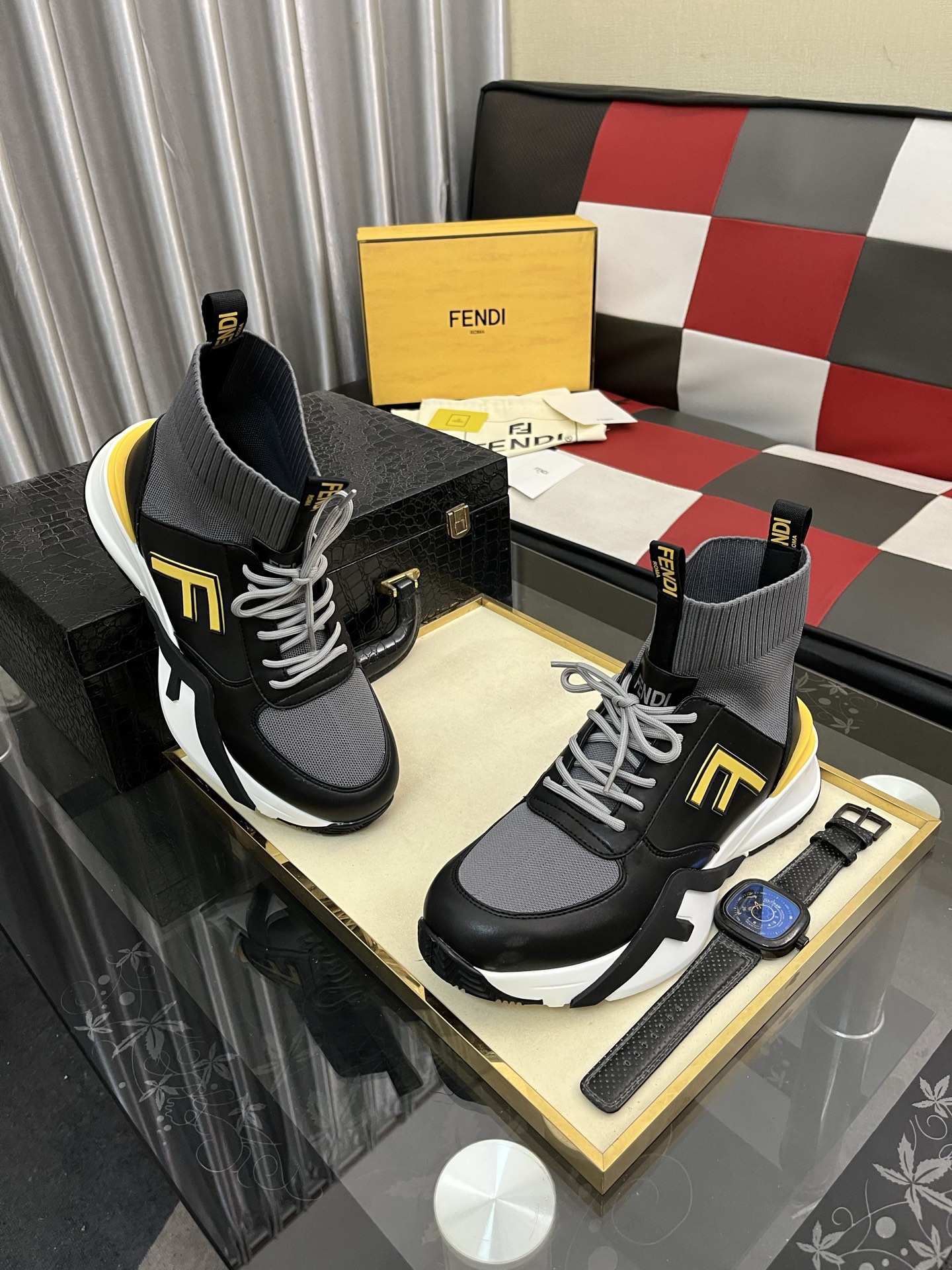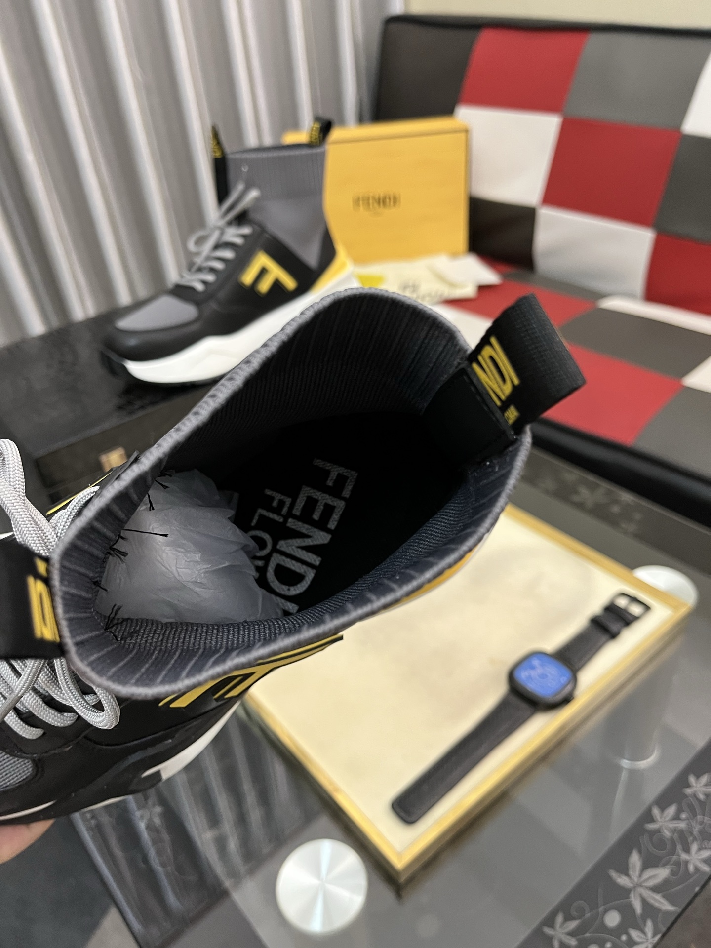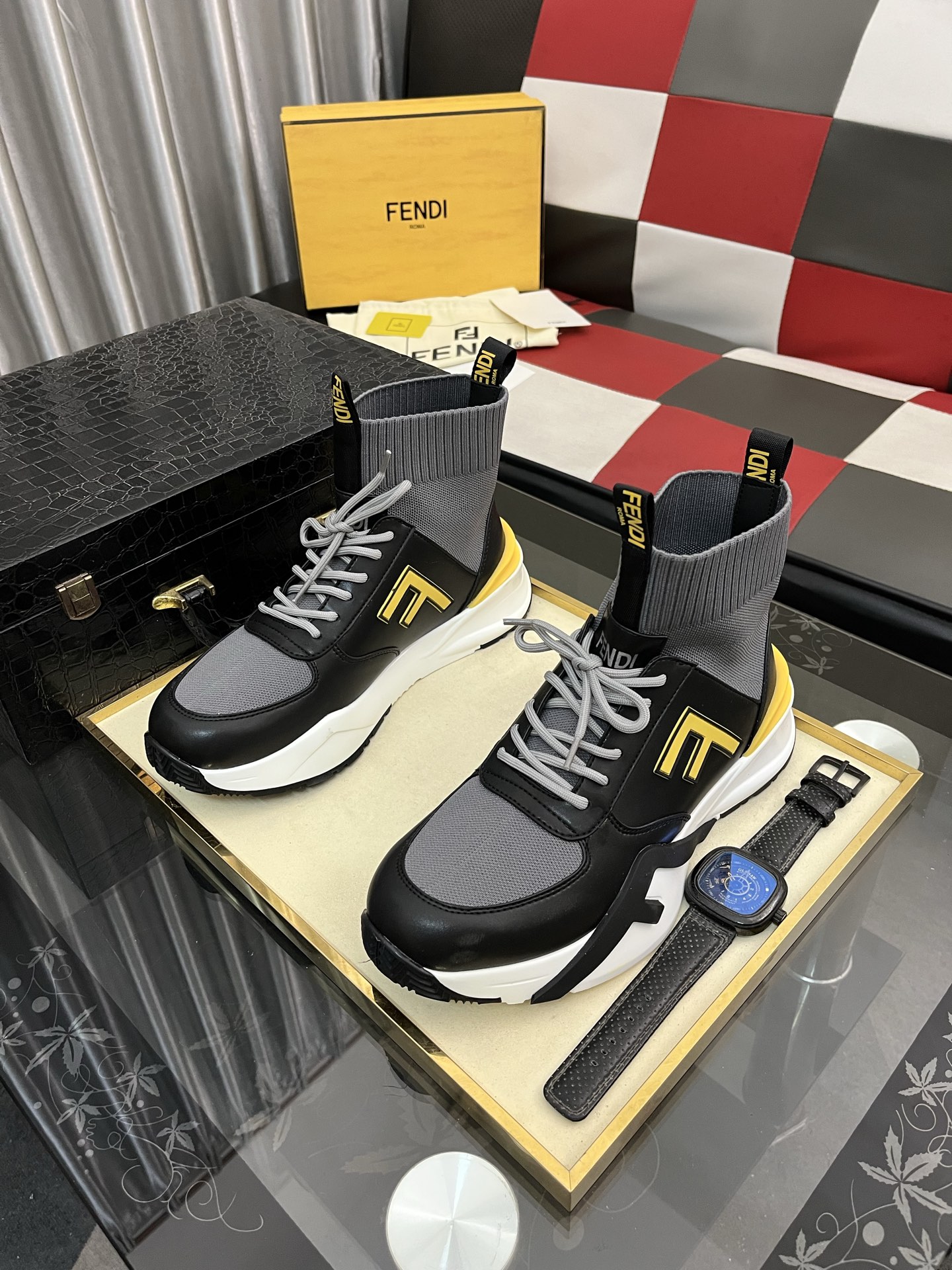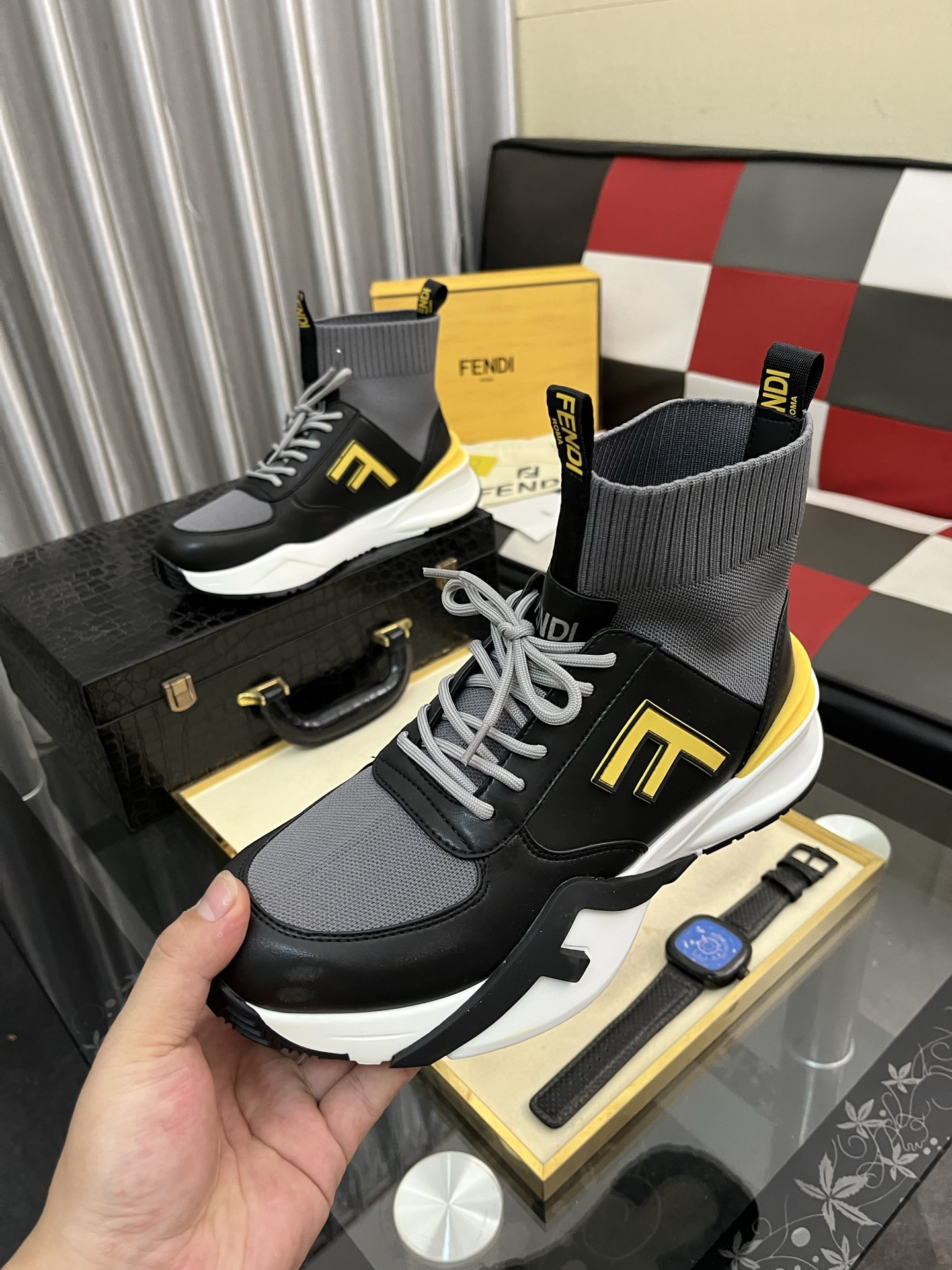 这款鞋子是AAAAA 1:1 质量 (非常棒). 使用了和原版一模一样的材料. 商标部分也保持了和芬迪/Fendi一样. 图片拍摄是实物鞋子拍摄, 您所收到的实物保证和我们图片一模一样.