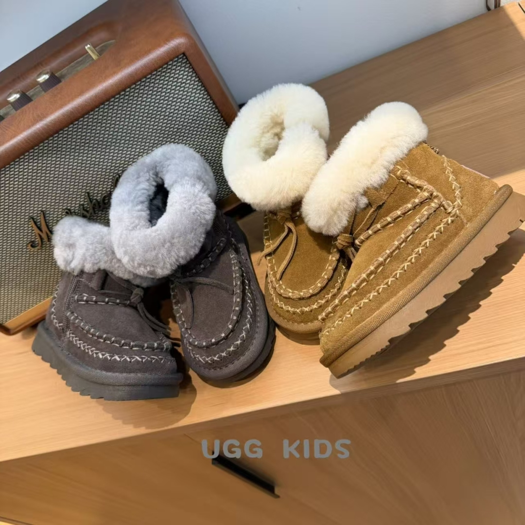 这款兒童鞋是AAAAA 1:1 质量 (非常棒). 使用了和原版一模一样的材料. 商标部分也保持了和UGG雪地靴一样. 图片拍摄是实物兒童鞋拍摄, 您所收到的实物保证和我们图片一模一样.