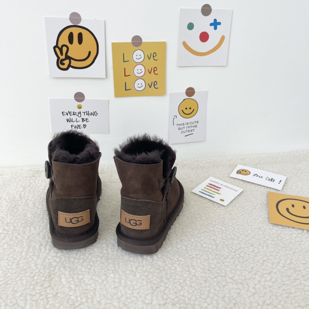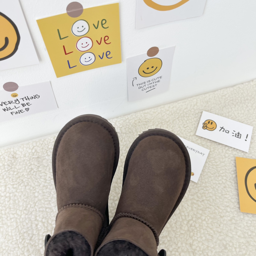 这款兒童鞋是AAAAA 1:1 质量 (非常棒). 使用了和原版一模一样的材料. 商标部分也保持了和UGG雪地靴一样. 图片拍摄是实物兒童鞋拍摄, 您所收到的实物保证和我们图片一模一样.
