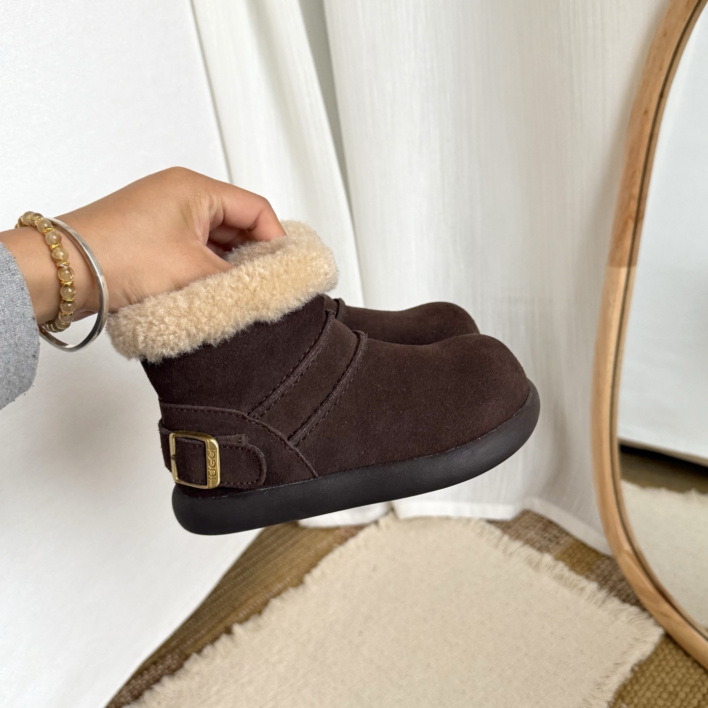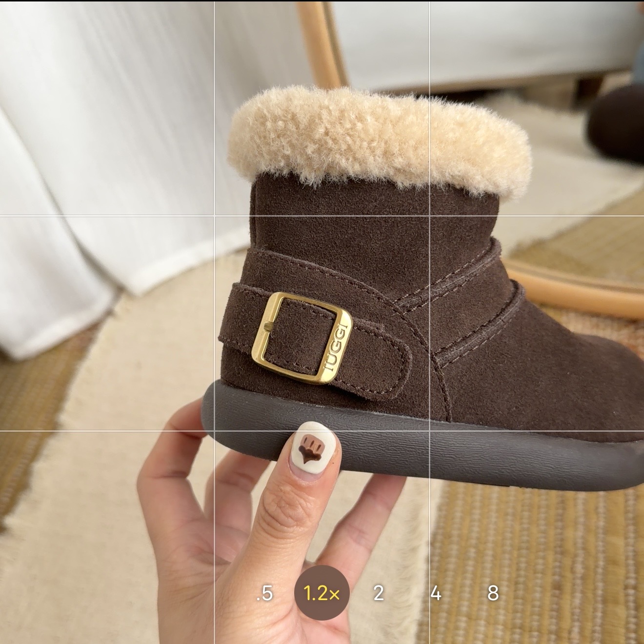 这款兒童鞋是AAAAA 1:1 质量 (非常棒). 使用了和原版一模一样的材料. 商标部分也保持了和UGG雪地靴一样. 图片拍摄是实物兒童鞋拍摄, 您所收到的实物保证和我们图片一模一样.