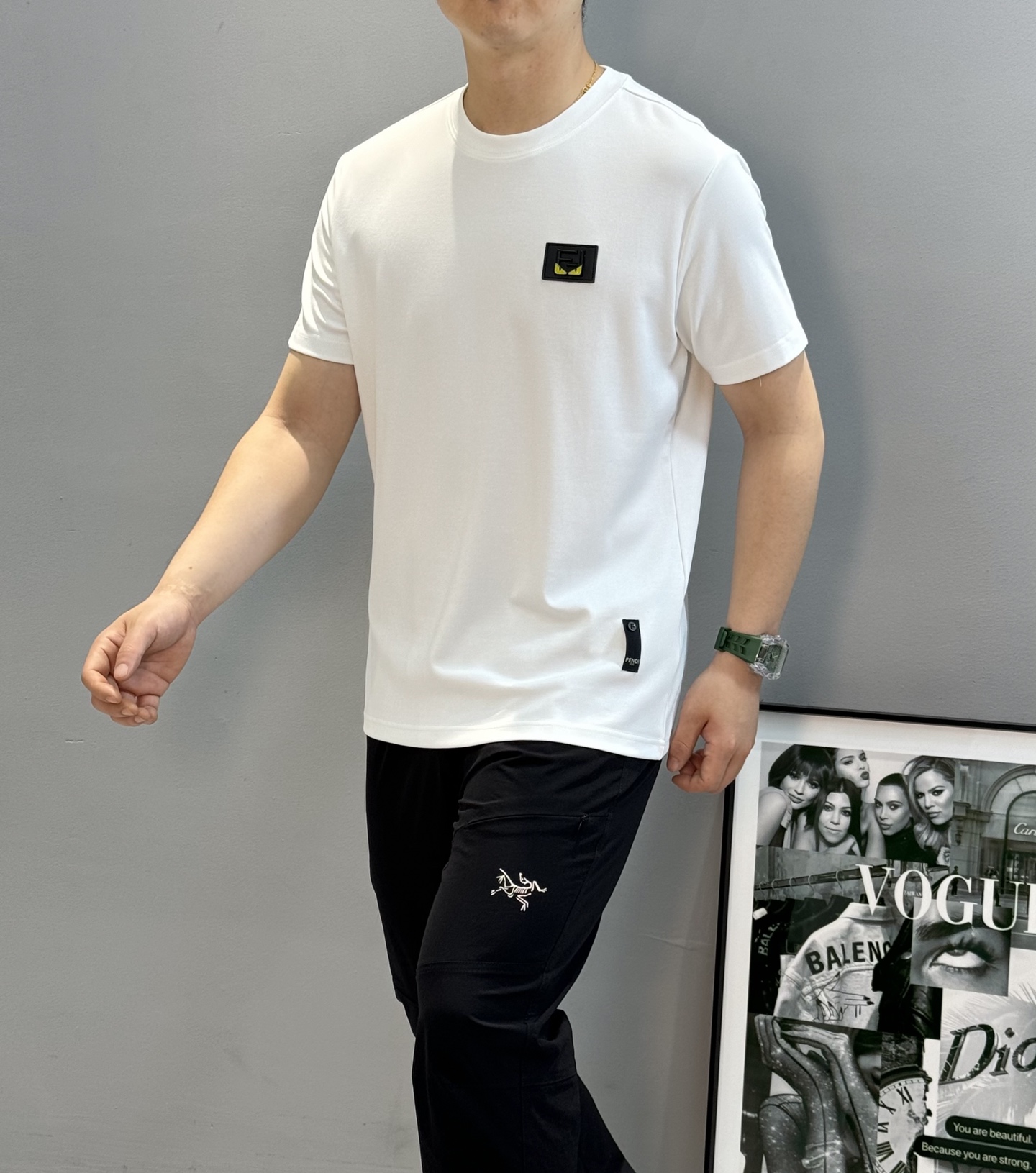 这款衣服是AAAAA 1:1 质量 (非常棒). 使用了和原版一模一样的材料. 商标部分也保持了和芬迪/Fendi一样. 图片拍摄是实物衣服拍摄, 您所收到的实物保证和我们图片一模一样.