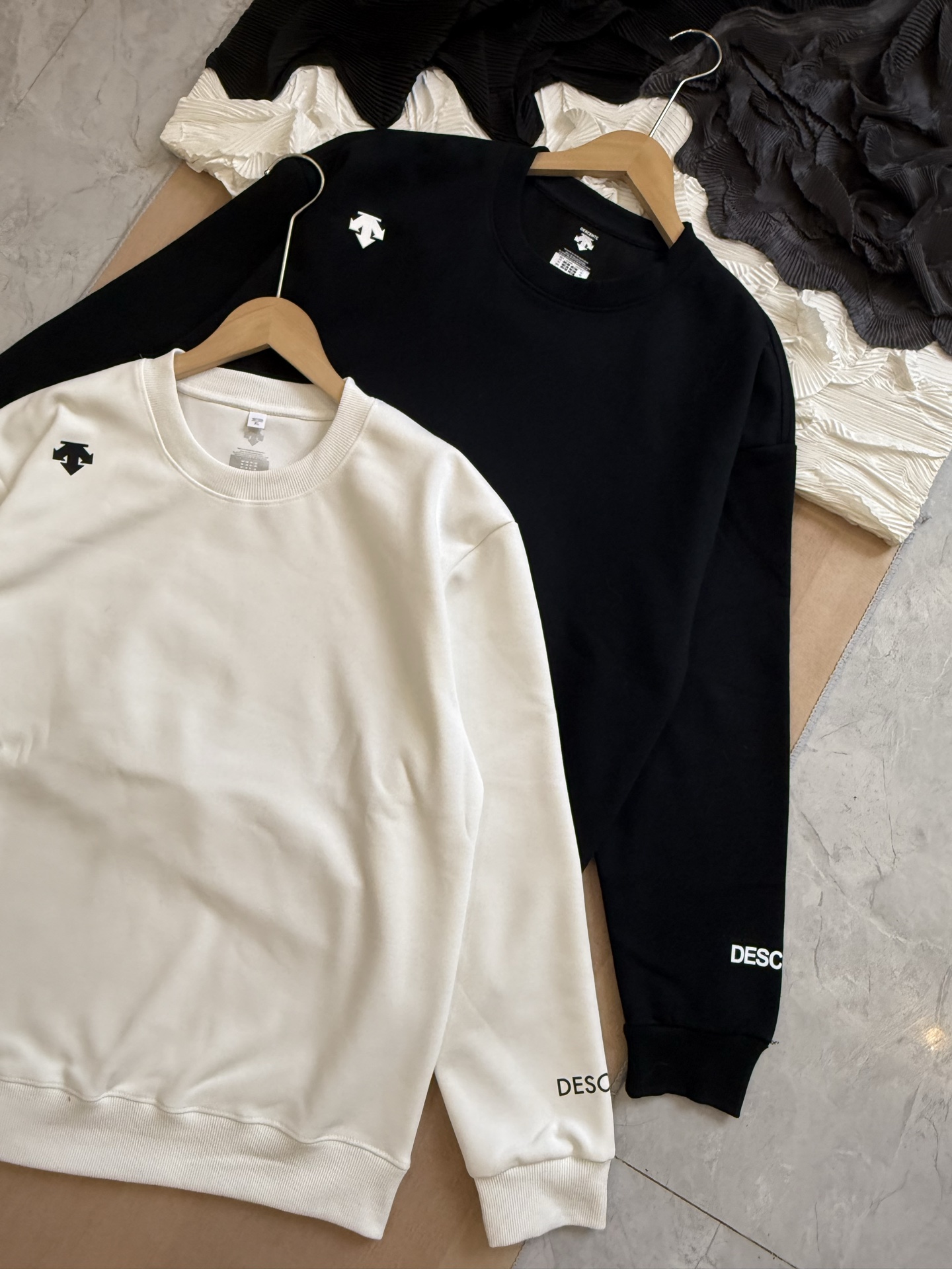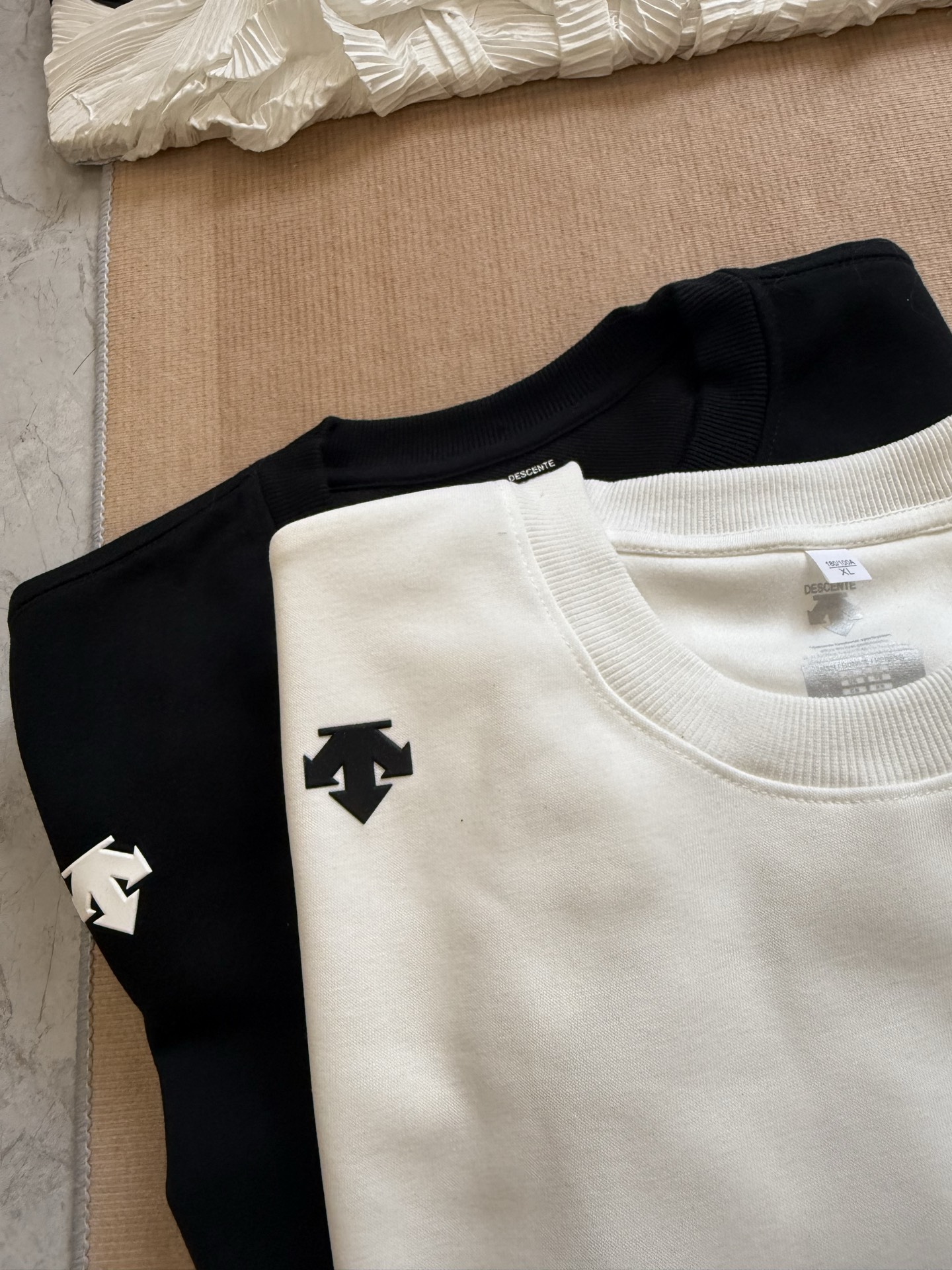 这款衣服是AAAAA 1:1 质量 (非常棒). 使用了和原版一模一样的材料. 商标部分也保持了和Descente一样. 图片拍摄是实物衣服拍摄, 您所收到的实物保证和我们图片一模一样.