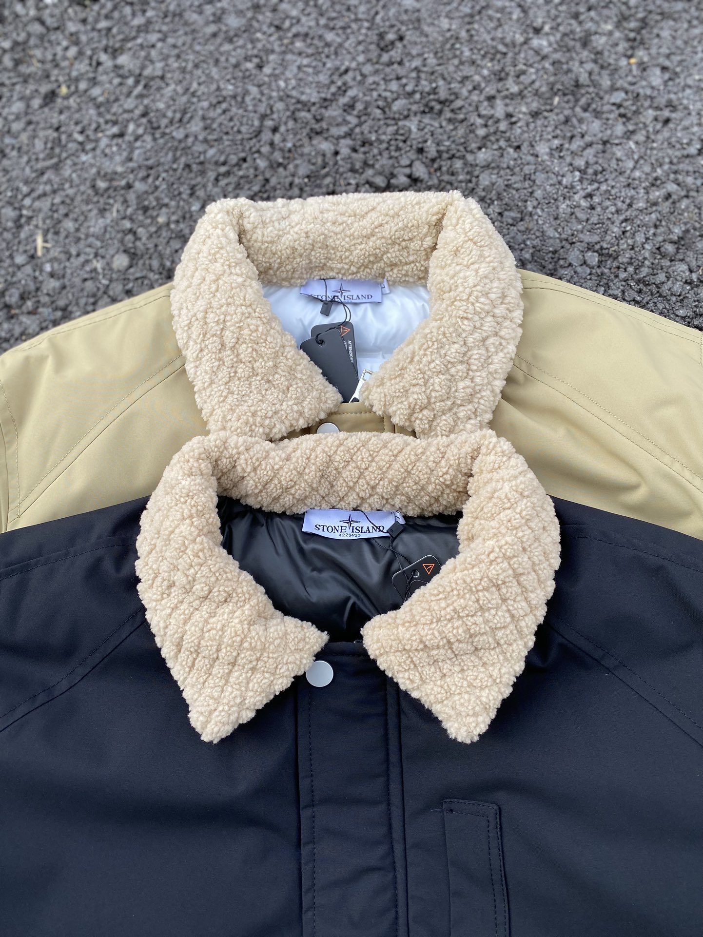 这款衣服是AAAAA 1:1 质量 (非常棒). 使用了和原版一模一样的材料. 商标部分也保持了和Stone Island一样. 图片拍摄是实物衣服拍摄, 您所收到的实物保证和我们图片一模一样.
