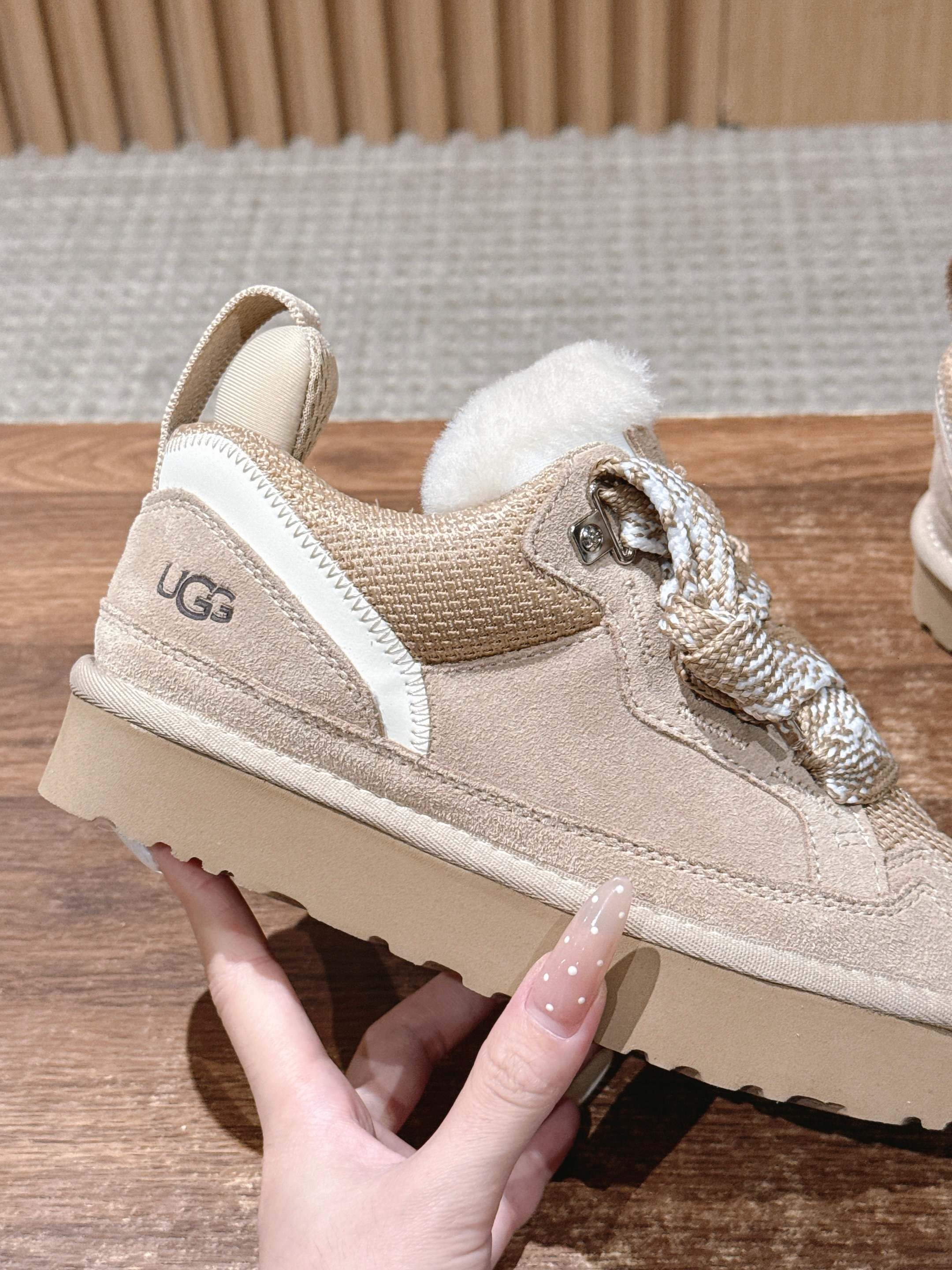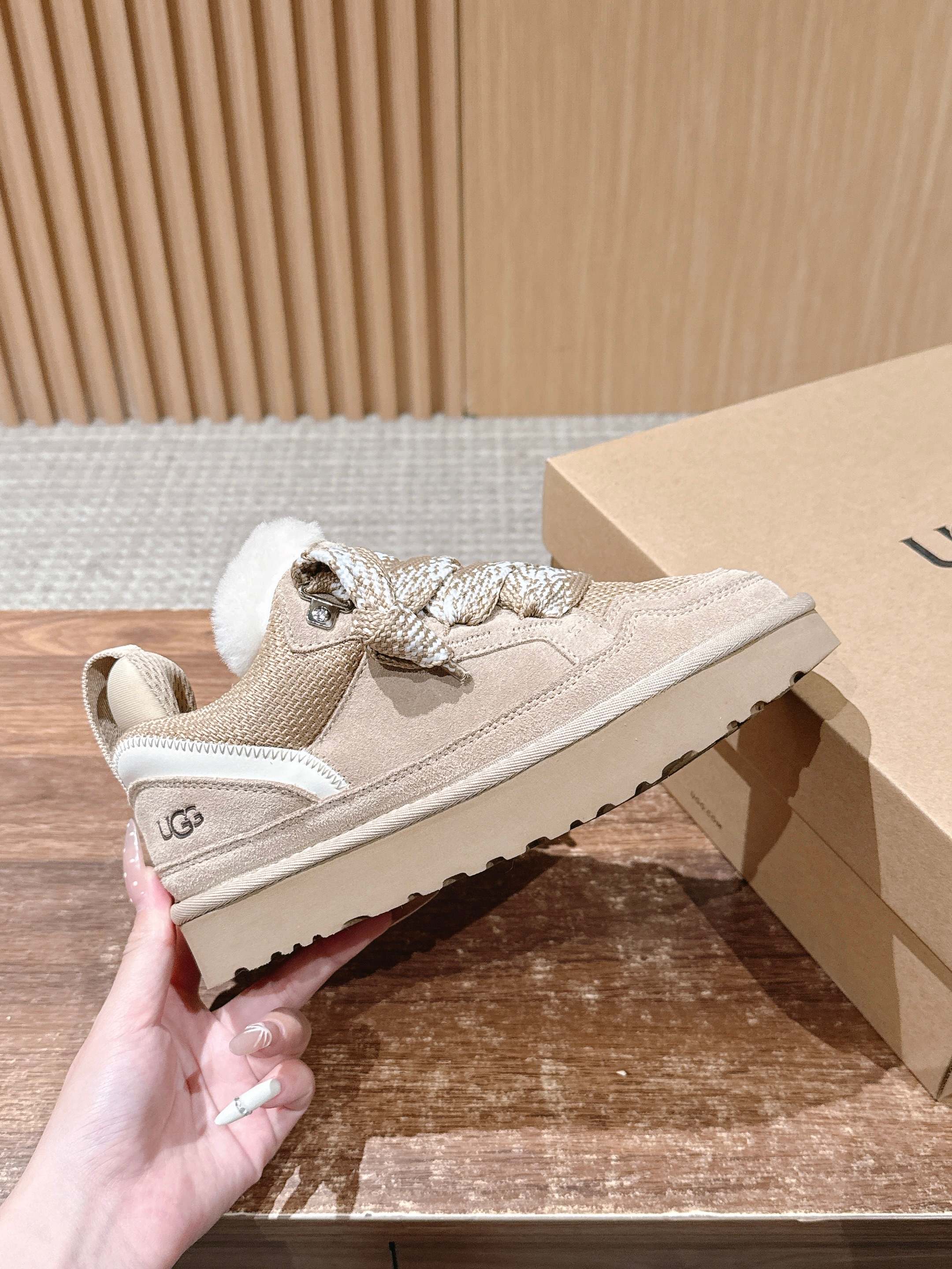 这款鞋子是AAAAA 1:1 质量 (非常棒). 使用了和原版一模一样的材料. 商标部分也保持了和UGG雪地靴一样. 图片拍摄是实物鞋子拍摄, 您所收到的实物保证和我们图片一模一样.