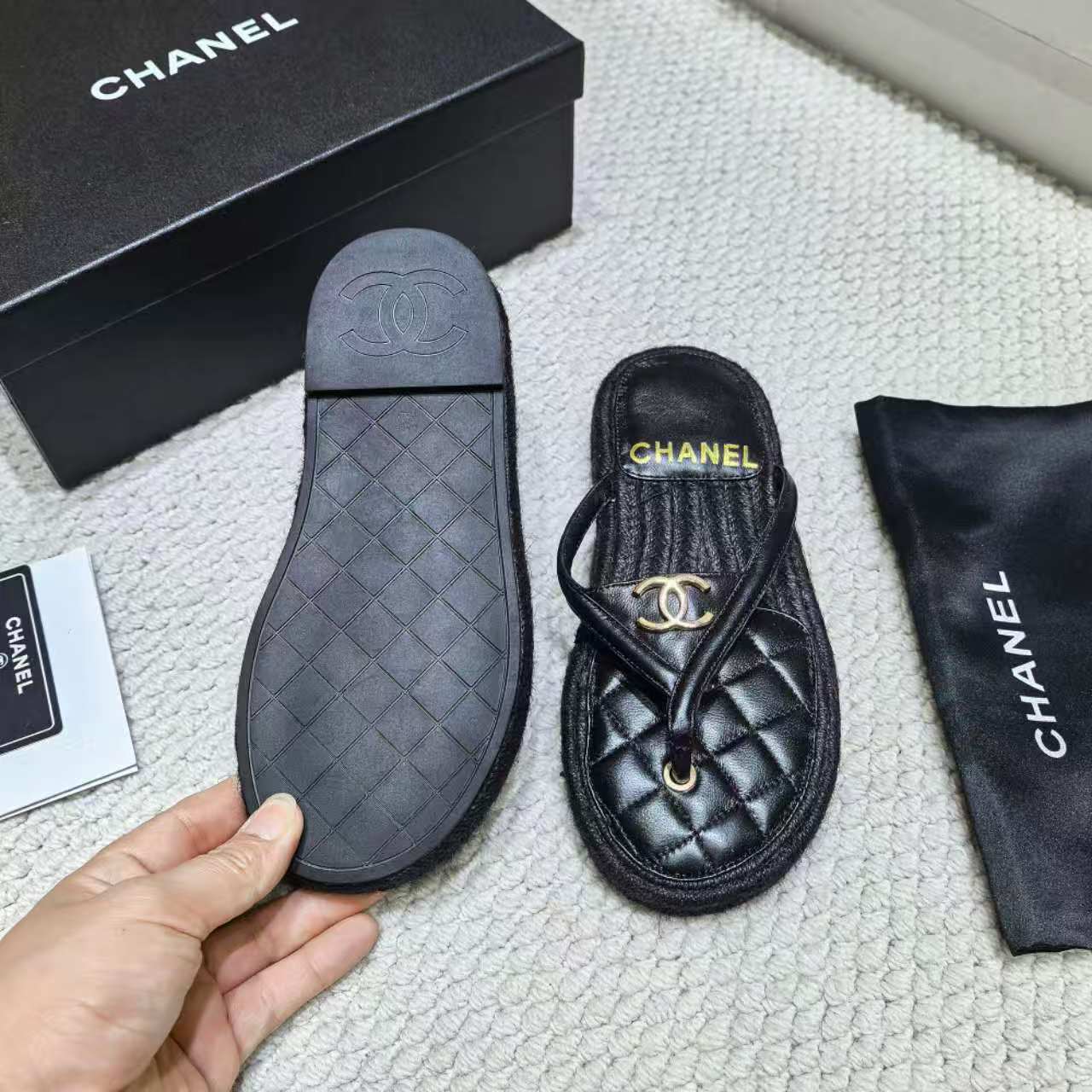这款鞋子是AAAAA 1:1 质量 (非常棒). 使用了和原版一模一样的材料. 商标部分也保持了和香奈儿/Chanel一样. 图片拍摄是实物鞋子拍摄, 您所收到的实物保证和我们图片一模一样.
