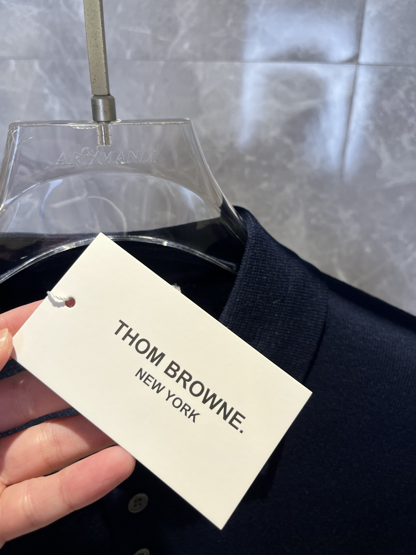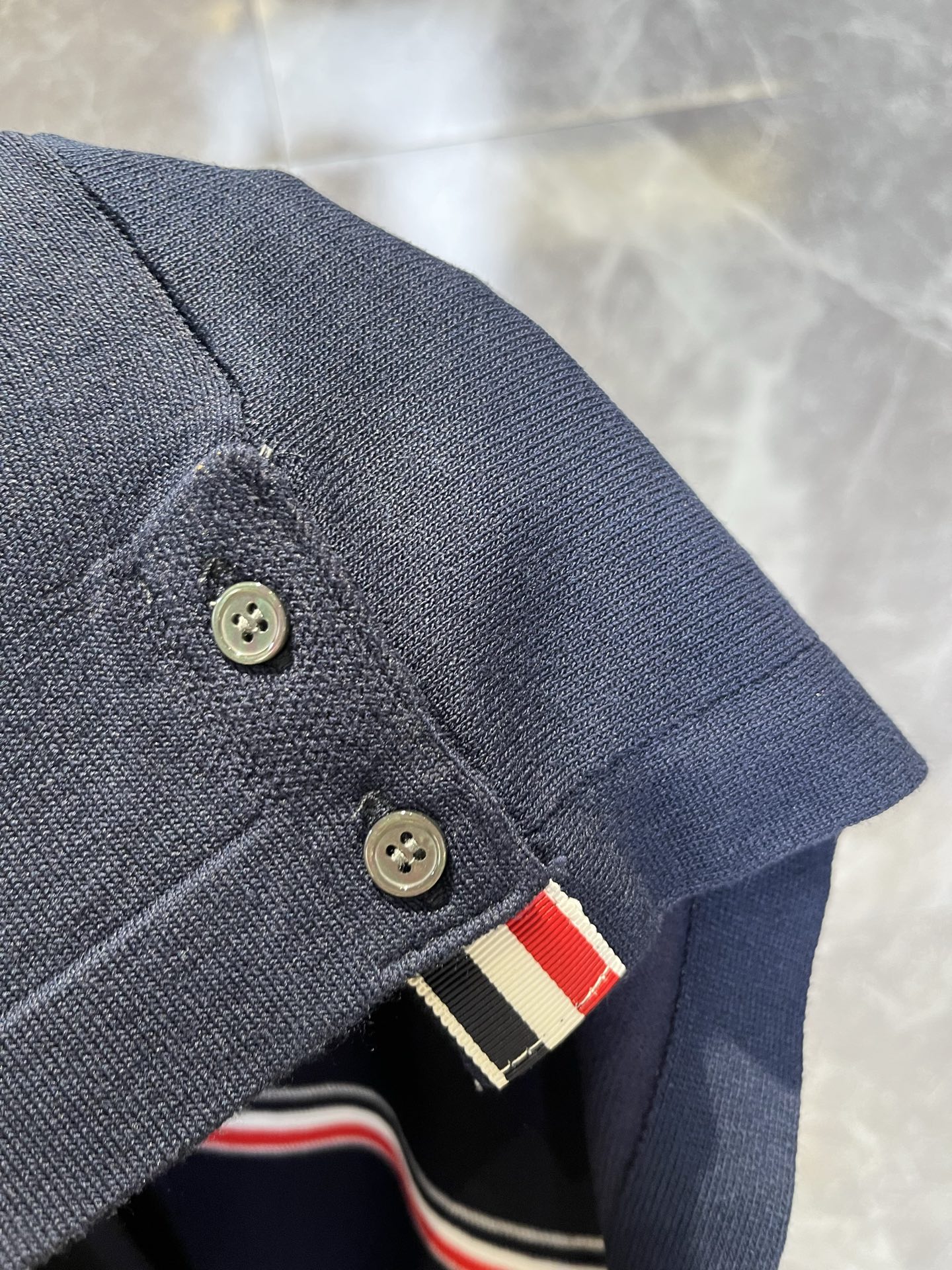 这款衣服是AAAAA 1:1 质量 (非常棒). 使用了和原版一模一样的材料. 商标部分也保持了和汤姆布朗/Thom Browne一样. 图片拍摄是实物衣服拍摄, 您所收到的实物保证和我们图片一模一样.