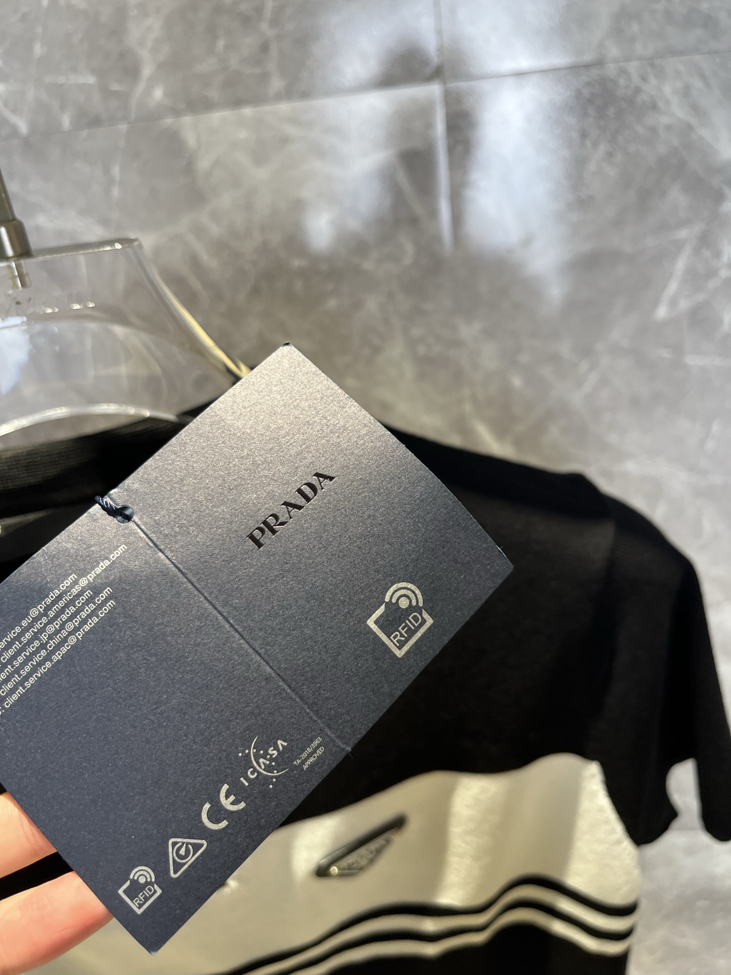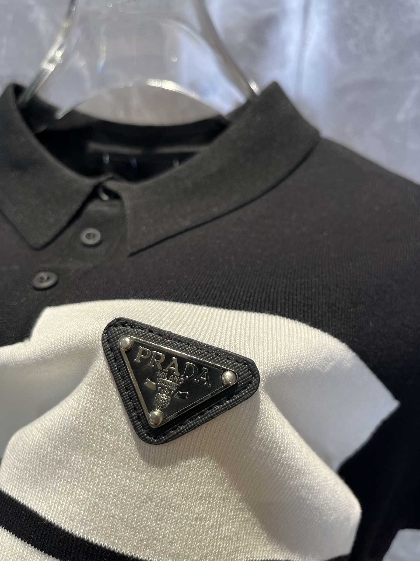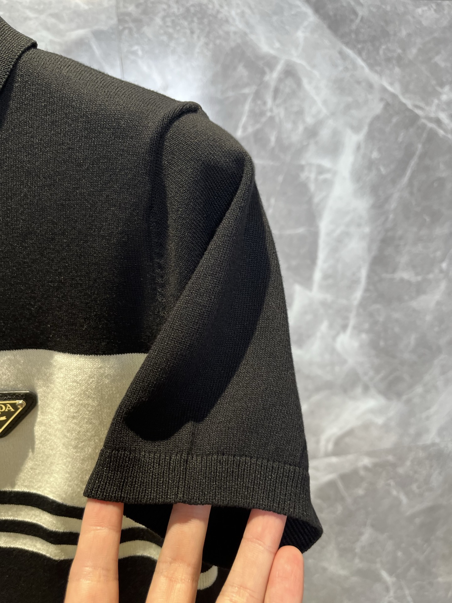 这款衣服是AAAAA 1:1 质量 (非常棒). 使用了和原版一模一样的材料. 商标部分也保持了和普拉达/Prada一样. 图片拍摄是实物衣服拍摄, 您所收到的实物保证和我们图片一模一样.