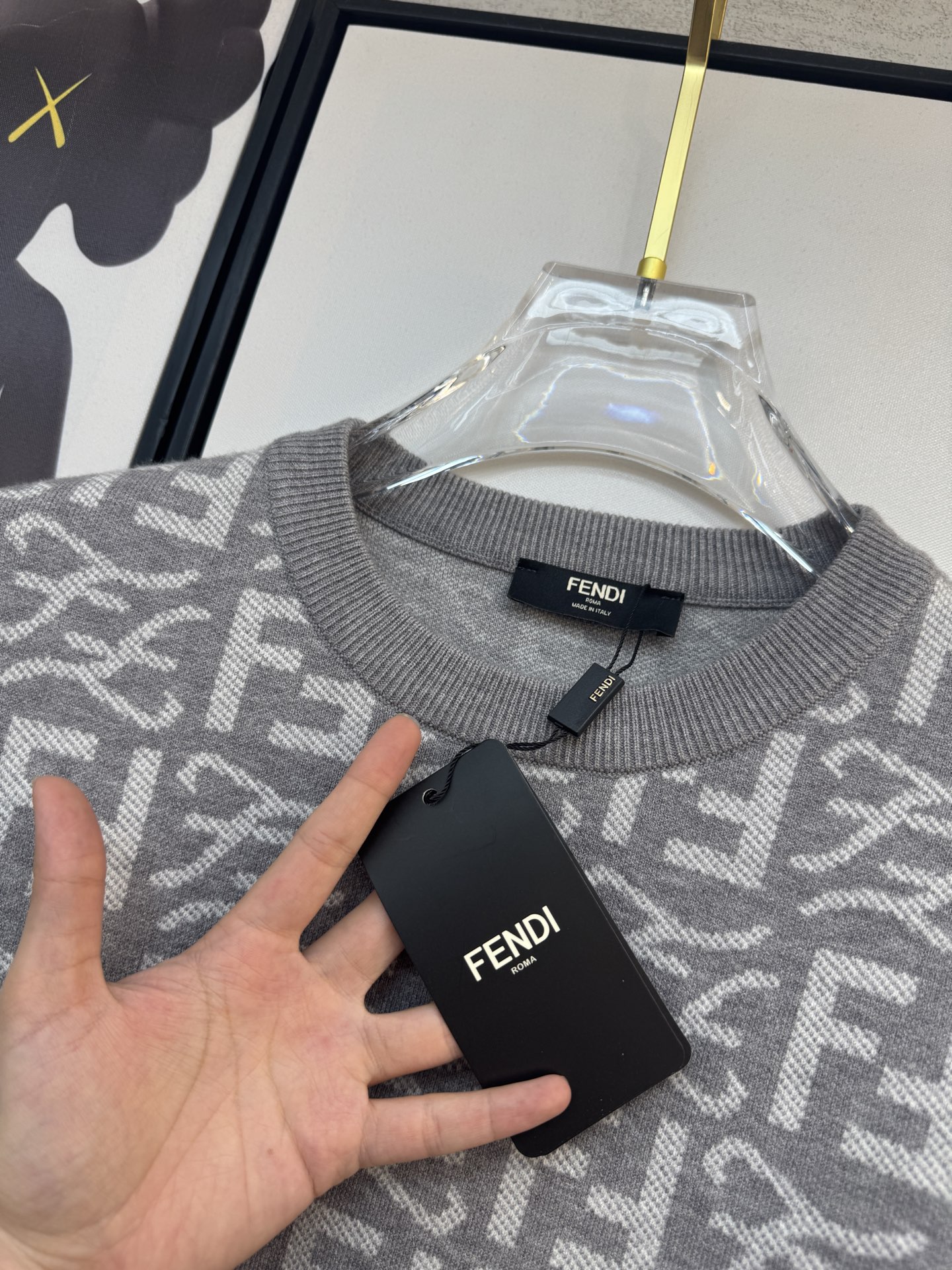 这款衣服是AAAAA 1:1 质量 (非常棒). 使用了和原版一模一样的材料. 商标部分也保持了和芬迪/Fendi一样. 图片拍摄是实物衣服拍摄, 您所收到的实物保证和我们图片一模一样.