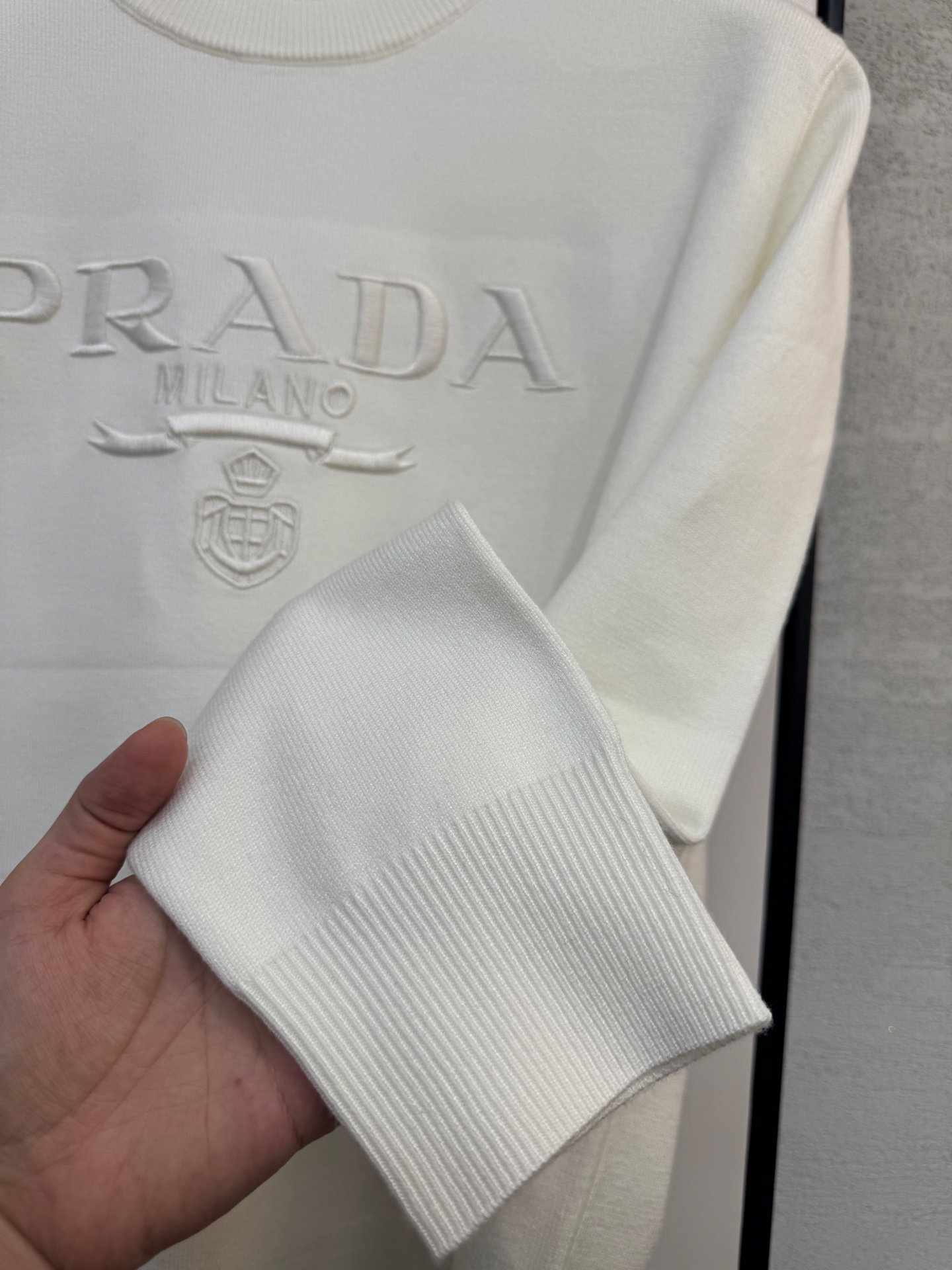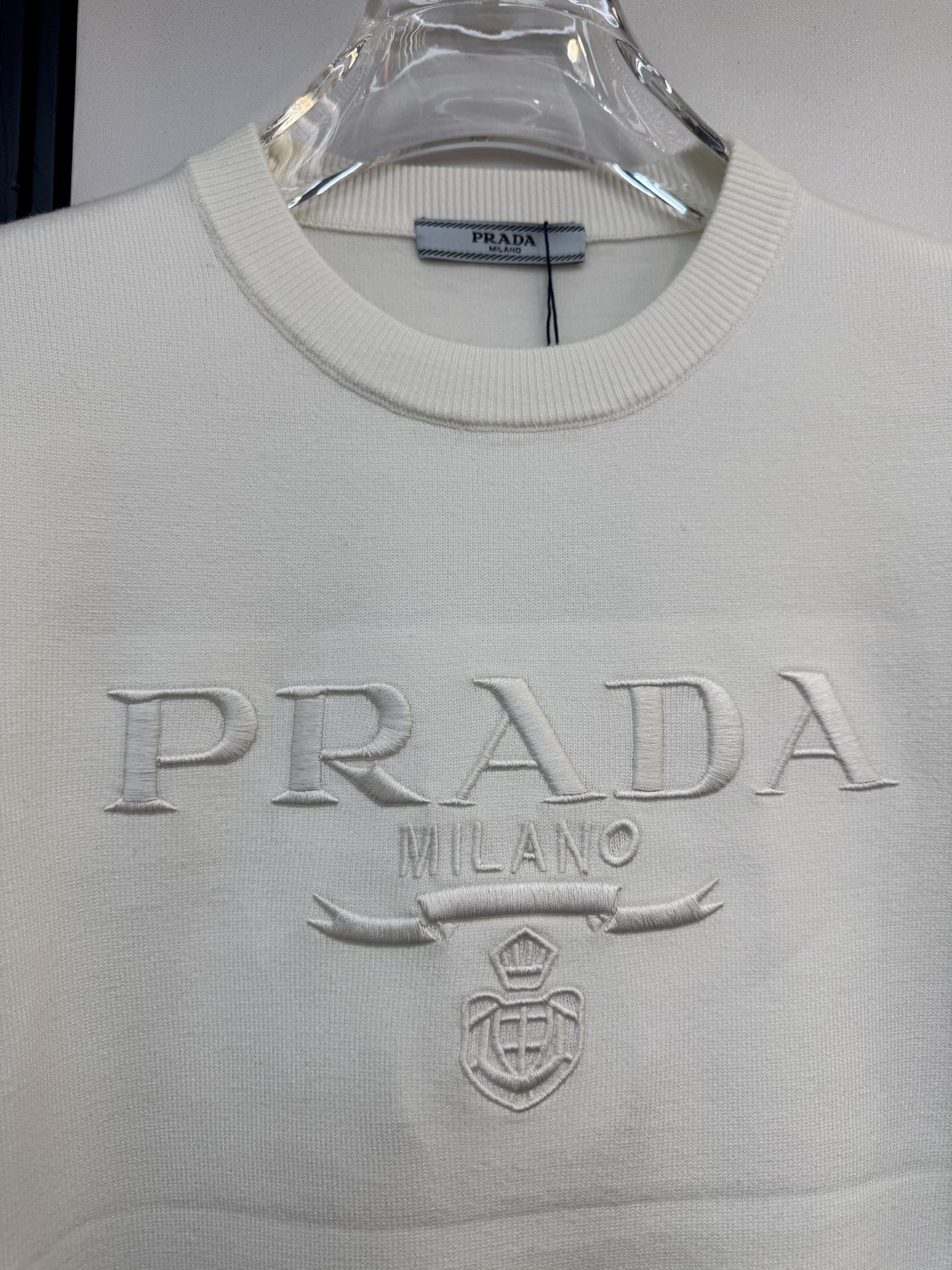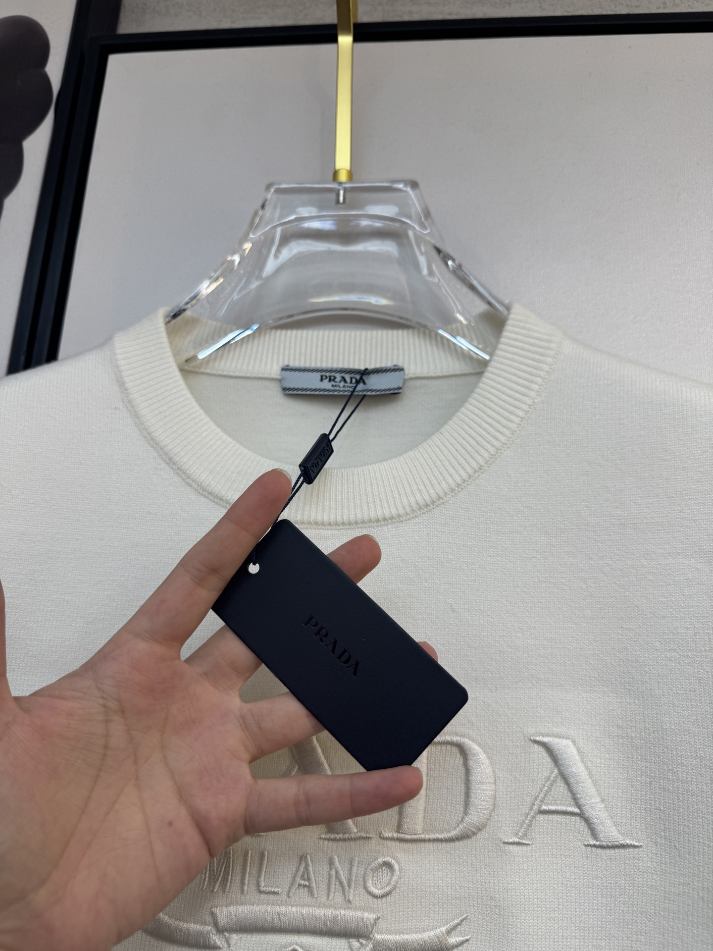 这款衣服是AAAAA 1:1 质量 (非常棒). 使用了和原版一模一样的材料. 商标部分也保持了和普拉达/Prada一样. 图片拍摄是实物衣服拍摄, 您所收到的实物保证和我们图片一模一样.