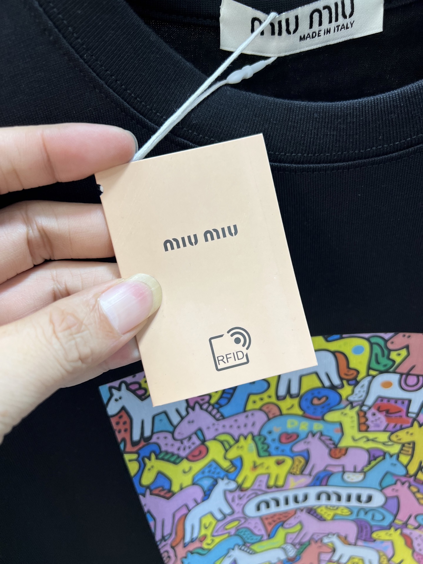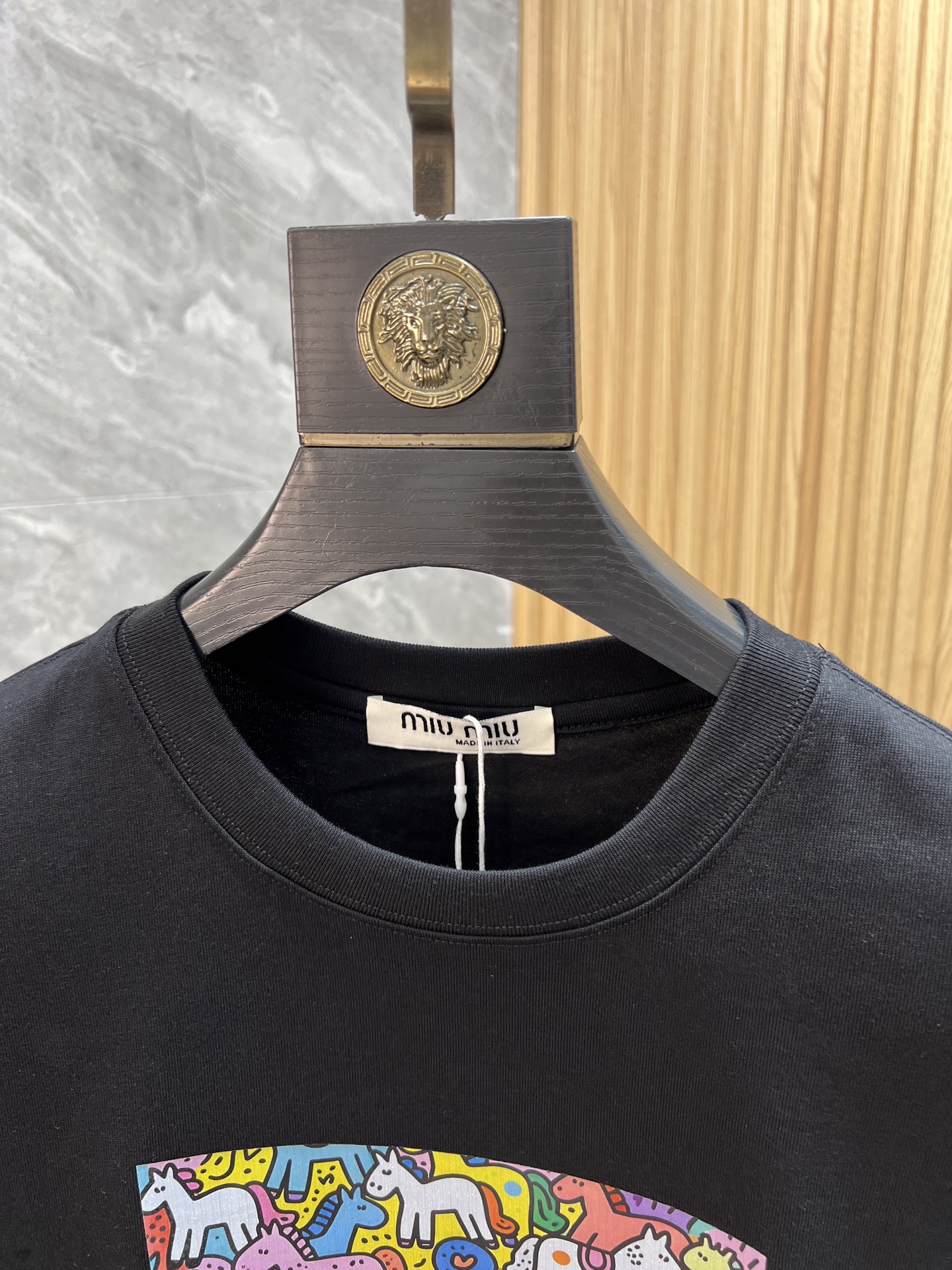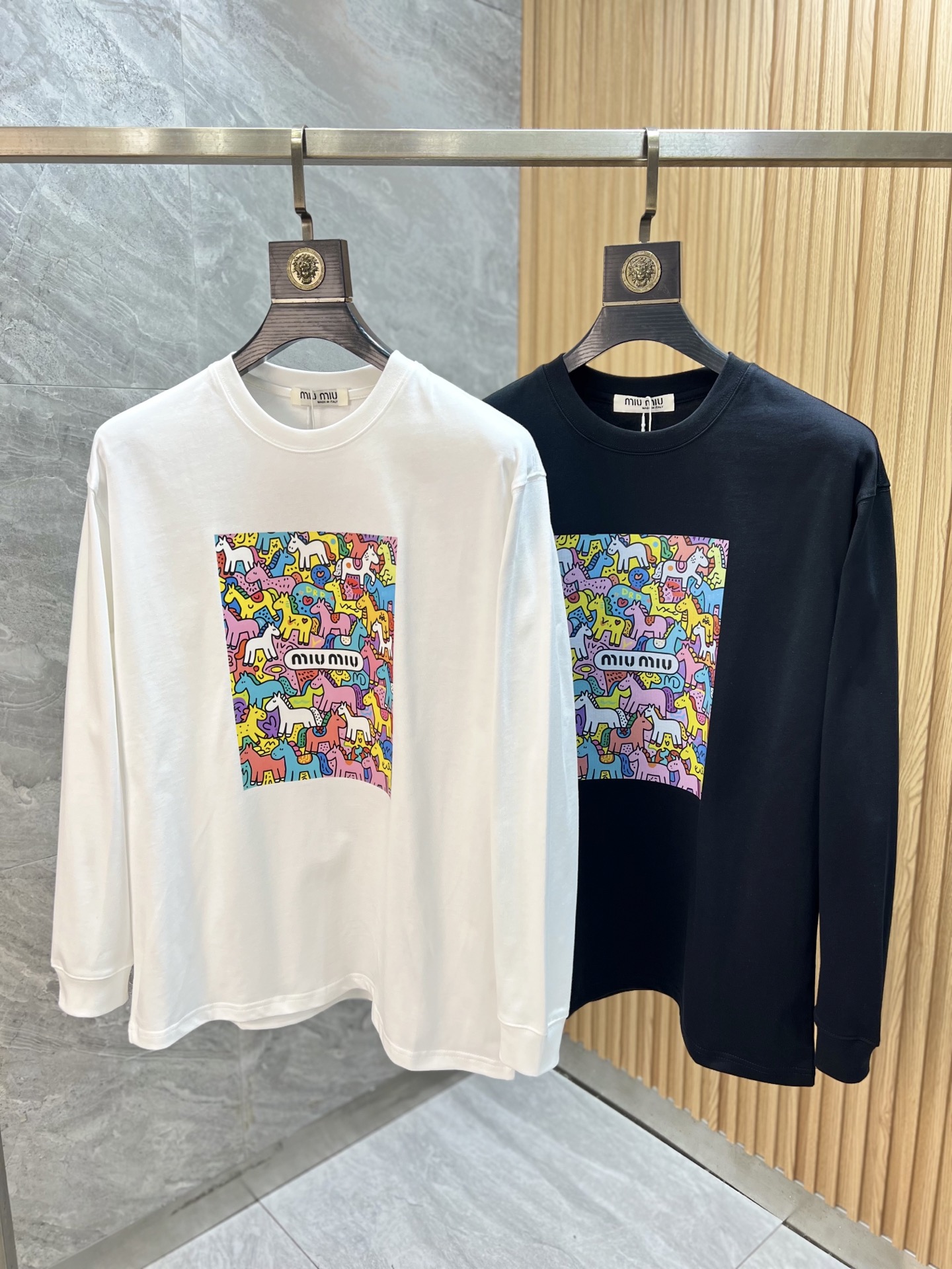 这款衣服是AAAAA 1:1 质量 (非常棒). 使用了和原版一模一样的材料. 商标部分也保持了和缪缪/Miu Miu一样. 图片拍摄是实物衣服拍摄, 您所收到的实物保证和我们图片一模一样.