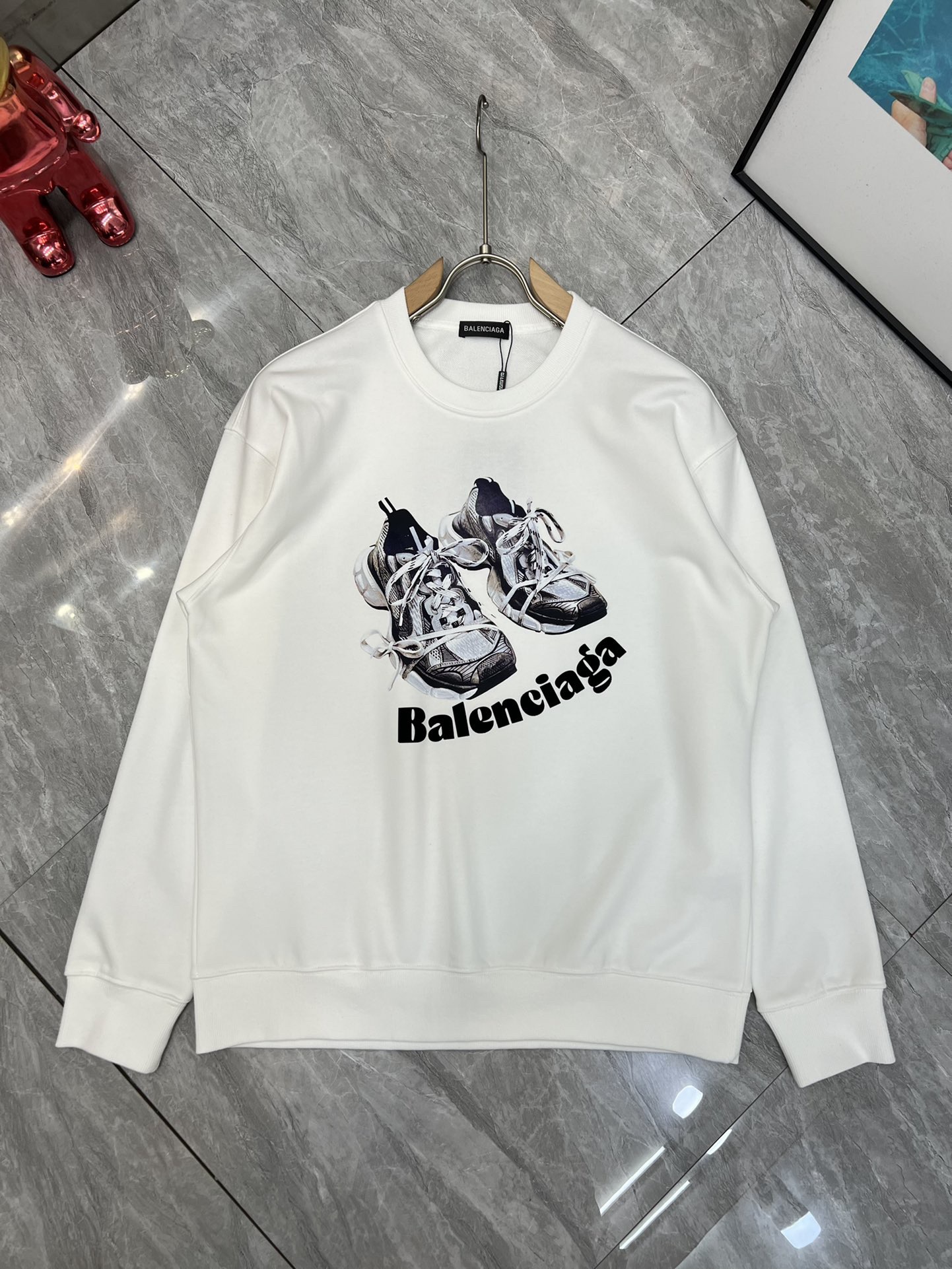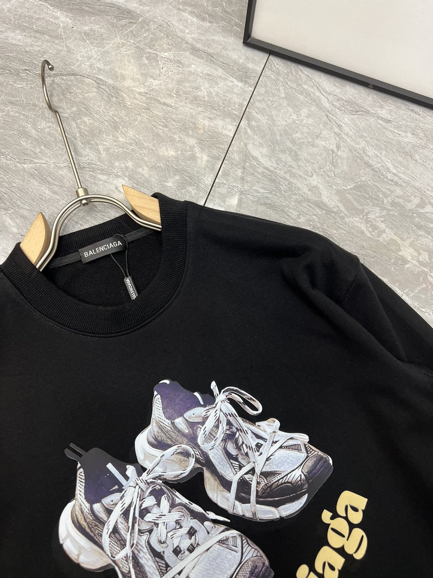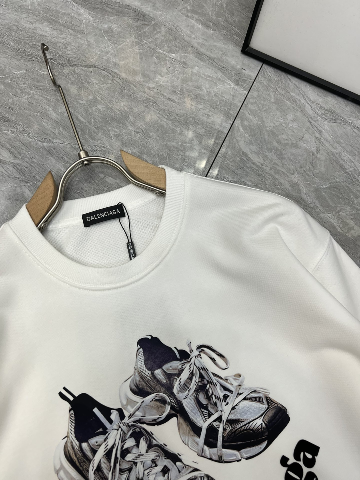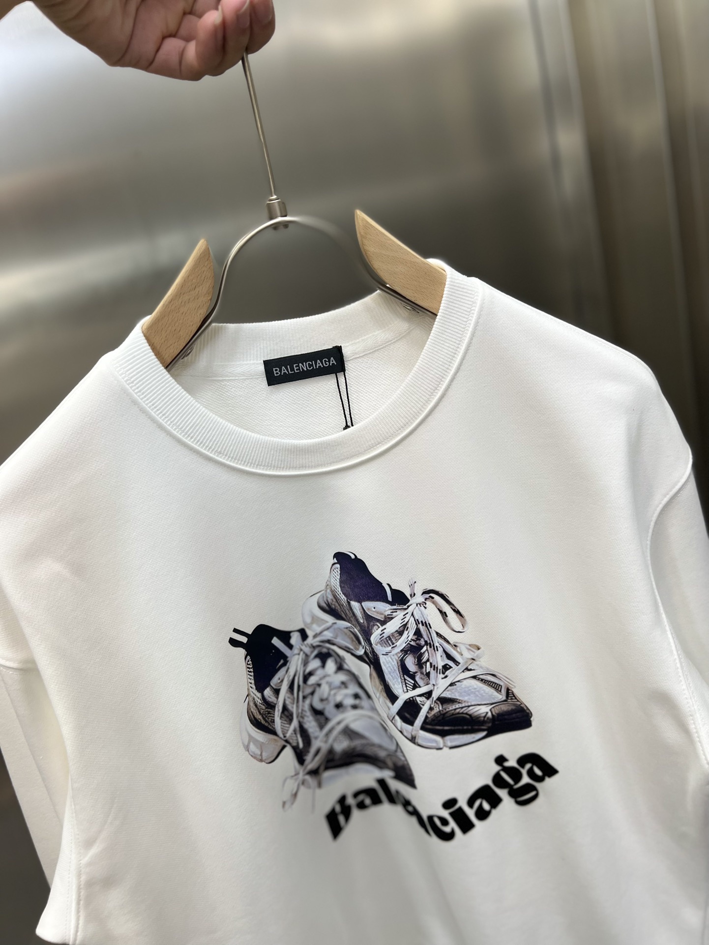 这款衣服是AAAAA 1:1 质量 (非常棒). 使用了和原版一模一样的材料. 商标部分也保持了和巴黎世家/Balenciaga一样. 图片拍摄是实物衣服拍摄, 您所收到的实物保证和我们图片一模一样.