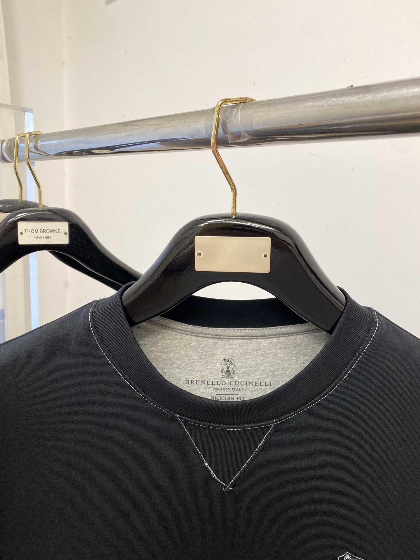 这款衣服是AAAAA 1:1 质量 (非常棒). 使用了和原版一模一样的材料. 商标部分也保持了和Brunello Cucinelli一样. 图片拍摄是实物衣服拍摄, 您所收到的实物保证和我们图片一模一样.