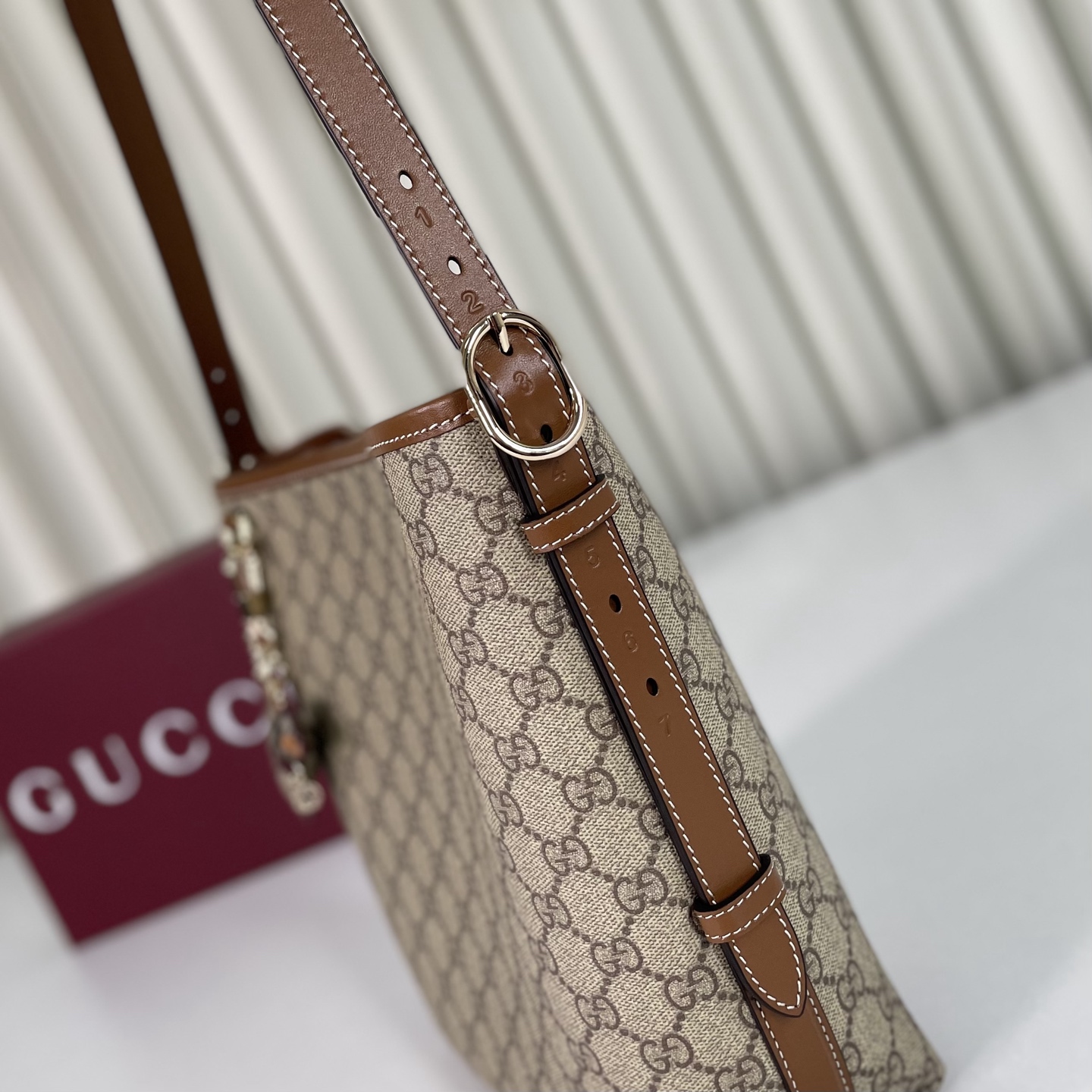 这款包包是AAAAA 1:1 质量 (非常棒). 使用了和原版一模一样的材料. 商标部分也保持了和古奇/Gucci一样. 图片拍摄是实物包包拍摄, 您所收到的实物保证和我们图片一模一样.