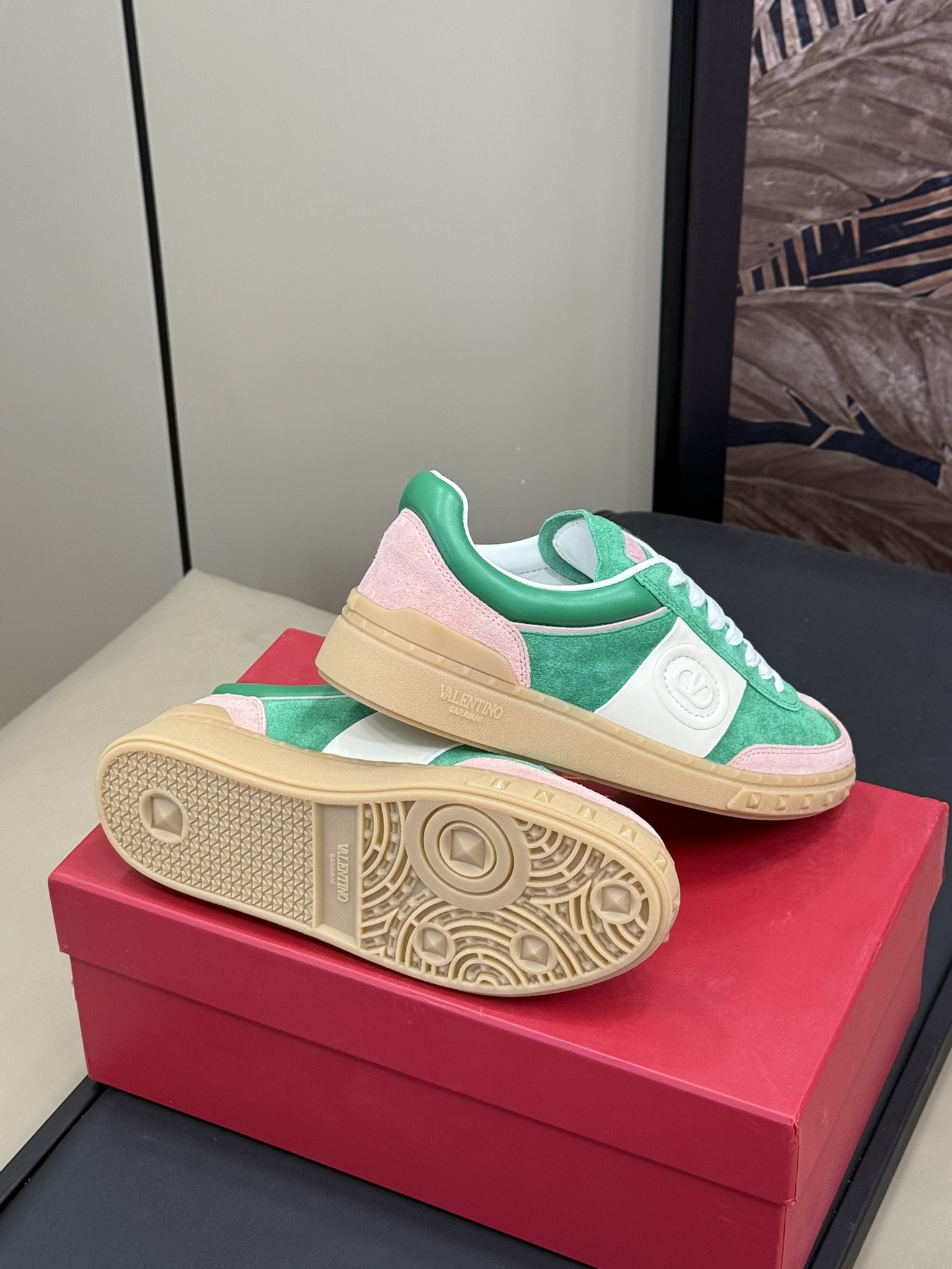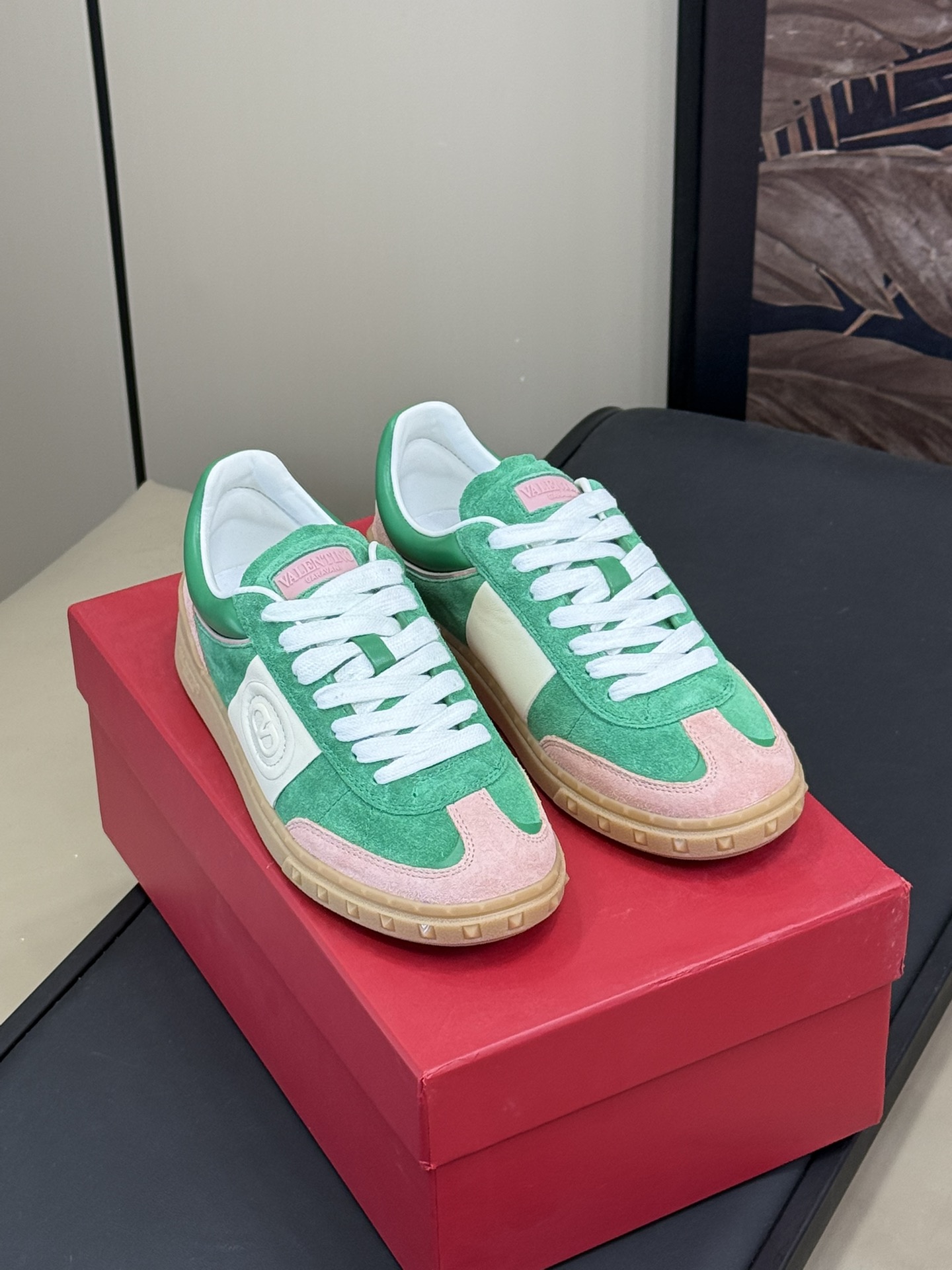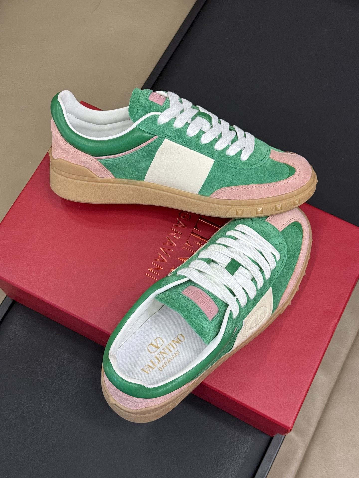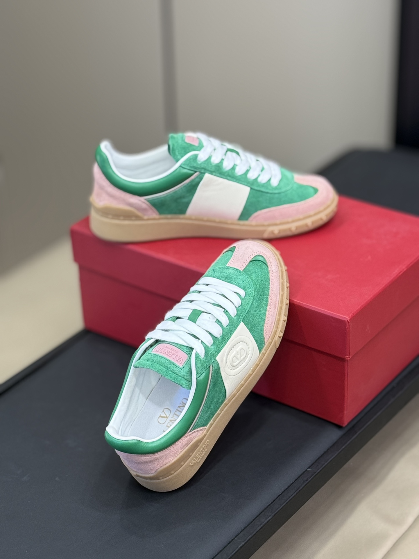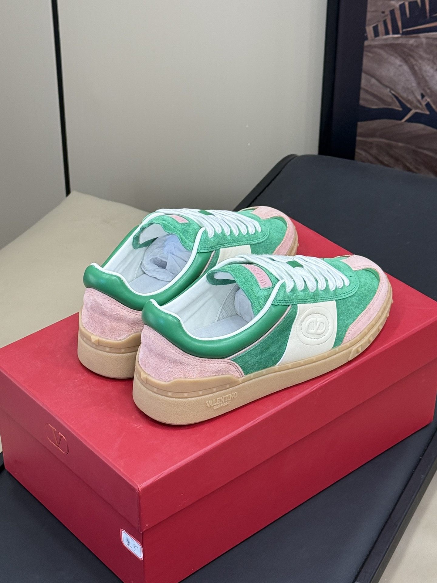 这款鞋子是AAAAA 1:1 质量 (非常棒). 使用了和原版一模一样的材料. 商标部分也保持了和华伦天奴/Valentino一样. 图片拍摄是实物鞋子拍摄, 您所收到的实物保证和我们图片一模一样.