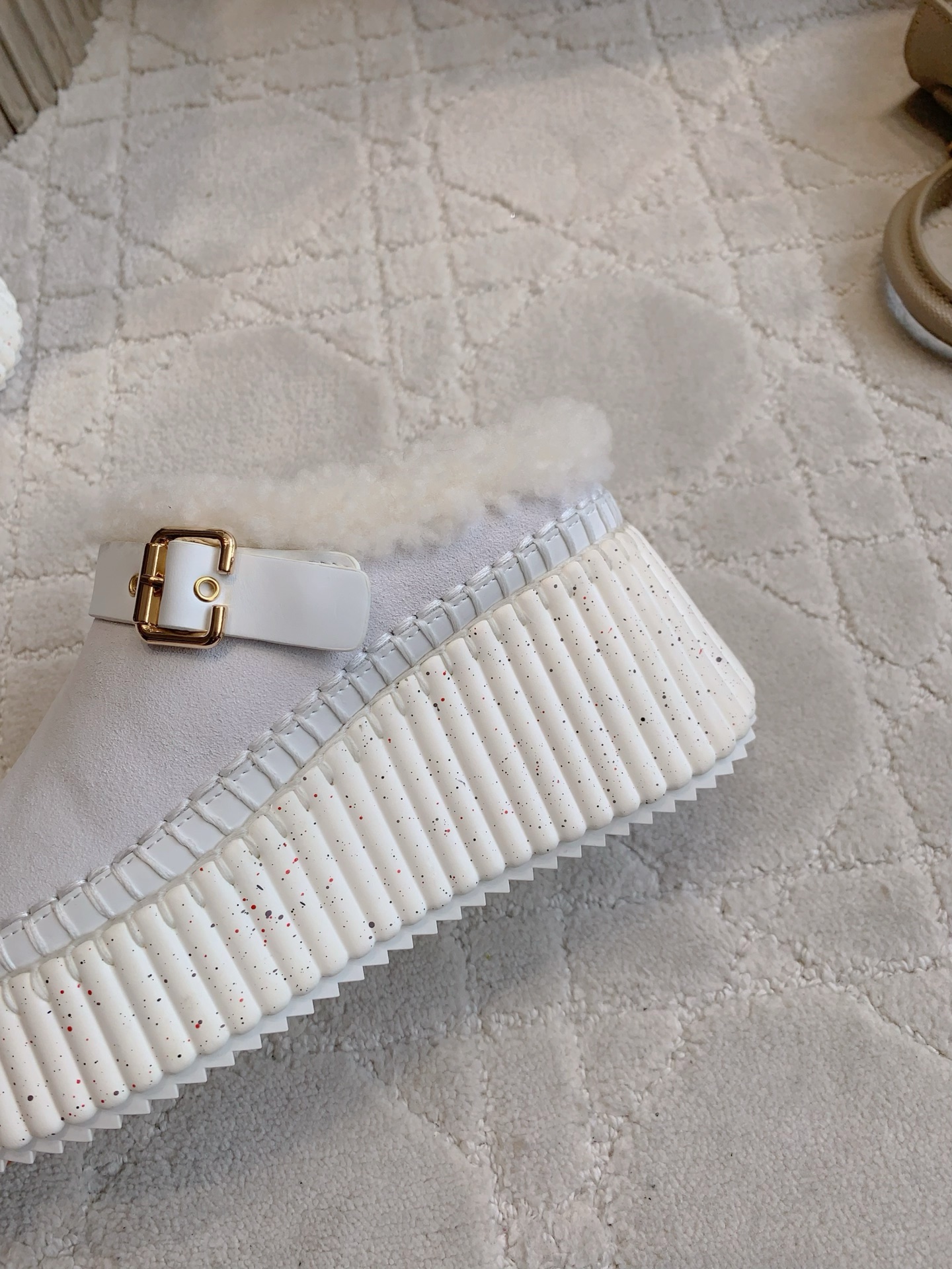 这款鞋子是AAAAA 1:1 质量 (非常棒). 使用了和原版一模一样的材料. 商标部分也保持了和克洛伊/Chloe一样. 图片拍摄是实物鞋子拍摄, 您所收到的实物保证和我们图片一模一样.