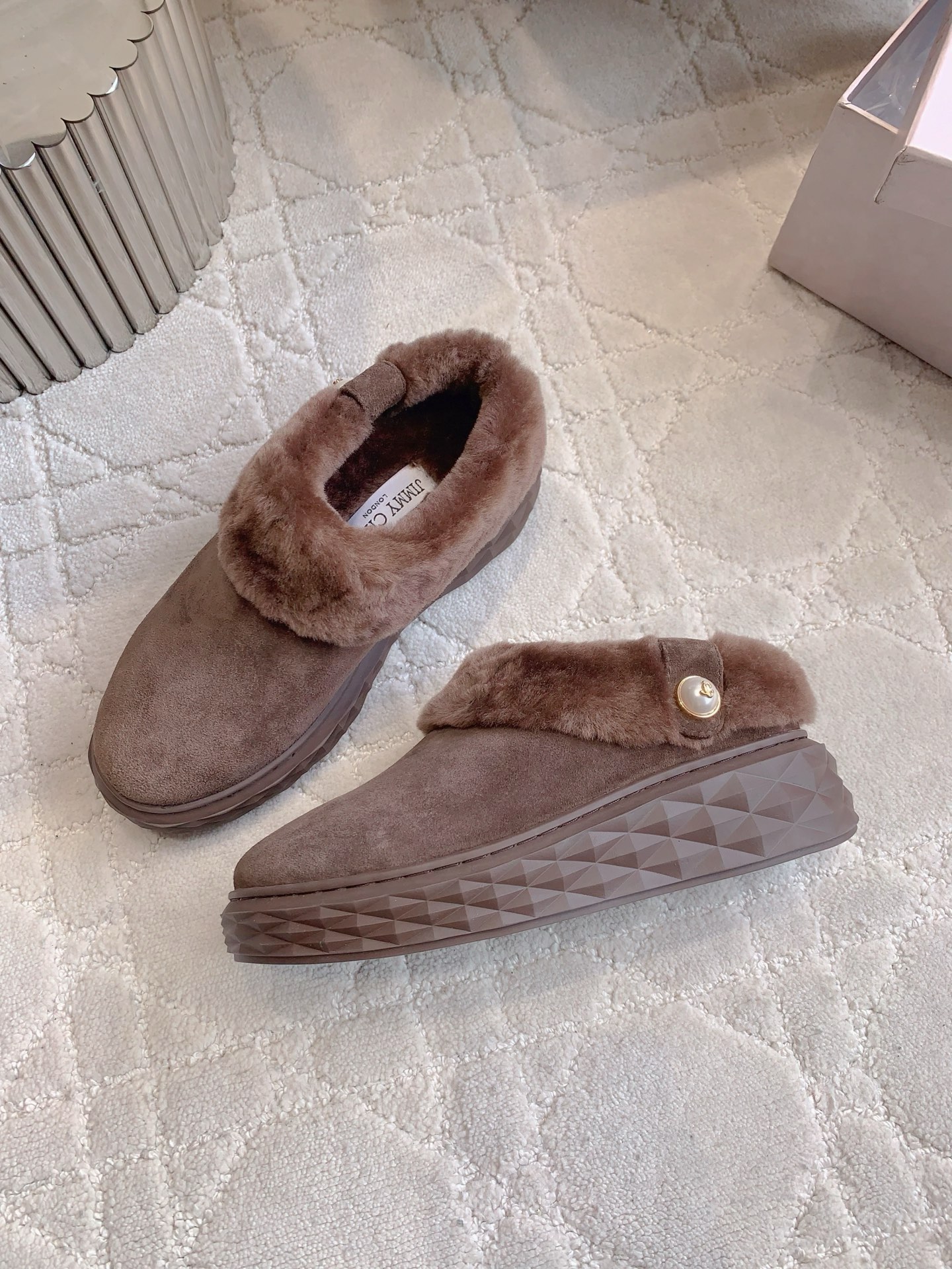 这款鞋子是AAAAA 1:1 质量 (非常棒). 使用了和原版一模一样的材料. 商标部分也保持了和吉米乔/JIMMY CHOO一样. 图片拍摄是实物鞋子拍摄, 您所收到的实物保证和我们图片一模一样.