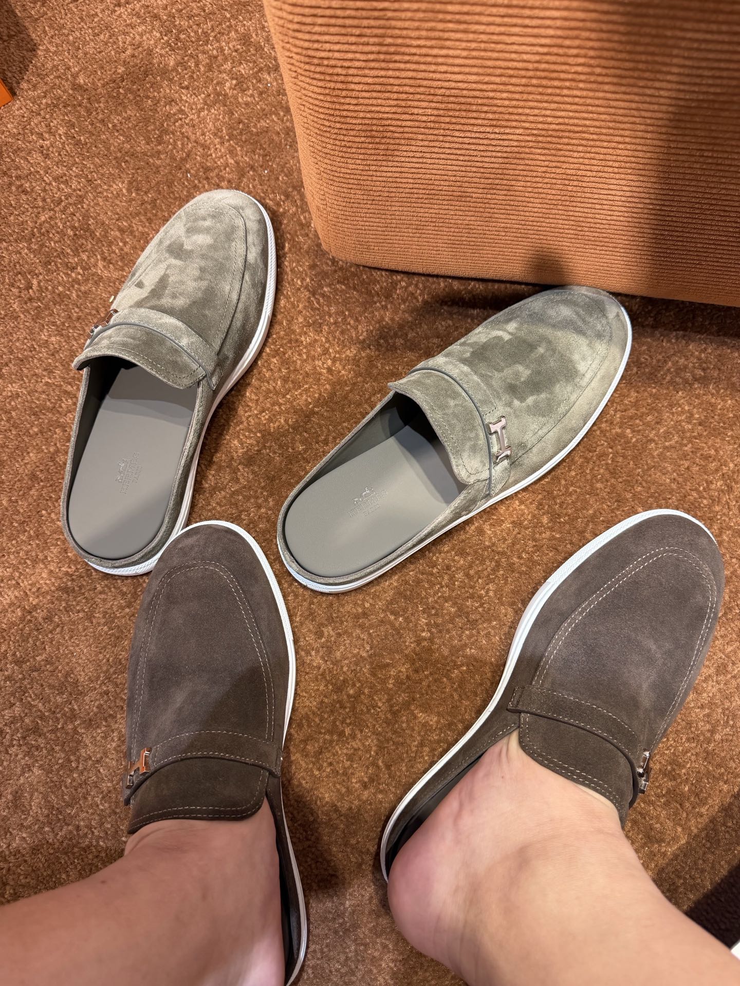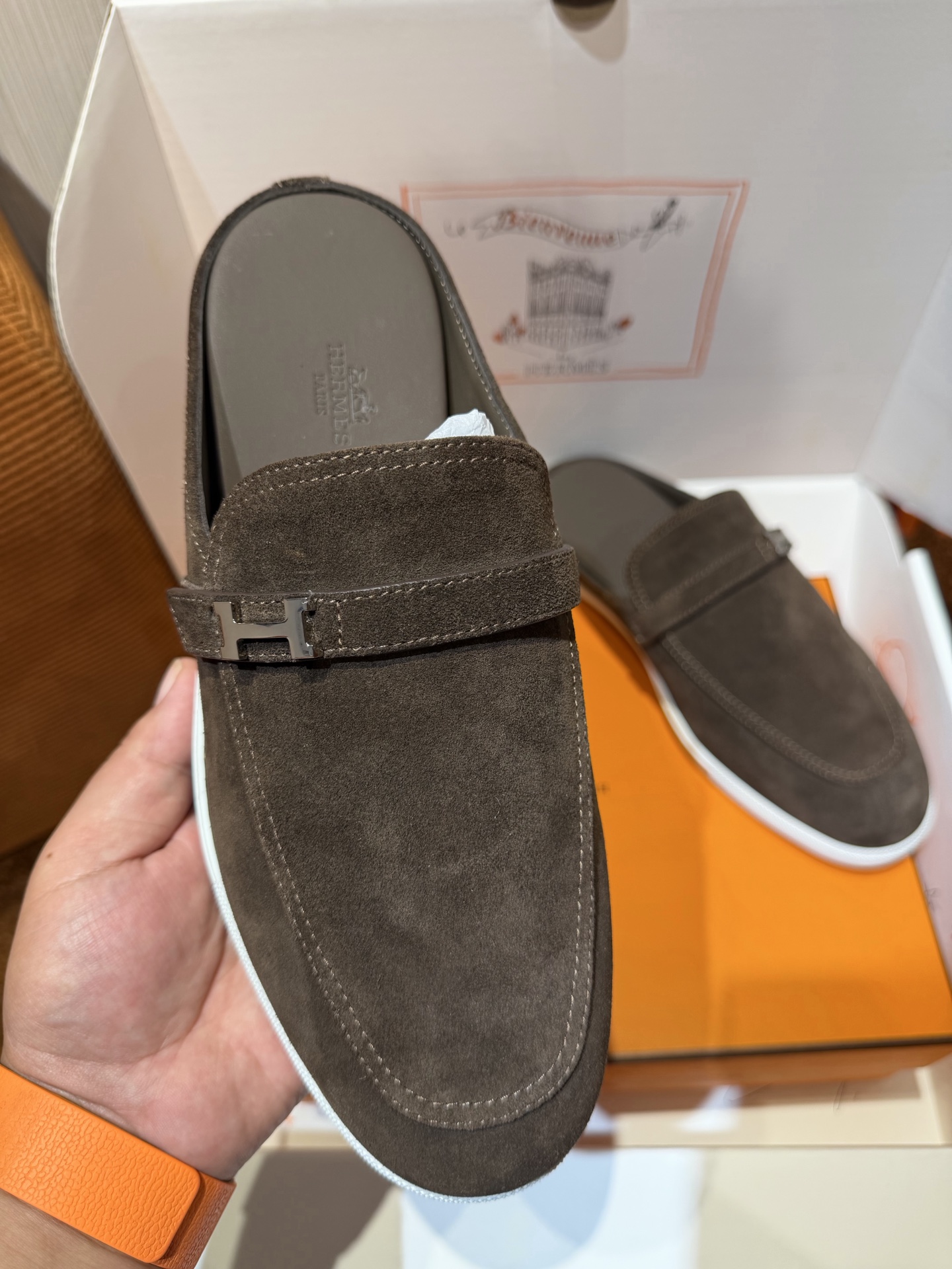 这款鞋子是AAAAA 1:1 质量 (非常棒). 使用了和原版一模一样的材料. 商标部分也保持了和爱马仕/Hermes一样. 图片拍摄是实物鞋子拍摄, 您所收到的实物保证和我们图片一模一样.