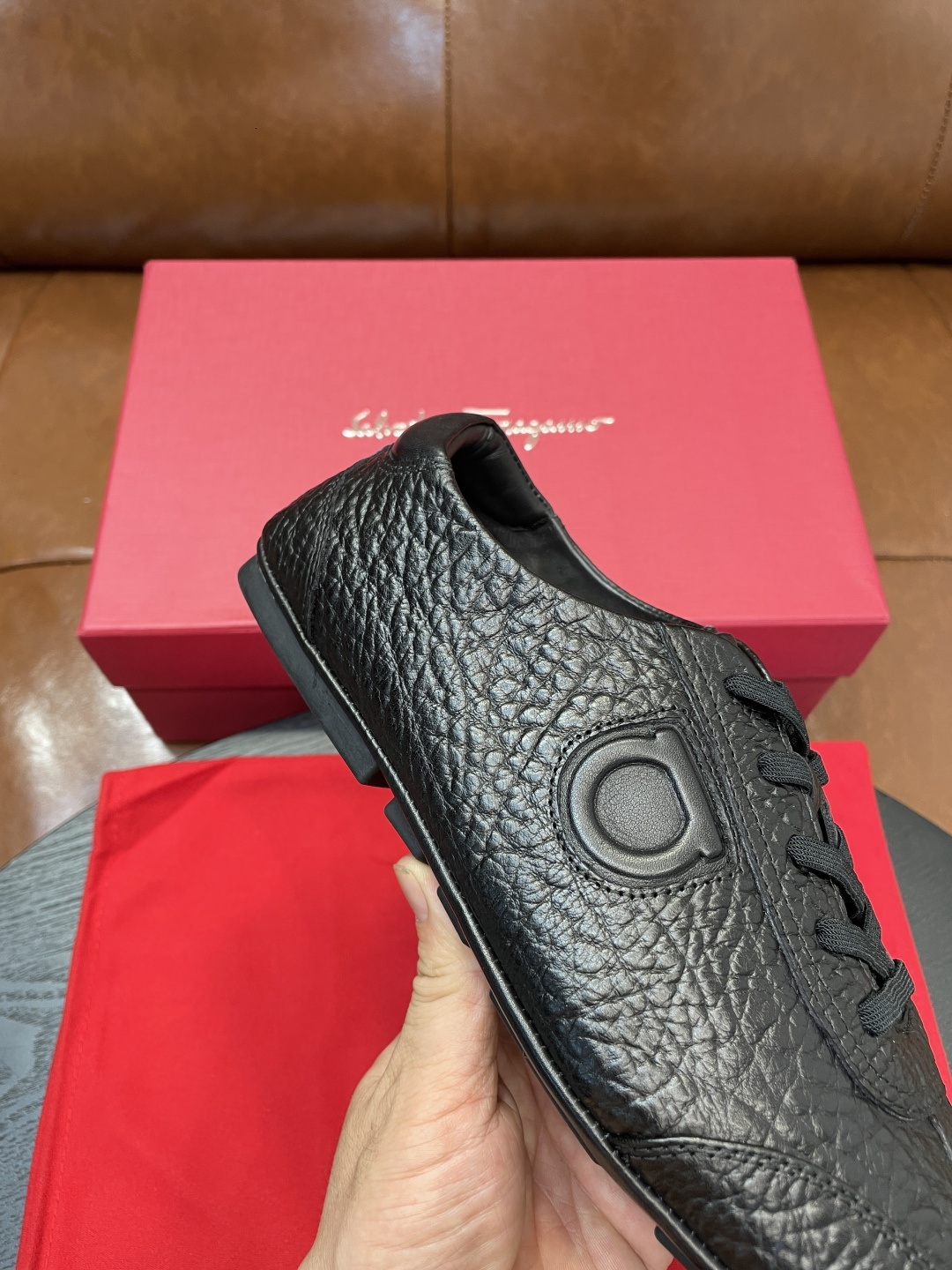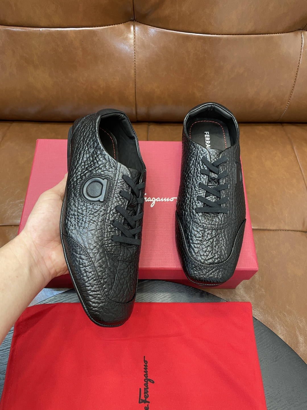 这款鞋子是AAAAA 1:1 质量 (非常棒). 使用了和原版一模一样的材料. 商标部分也保持了和菲拉格慕/Salvatore Ferragamo一样. 图片拍摄是实物鞋子拍摄, 您所收到的实物保证和我们图片一模一样.