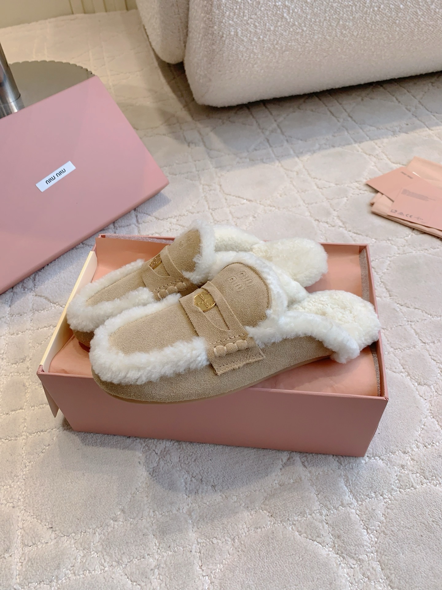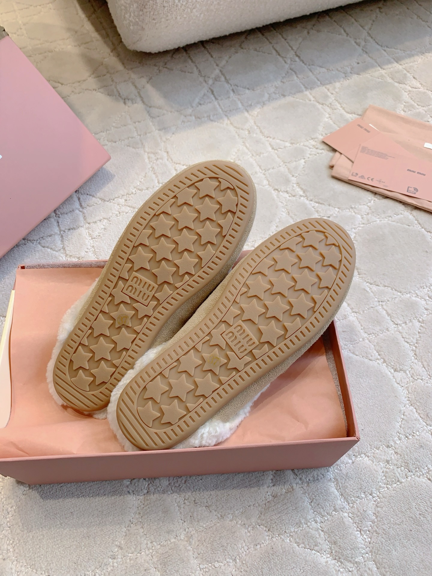 这款鞋子是AAAAA 1:1 质量 (非常棒). 使用了和原版一模一样的材料. 商标部分也保持了和缪缪/Miu Miu一样. 图片拍摄是实物鞋子拍摄, 您所收到的实物保证和我们图片一模一样.