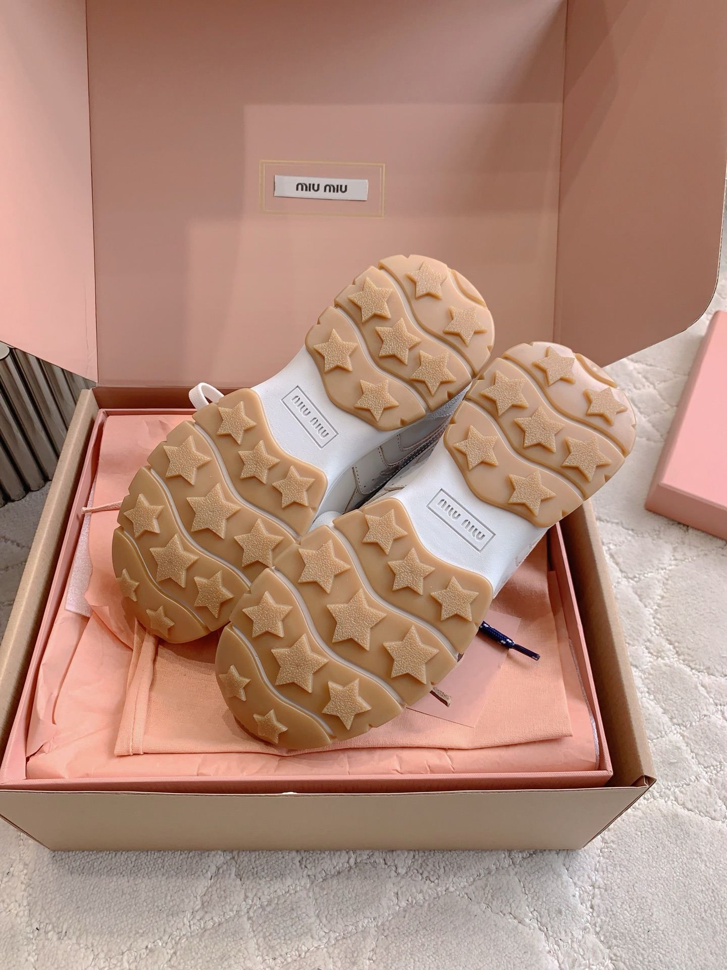 这款鞋子是AAAAA 1:1 质量 (非常棒). 使用了和原版一模一样的材料. 商标部分也保持了和缪缪/Miu Miu一样. 图片拍摄是实物鞋子拍摄, 您所收到的实物保证和我们图片一模一样.