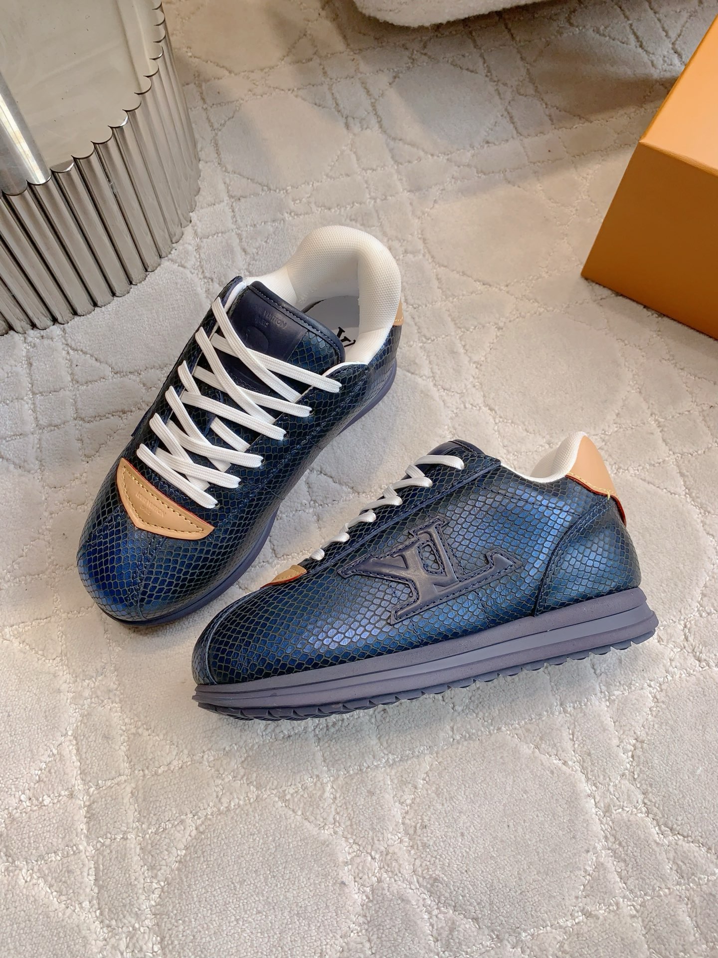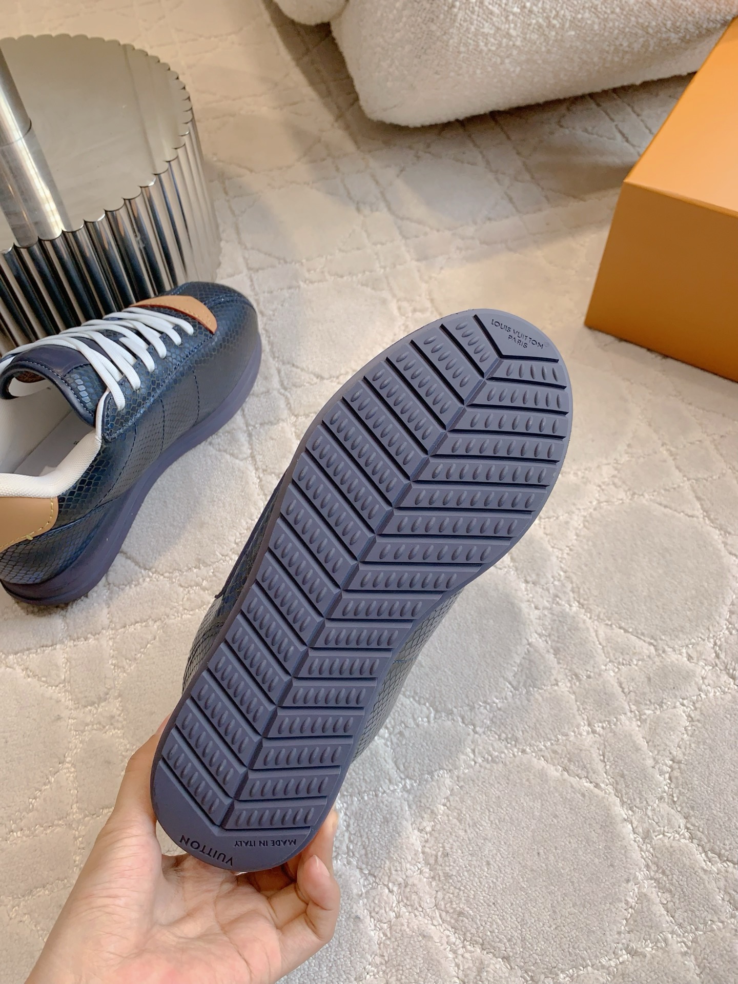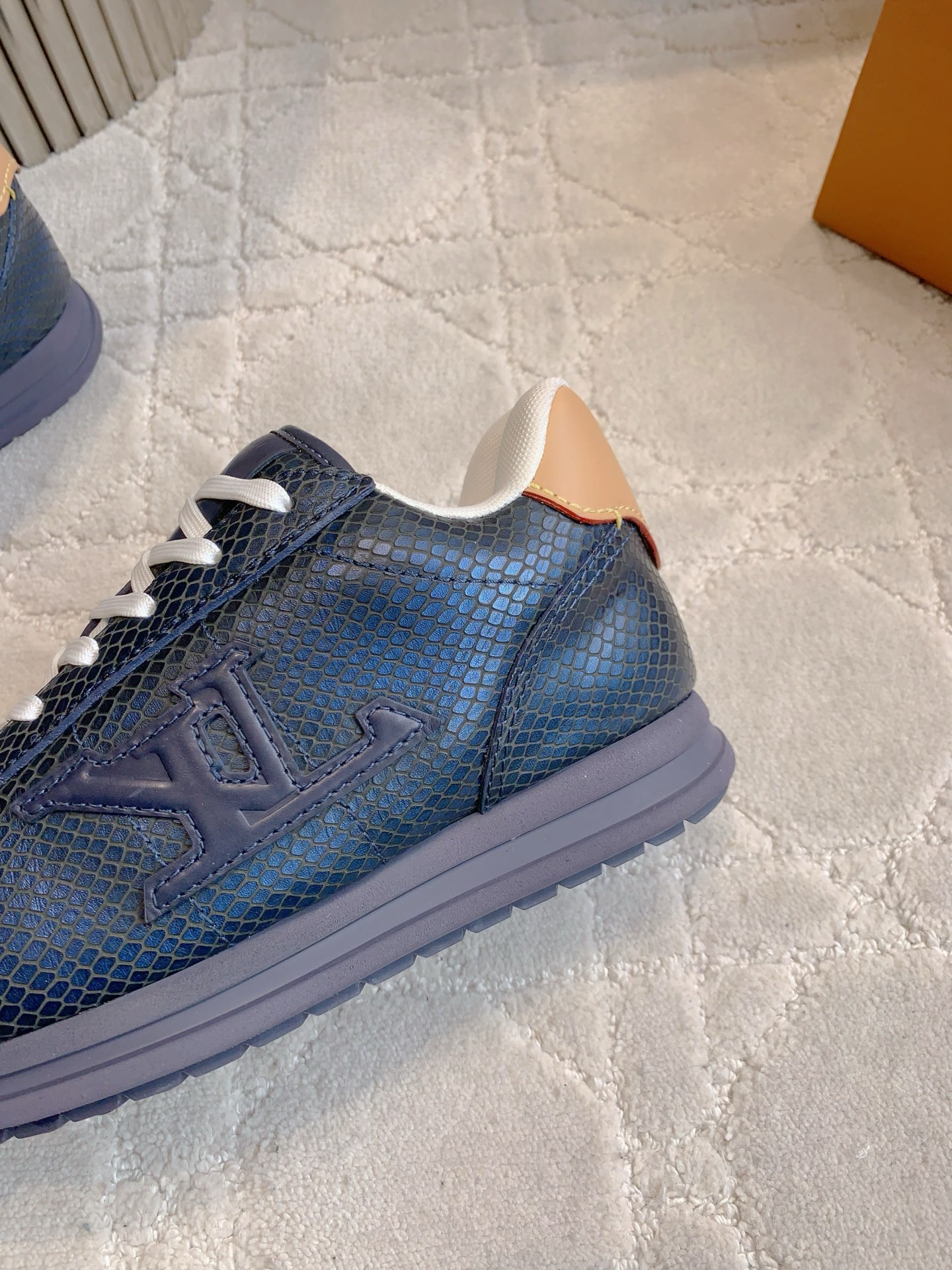 这款鞋子是AAAAA 1:1 质量 (非常棒). 使用了和原版一模一样的材料. 商标部分也保持了和路易威登/Louis Vuitton一样. 图片拍摄是实物鞋子拍摄, 您所收到的实物保证和我们图片一模一样.