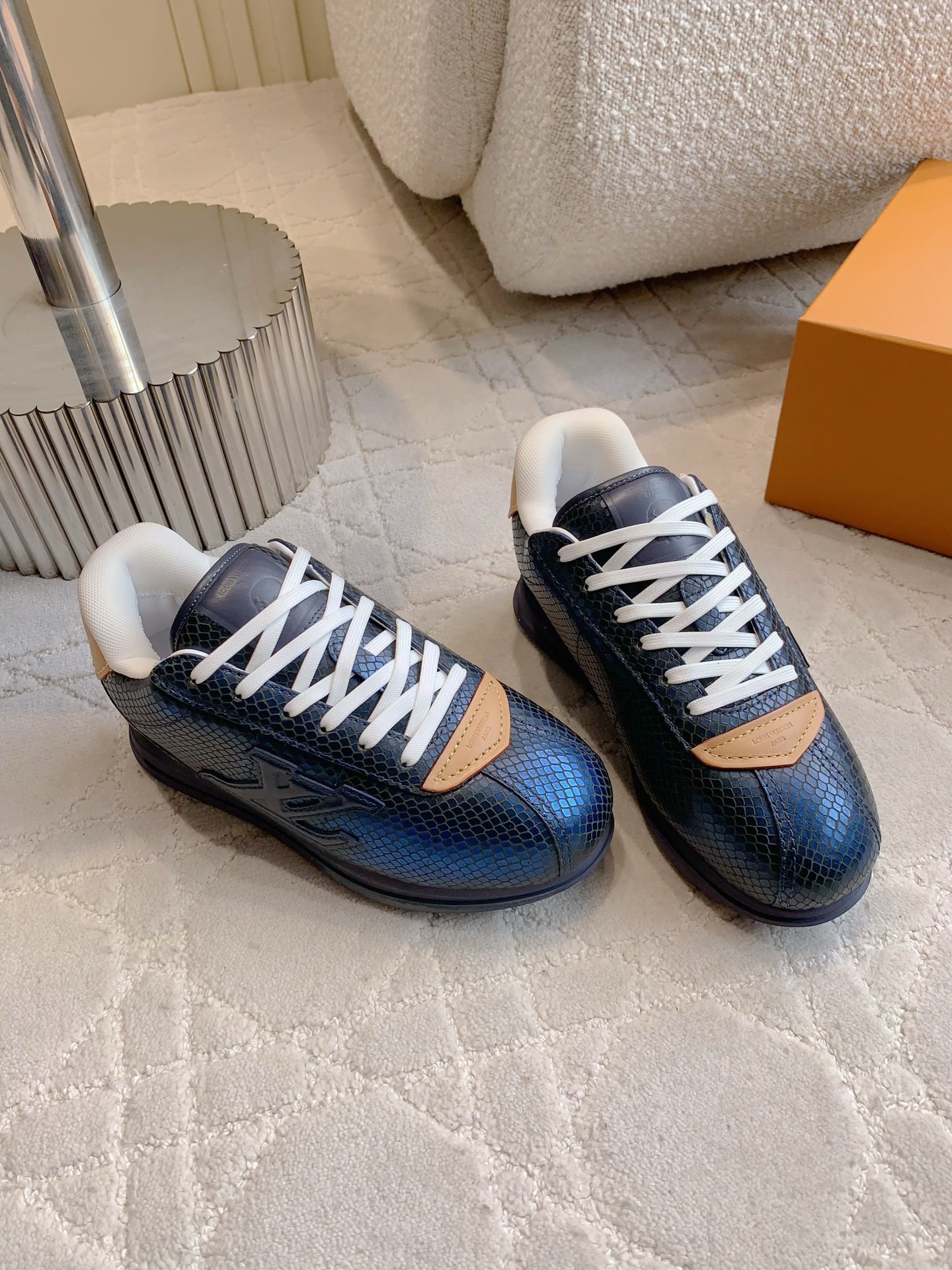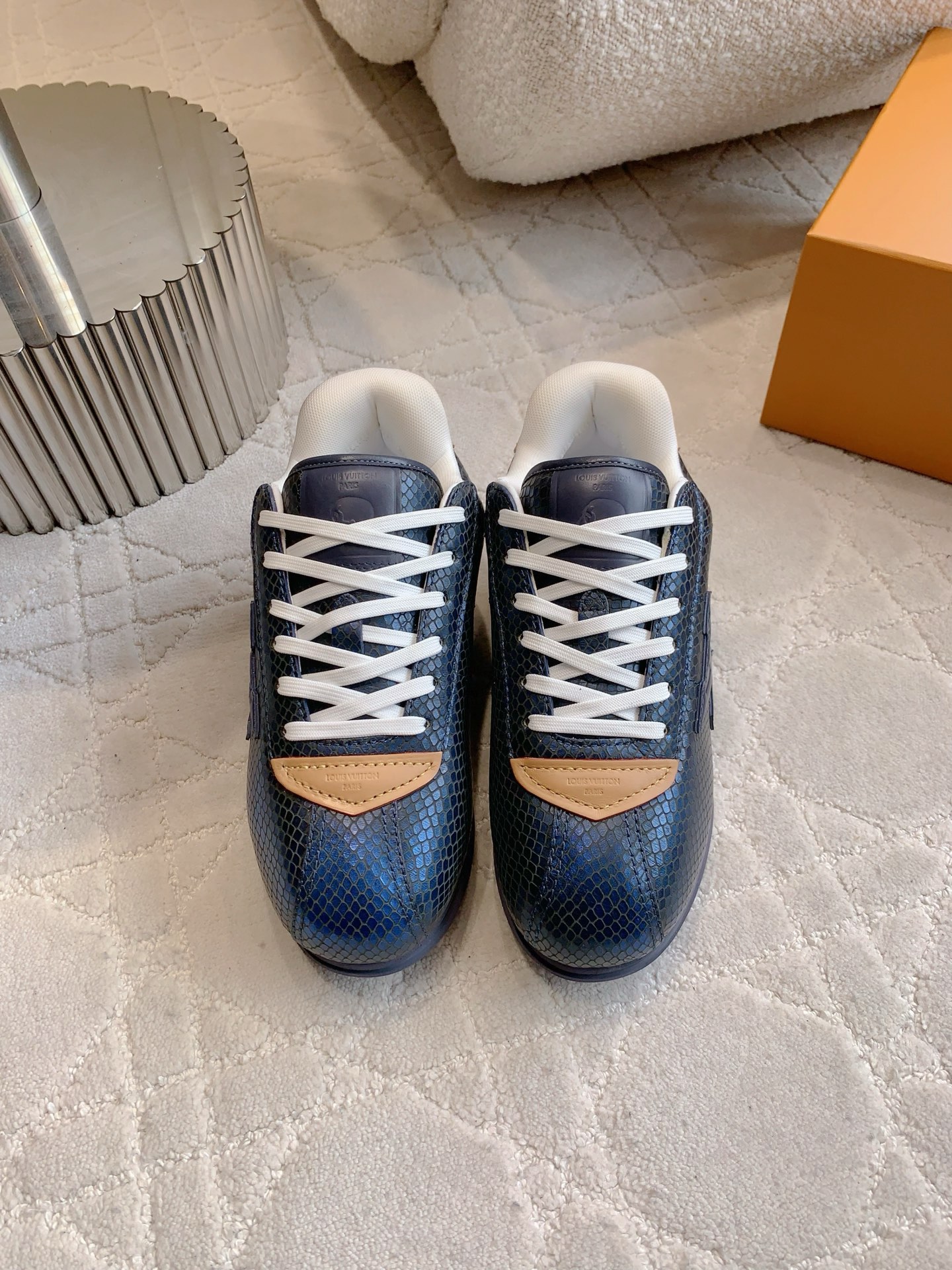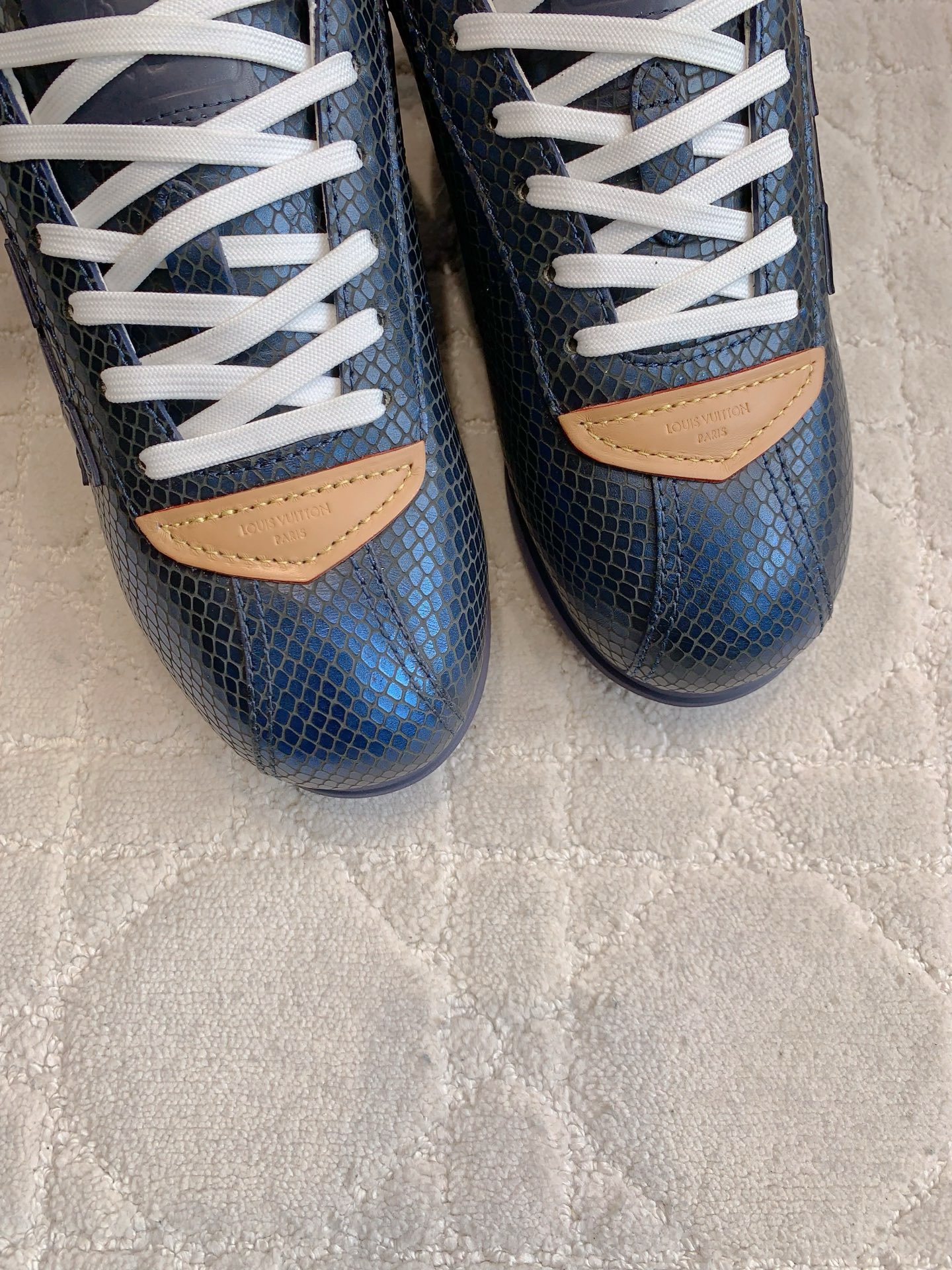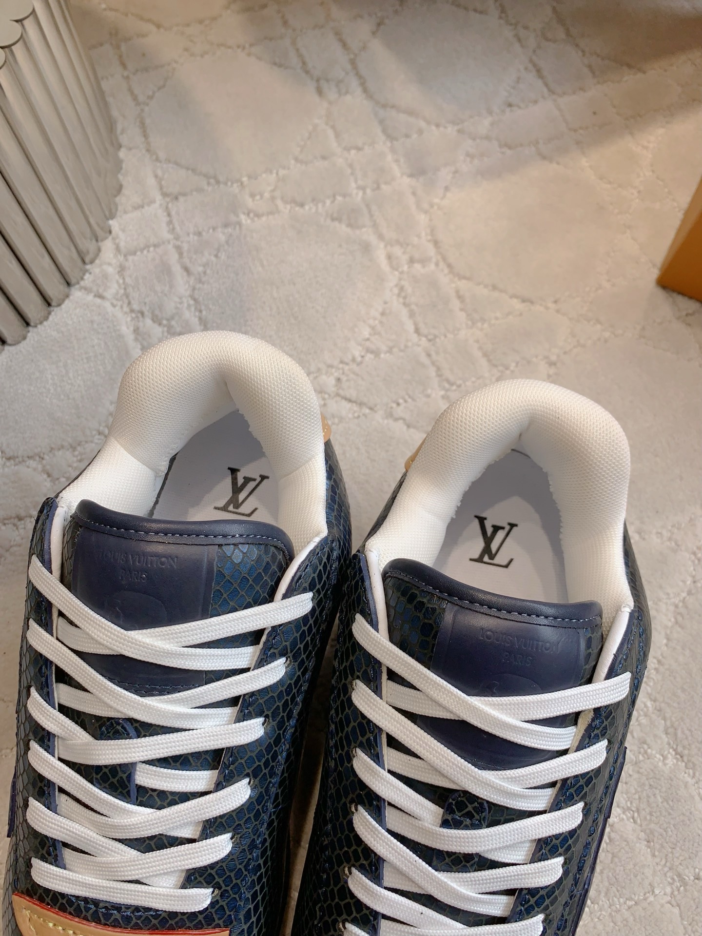 这款鞋子是AAAAA 1:1 质量 (非常棒). 使用了和原版一模一样的材料. 商标部分也保持了和路易威登/Louis Vuitton一样. 图片拍摄是实物鞋子拍摄, 您所收到的实物保证和我们图片一模一样.