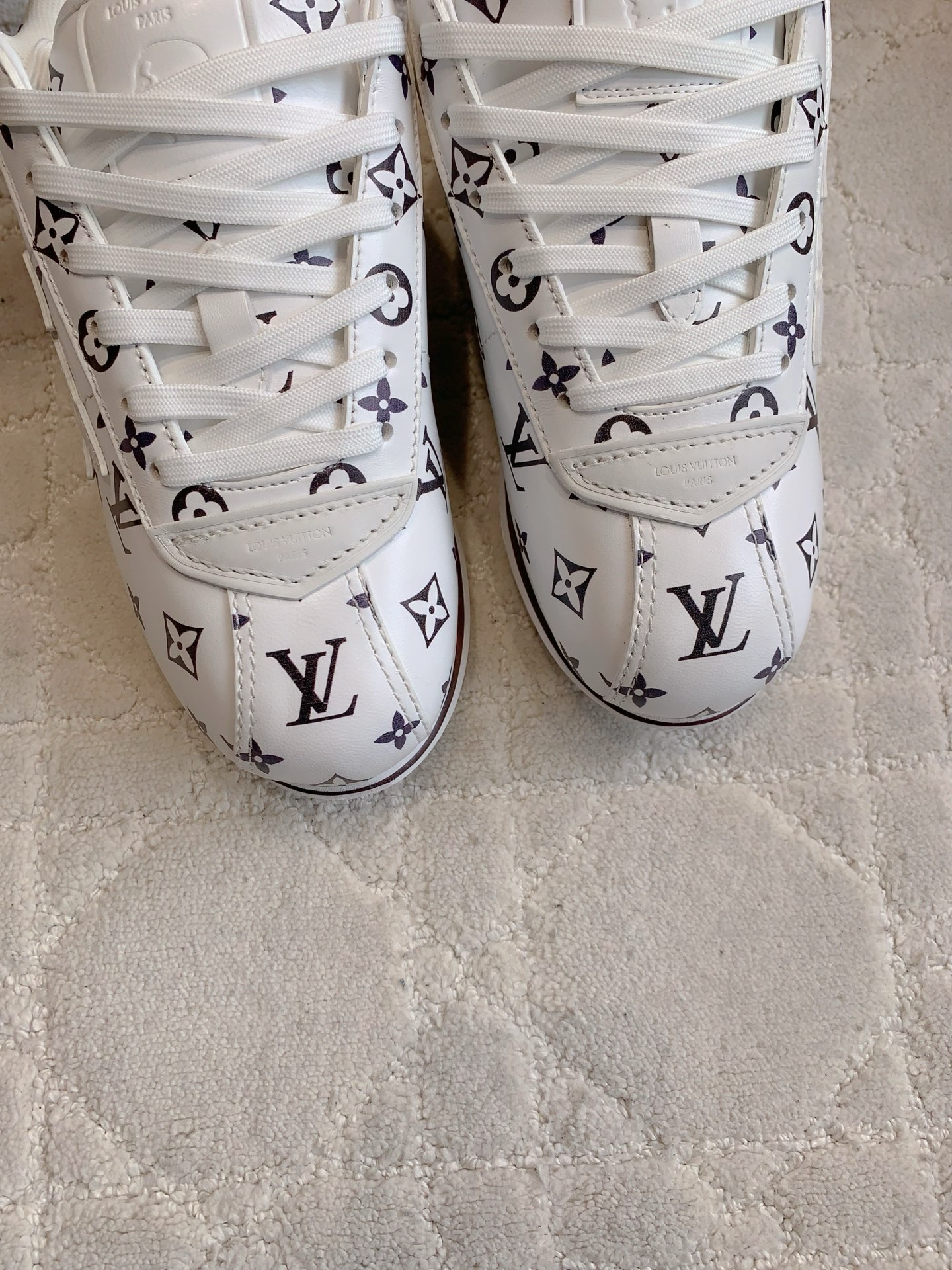 这款鞋子是AAAAA 1:1 质量 (非常棒). 使用了和原版一模一样的材料. 商标部分也保持了和路易威登/Louis Vuitton一样. 图片拍摄是实物鞋子拍摄, 您所收到的实物保证和我们图片一模一样.