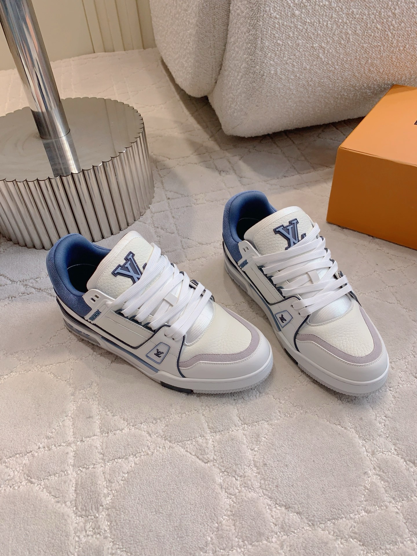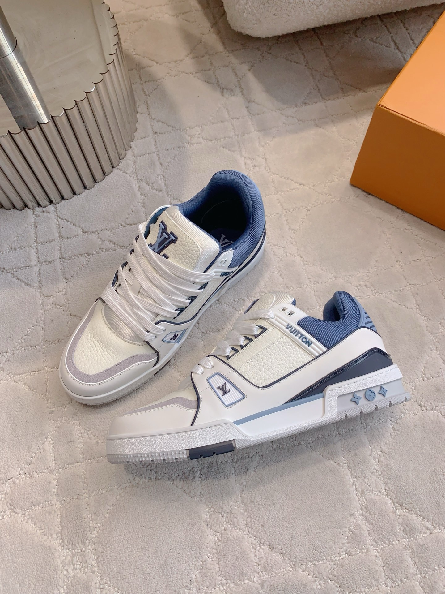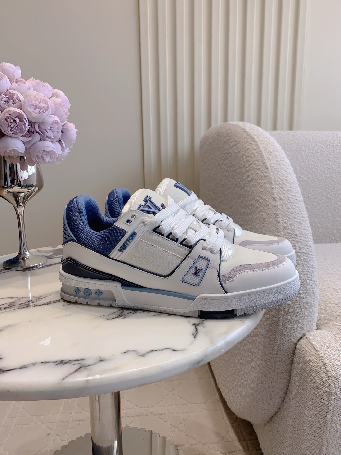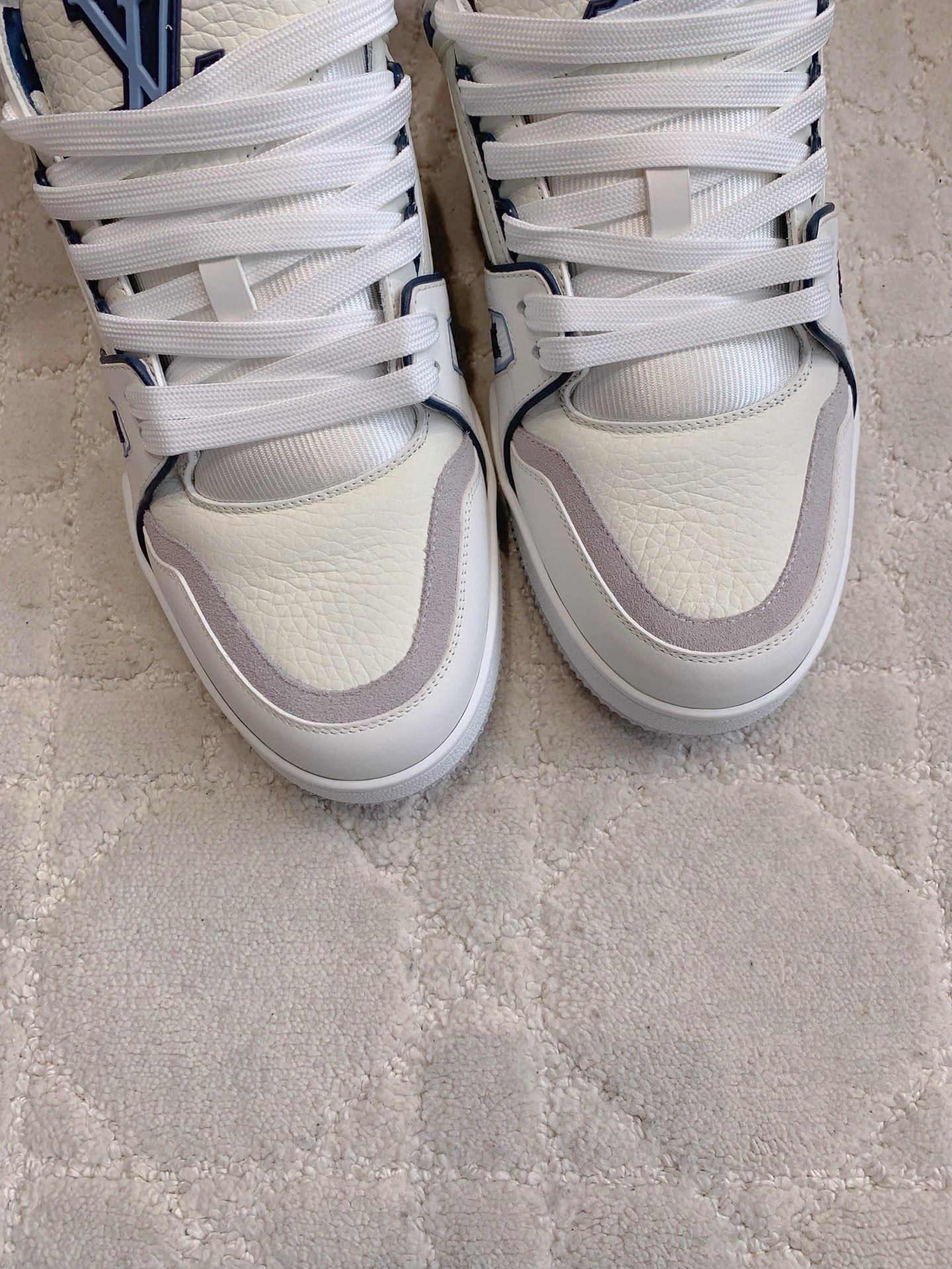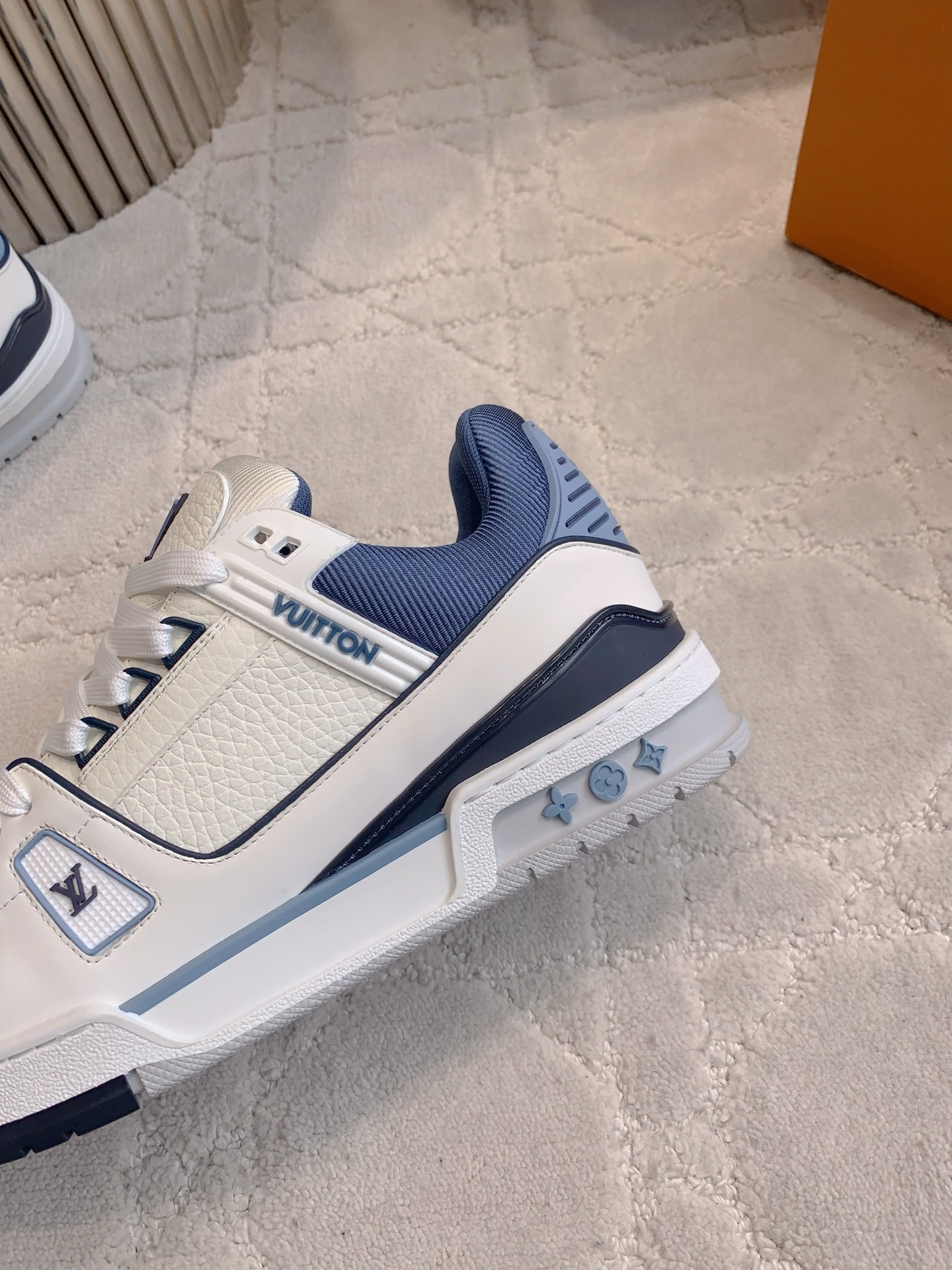 这款鞋子是AAAAA 1:1 质量 (非常棒). 使用了和原版一模一样的材料. 商标部分也保持了和路易威登/Louis Vuitton一样. 图片拍摄是实物鞋子拍摄, 您所收到的实物保证和我们图片一模一样.