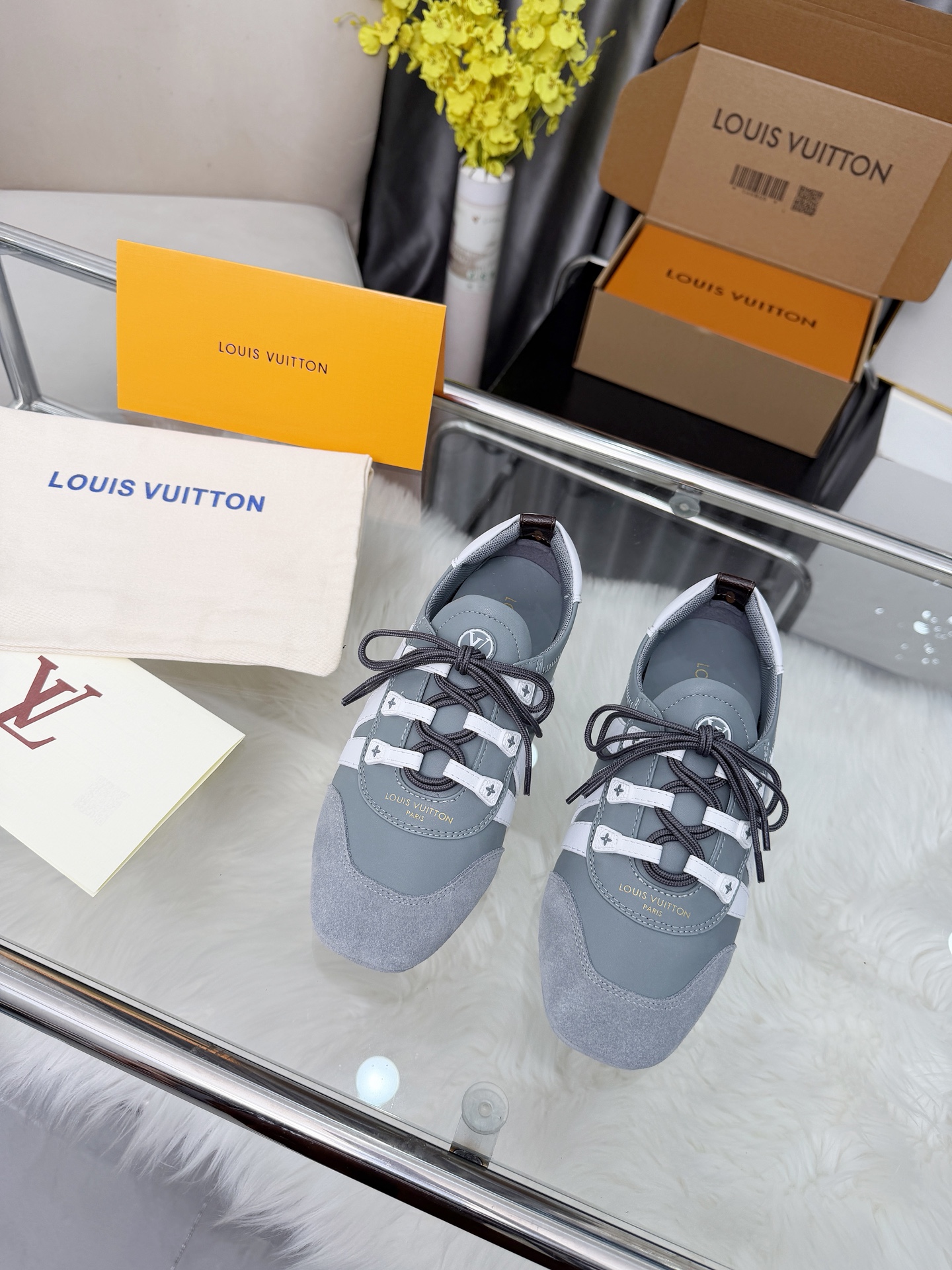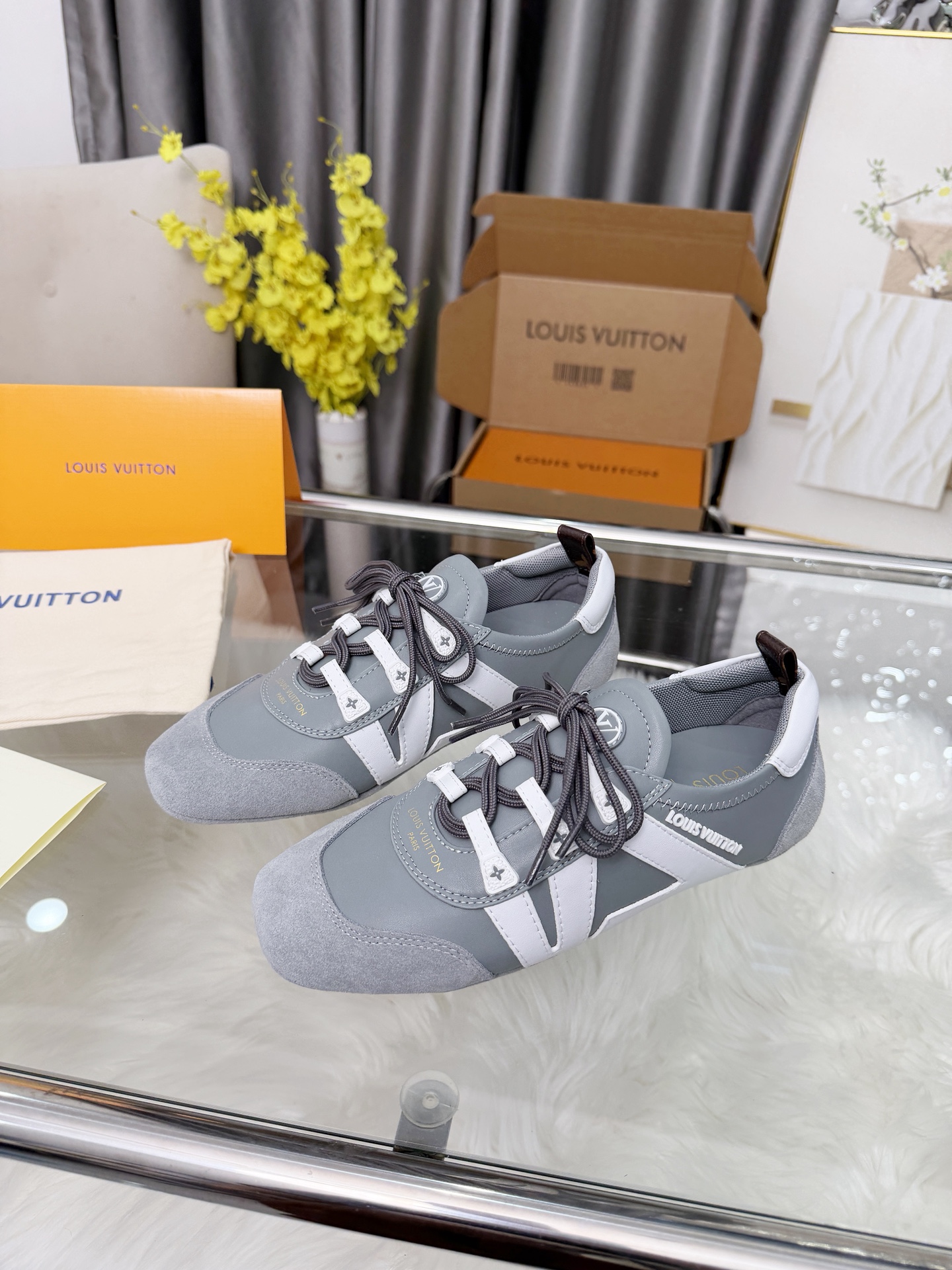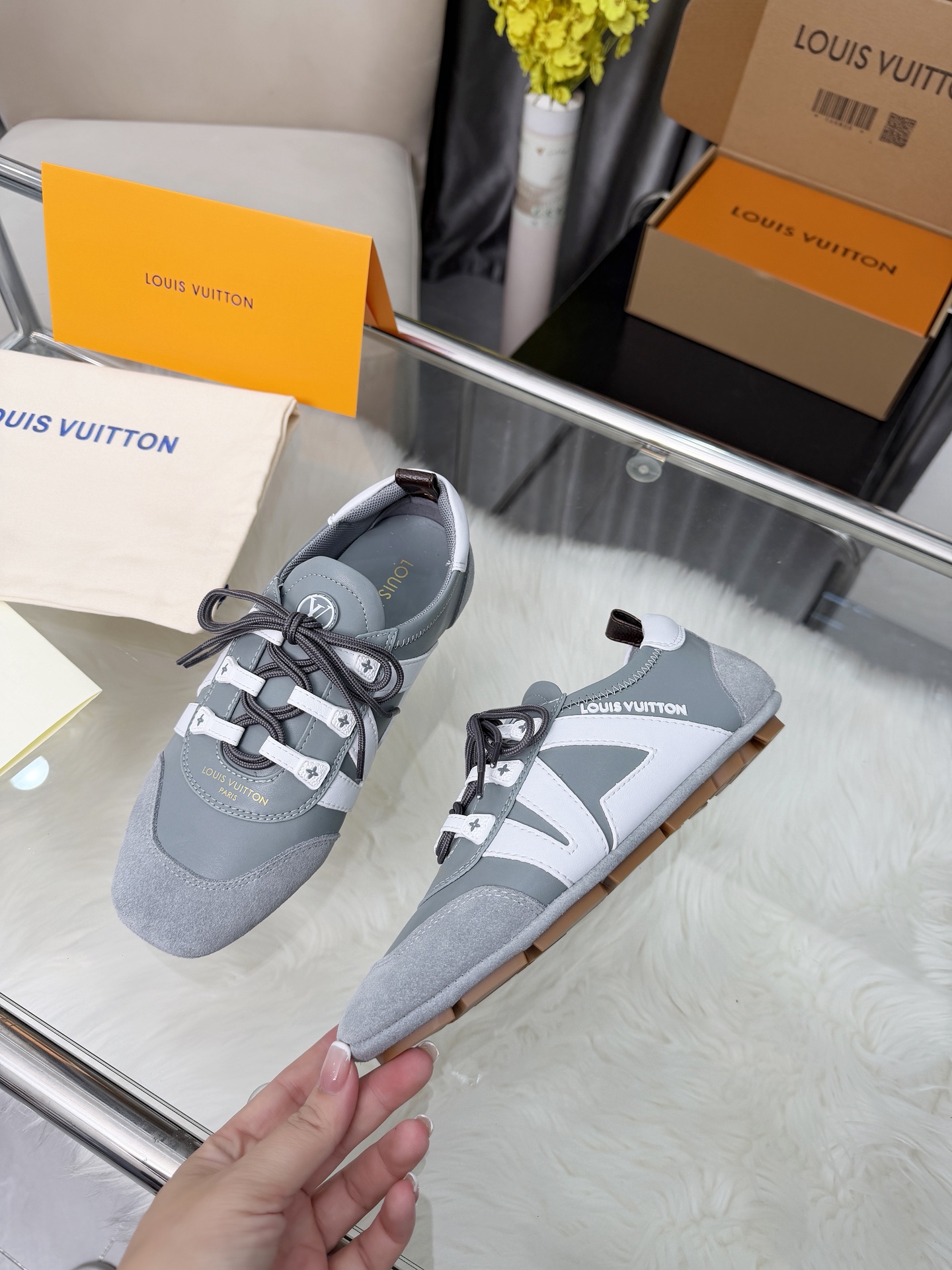 这款鞋子是AAAAA 1:1 质量 (非常棒). 使用了和原版一模一样的材料. 商标部分也保持了和路易威登/Louis Vuitton一样. 图片拍摄是实物鞋子拍摄, 您所收到的实物保证和我们图片一模一样.