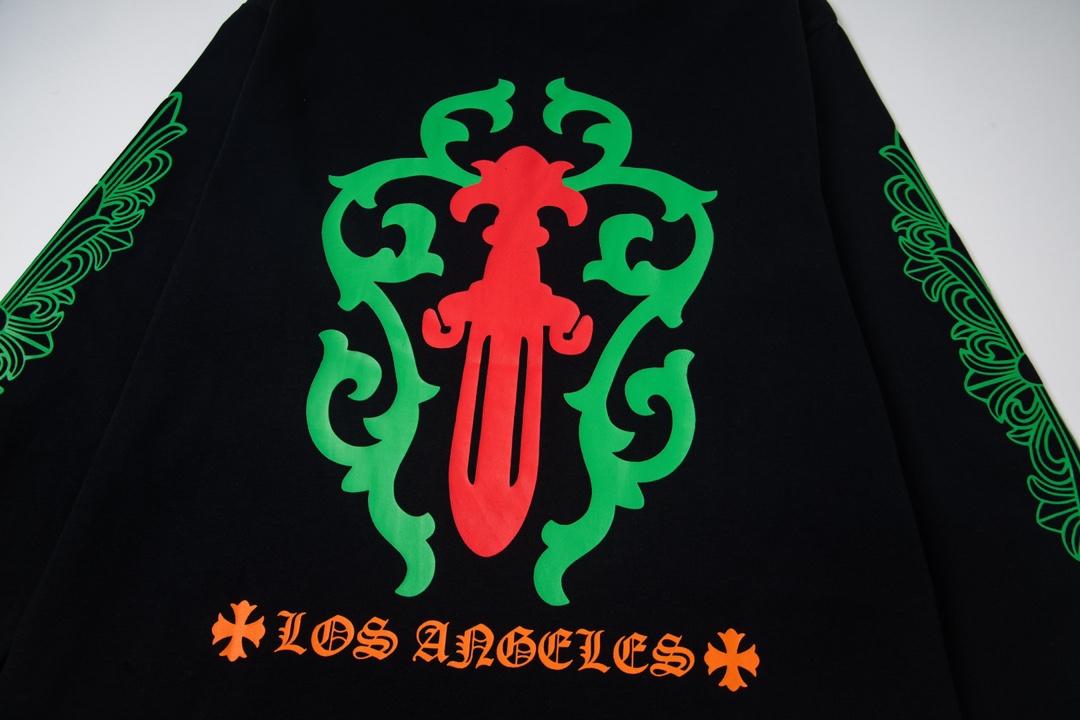 这款衣服是AAAAA 1:1 质量 (非常棒). 使用了和原版一模一样的材料. 商标部分也保持了和克罗心/Chrome Hearts一样. 图片拍摄是实物衣服拍摄, 您所收到的实物保证和我们图片一模一样.