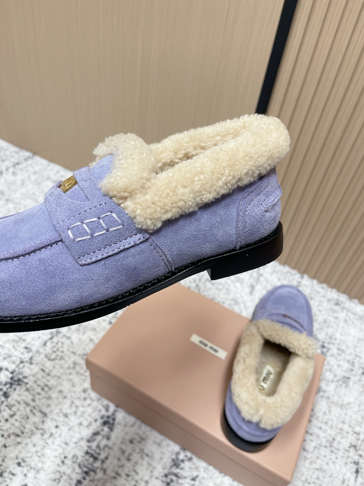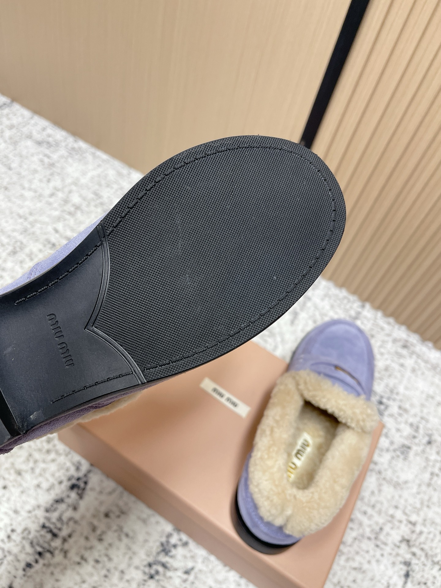 这款鞋子是AAAAA 1:1 质量 (非常棒). 使用了和原版一模一样的材料. 商标部分也保持了和缪缪/Miu Miu一样. 图片拍摄是实物鞋子拍摄, 您所收到的实物保证和我们图片一模一样.