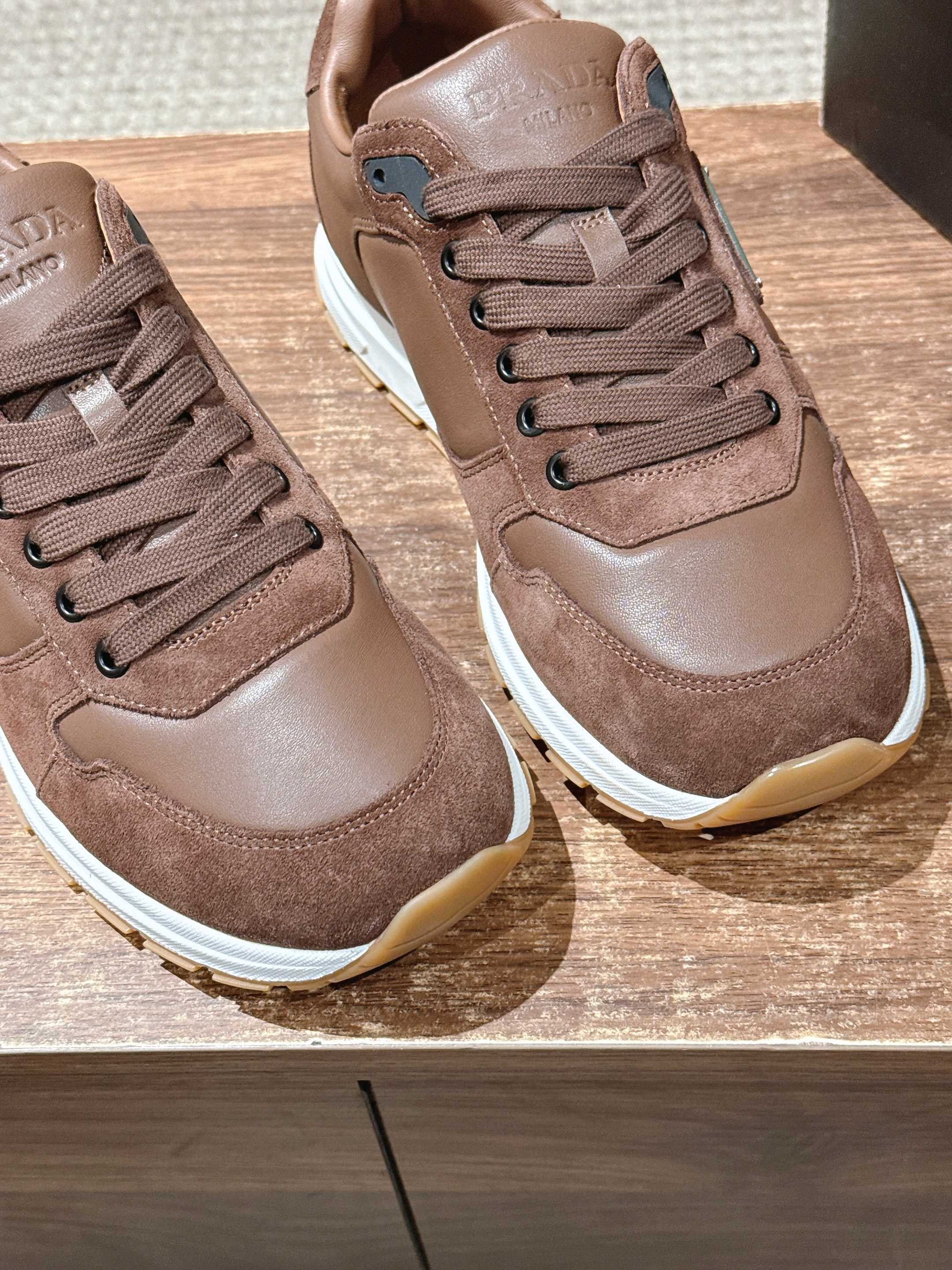 这款鞋子是AAAAA 1:1 质量 (非常棒). 使用了和原版一模一样的材料. 商标部分也保持了和普拉达/Prada一样. 图片拍摄是实物鞋子拍摄, 您所收到的实物保证和我们图片一模一样.