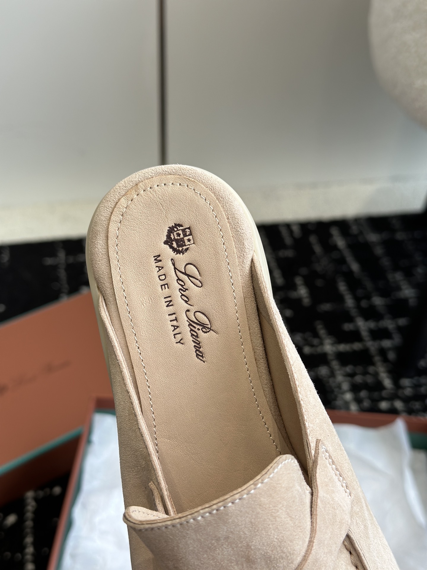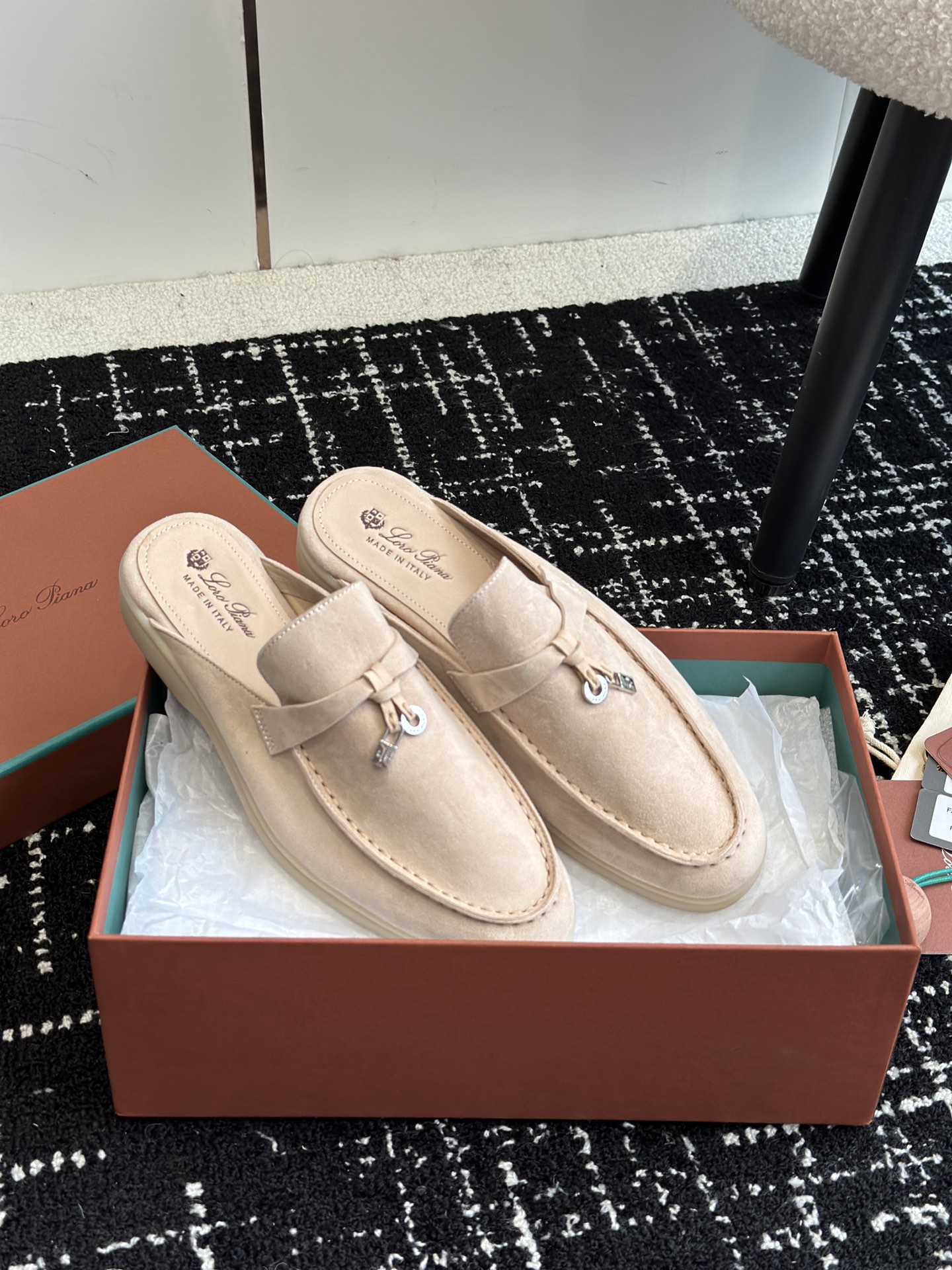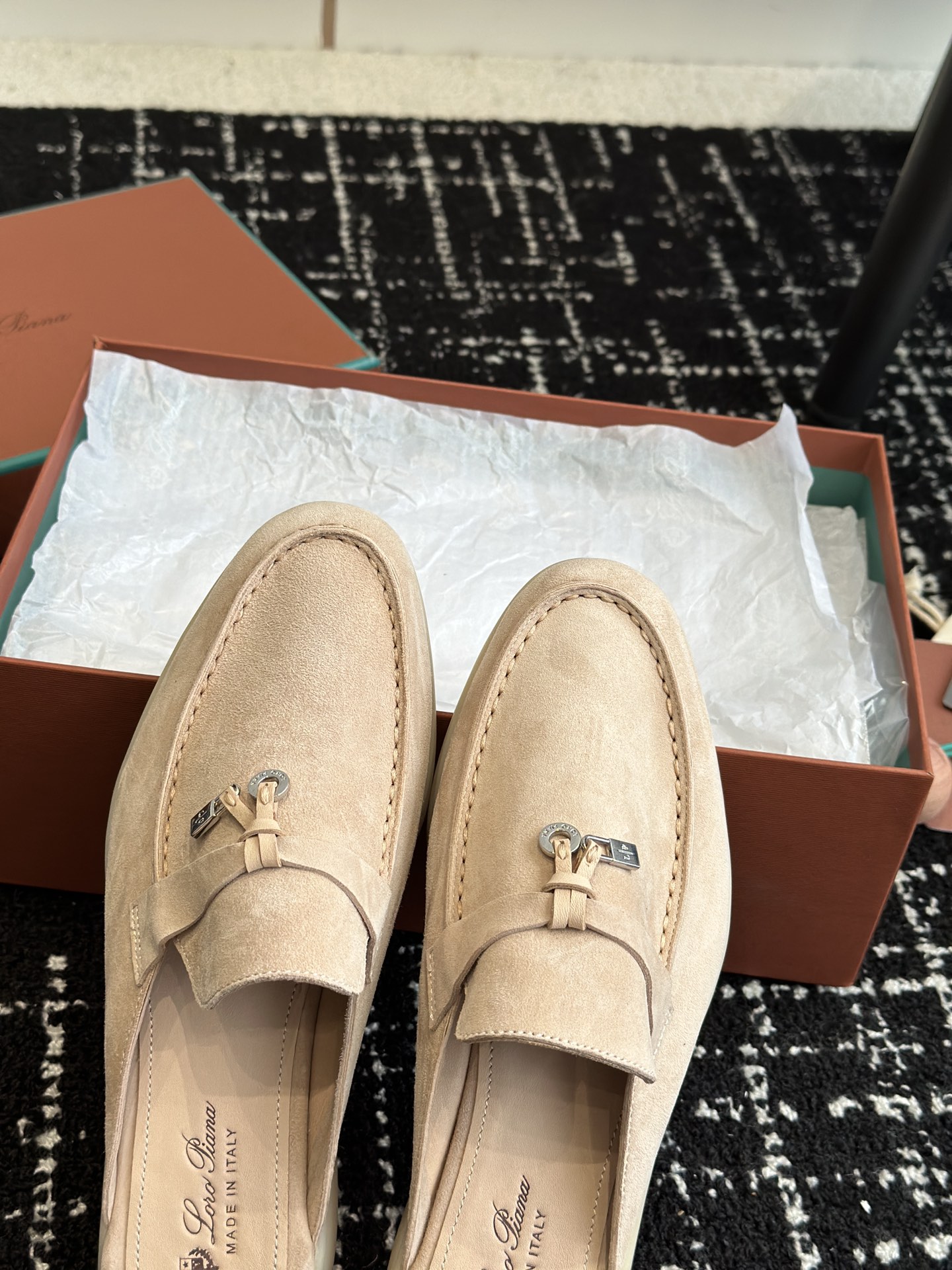 这款鞋子是AAAAA 1:1 质量 (非常棒). 使用了和原版一模一样的材料. 商标部分也保持了和洛罗皮亚纳/Loro Piana一样. 图片拍摄是实物鞋子拍摄, 您所收到的实物保证和我们图片一模一样.