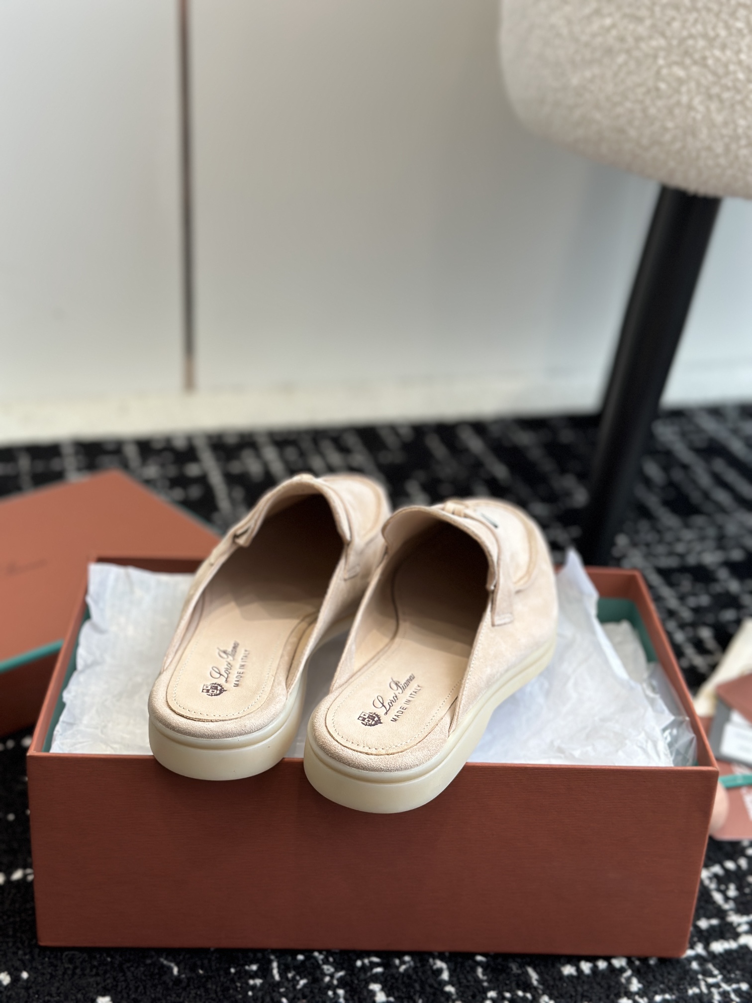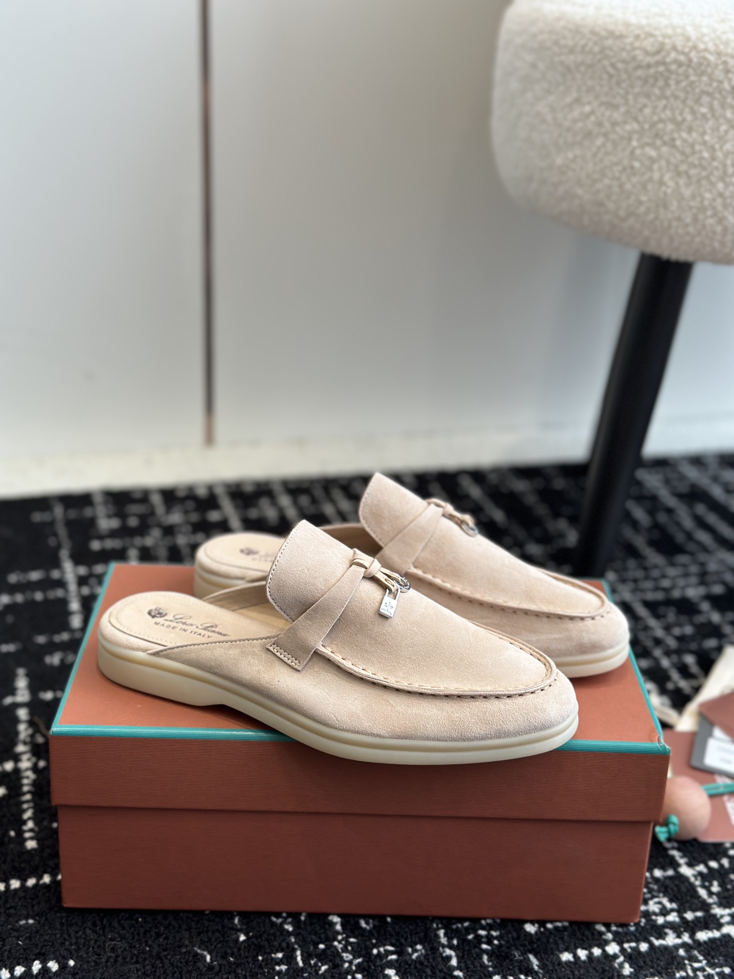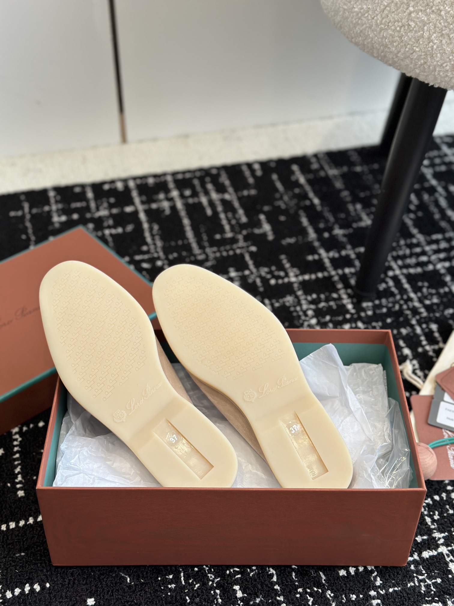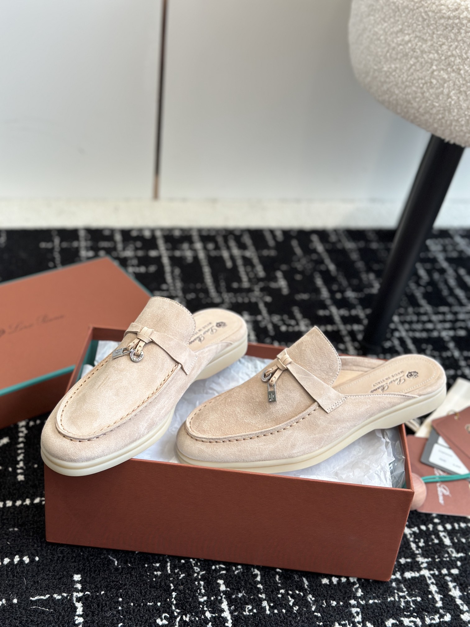 这款鞋子是AAAAA 1:1 质量 (非常棒). 使用了和原版一模一样的材料. 商标部分也保持了和洛罗皮亚纳/Loro Piana一样. 图片拍摄是实物鞋子拍摄, 您所收到的实物保证和我们图片一模一样.