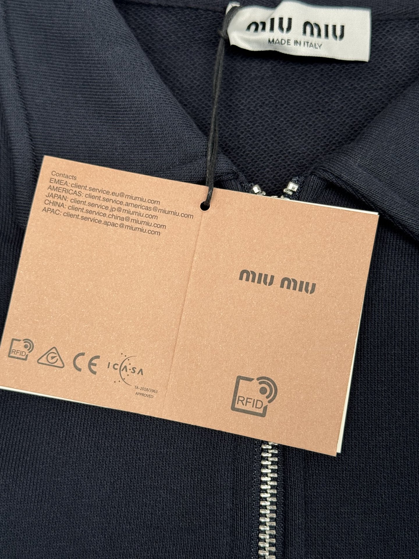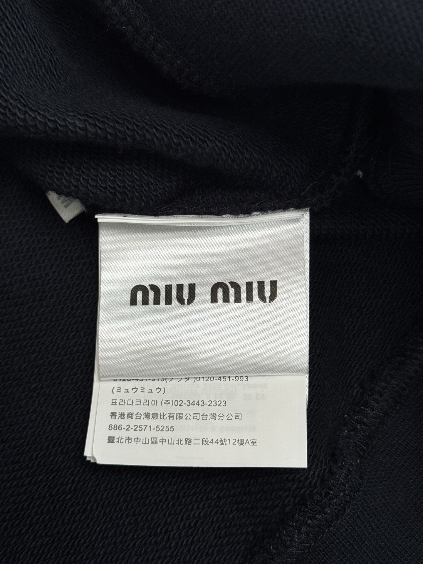 这款衣服是AAAAA 1:1 质量 (非常棒). 使用了和原版一模一样的材料. 商标部分也保持了和缪缪/Miu Miu一样. 图片拍摄是实物衣服拍摄, 您所收到的实物保证和我们图片一模一样.