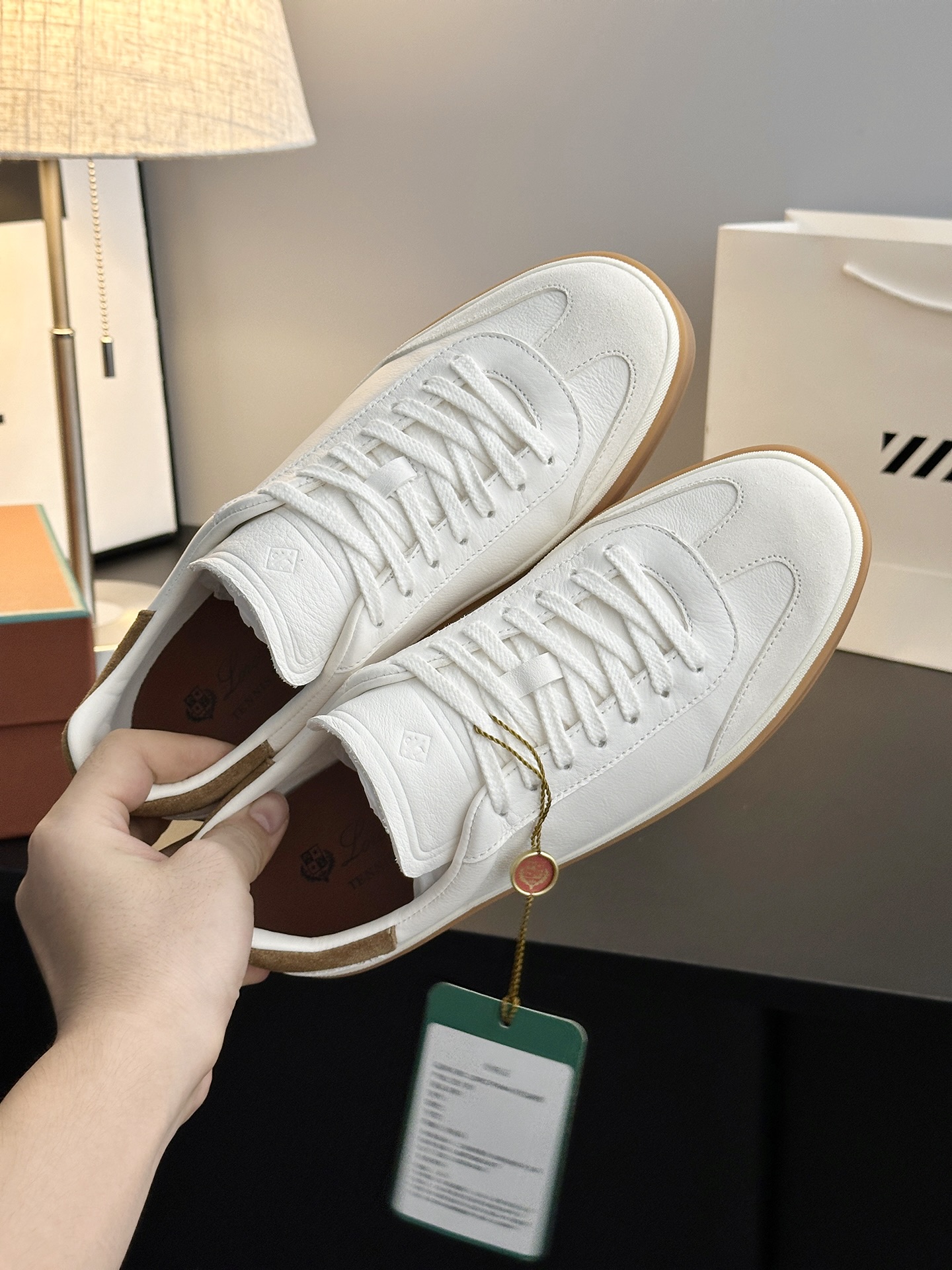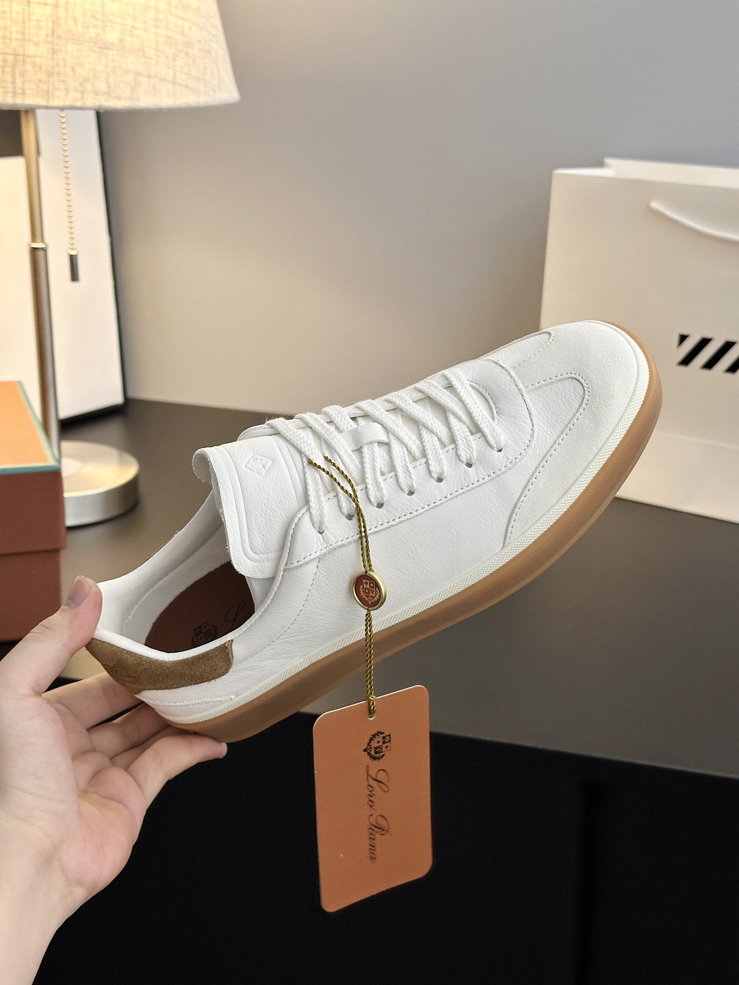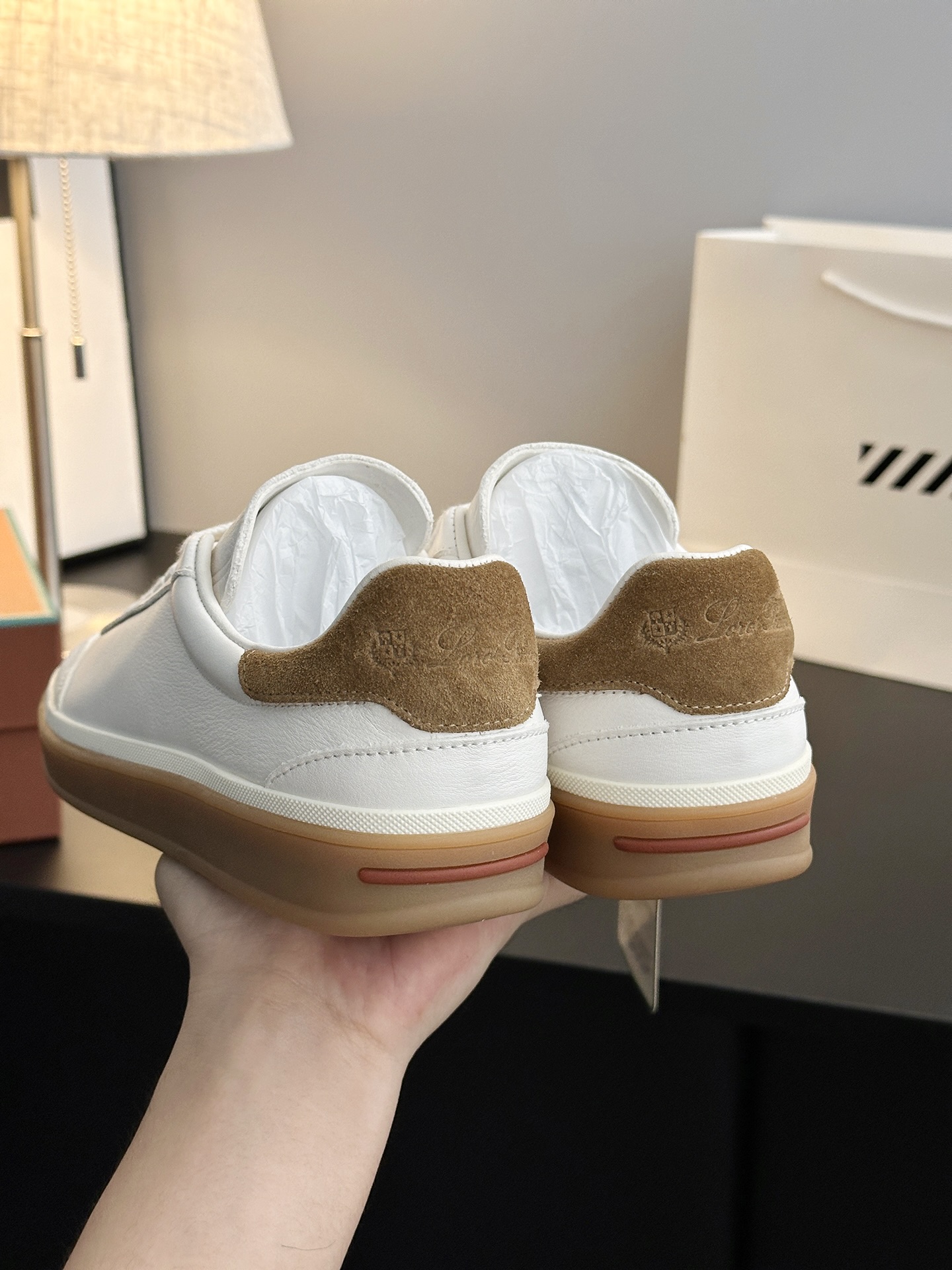 这款鞋子是AAAAA 1:1 质量 (非常棒). 使用了和原版一模一样的材料. 商标部分也保持了和洛罗皮亚纳/Loro Piana一样. 图片拍摄是实物鞋子拍摄, 您所收到的实物保证和我们图片一模一样.