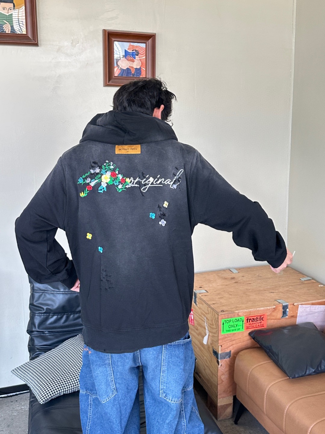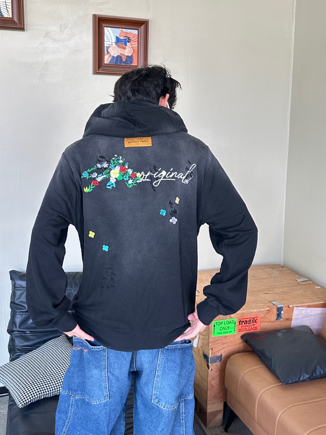 这款衣服是AAAAA 1:1 质量 (非常棒). 使用了和原版一模一样的材料. 商标部分也保持了和路易威登/Louis Vuitton一样. 图片拍摄是实物衣服拍摄, 您所收到的实物保证和我们图片一模一样.