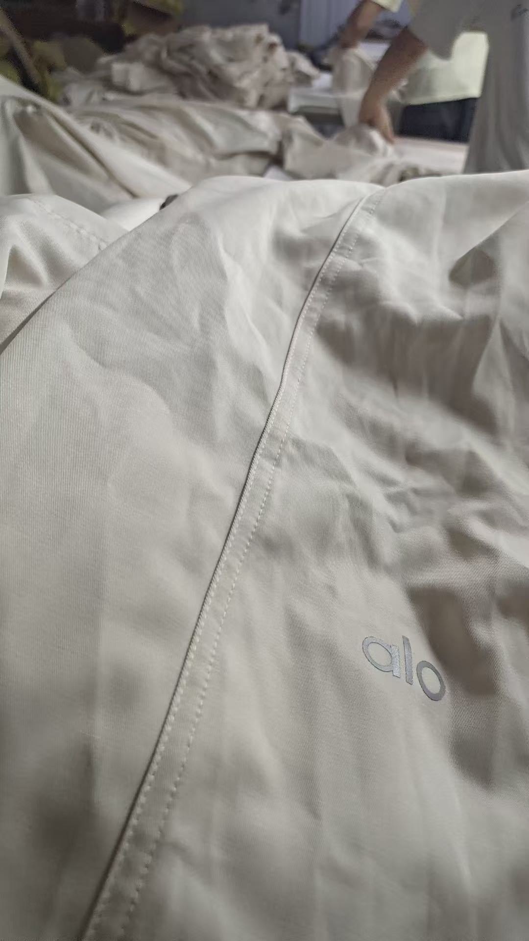这款衣服是AAAAA 1:1 质量 (非常棒). 使用了和原版一模一样的材料. 商标部分也保持了和Alo Yoga一样. 图片拍摄是实物衣服拍摄, 您所收到的实物保证和我们图片一模一样.