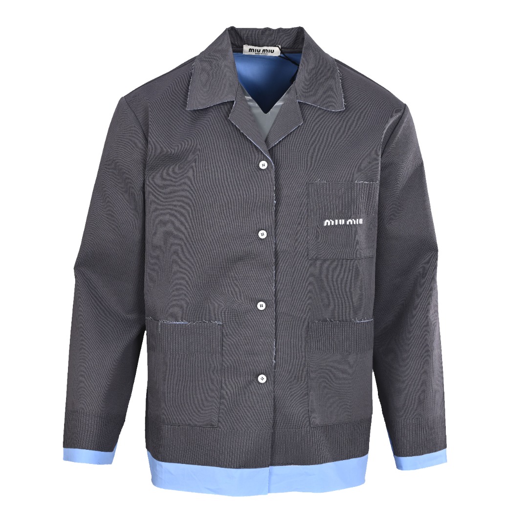这款衣服是AAAAA 1:1 质量 (非常棒). 使用了和原版一模一样的材料. 商标部分也保持了和缪缪/Miu Miu一样. 图片拍摄是实物衣服拍摄, 您所收到的实物保证和我们图片一模一样.