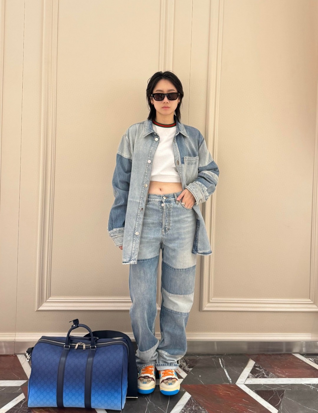 这款衣服是AAAAA 1:1 质量 (非常棒). 使用了和原版一模一样的材料. 商标部分也保持了和古奇/Gucci一样. 图片拍摄是实物衣服拍摄, 您所收到的实物保证和我们图片一模一样.