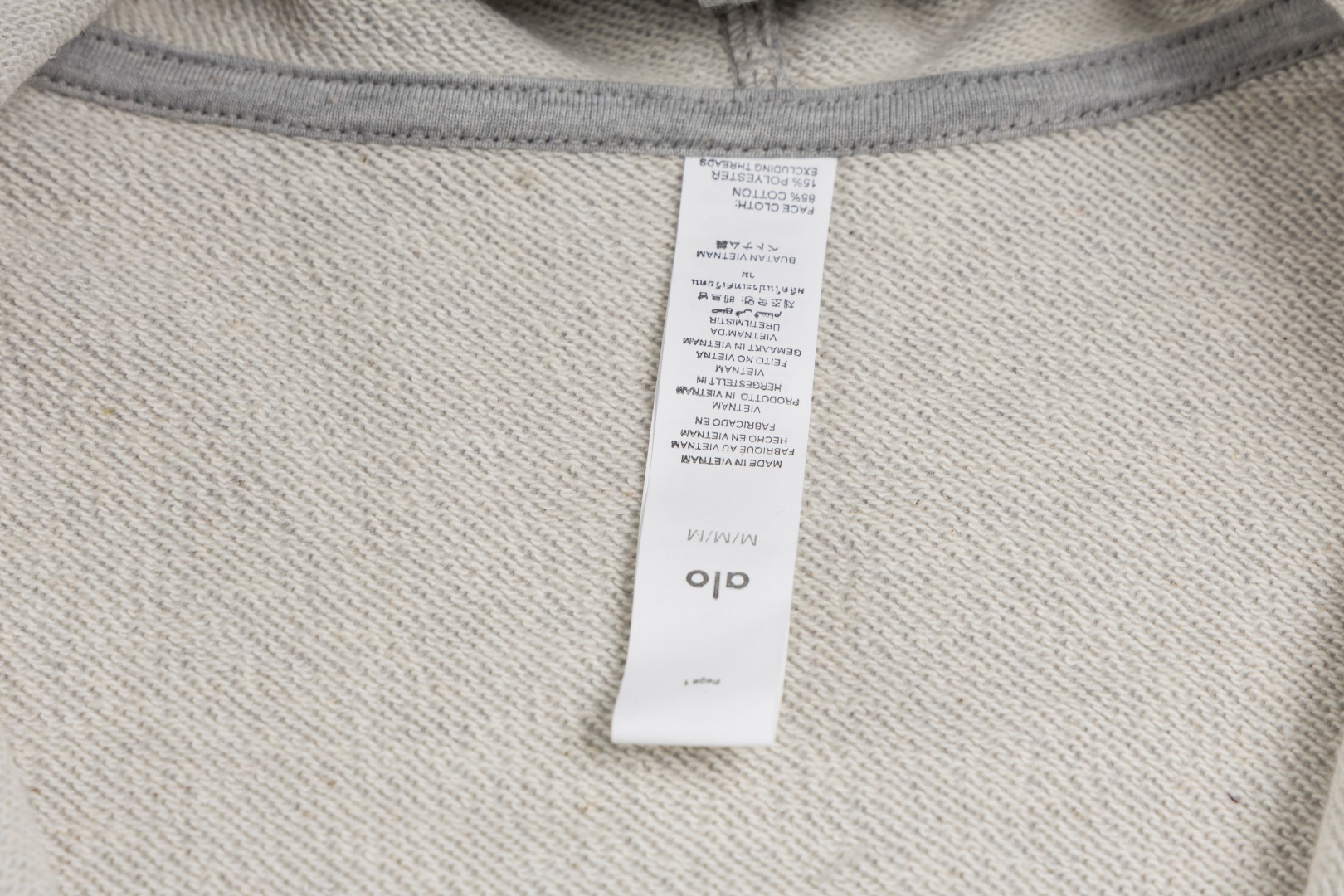 这款衣服是AAAAA 1:1 质量 (非常棒). 使用了和原版一模一样的材料. 商标部分也保持了和Alo Yoga一样. 图片拍摄是实物衣服拍摄, 您所收到的实物保证和我们图片一模一样.