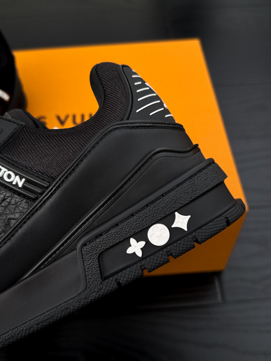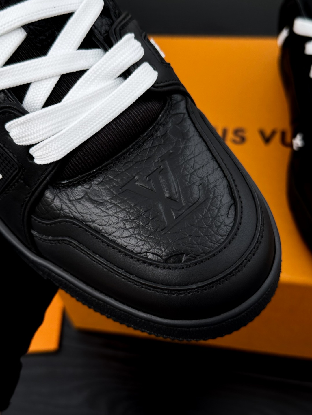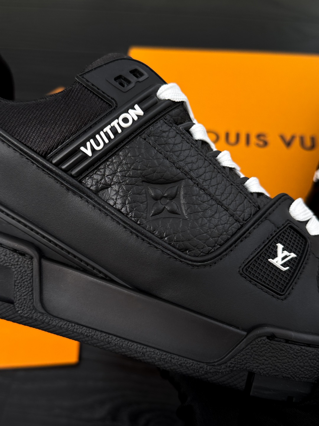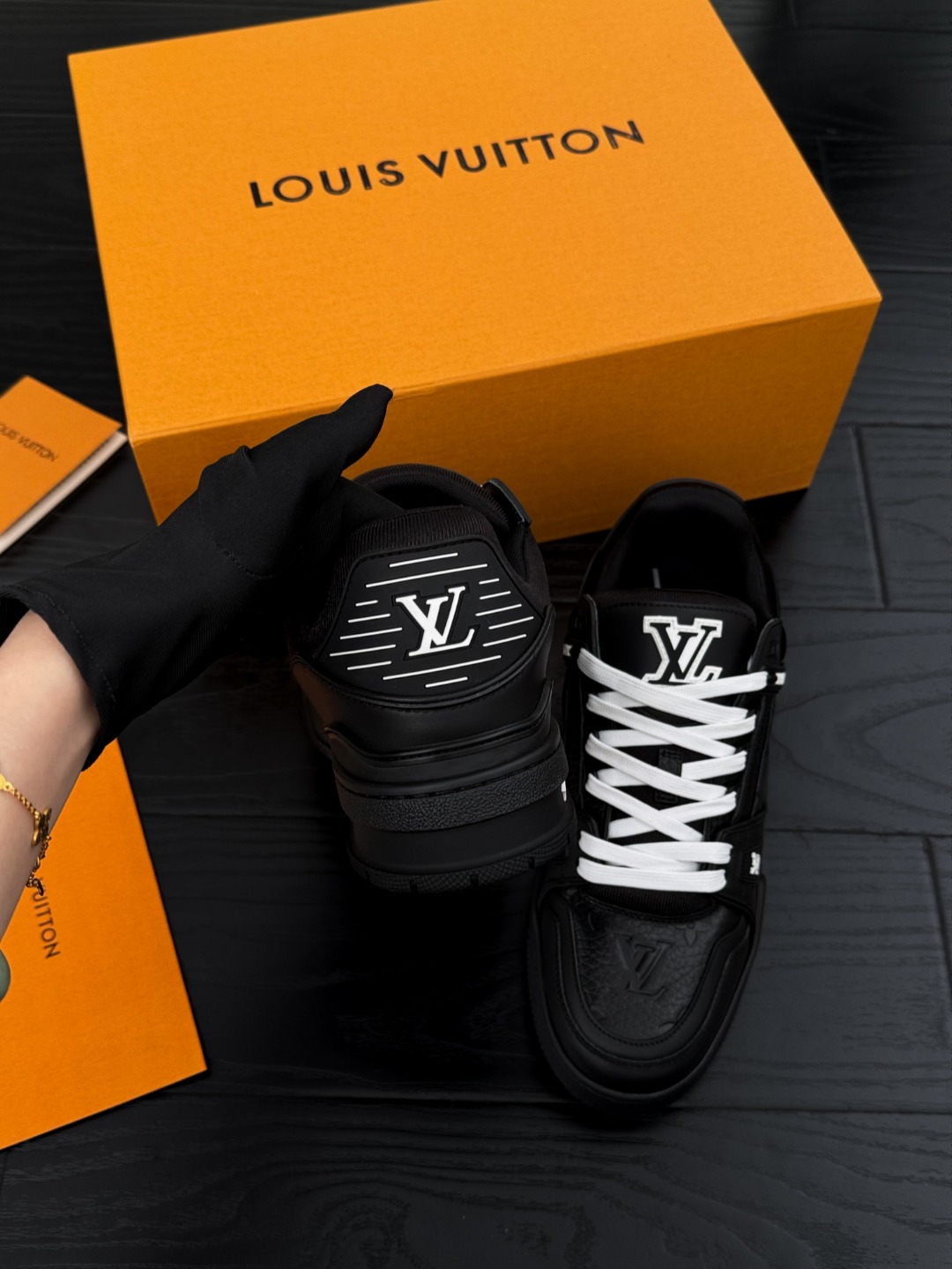 这款鞋子是AAAAA 1:1 质量 (非常棒). 使用了和原版一模一样的材料. 商标部分也保持了和路易威登/Louis Vuitton一样. 图片拍摄是实物鞋子拍摄, 您所收到的实物保证和我们图片一模一样.