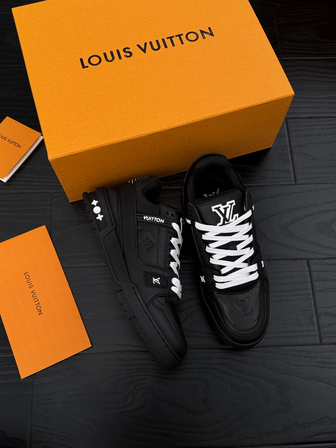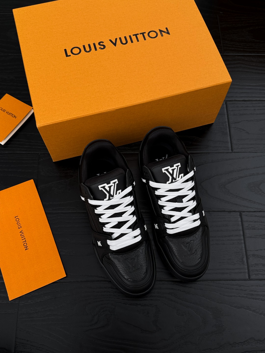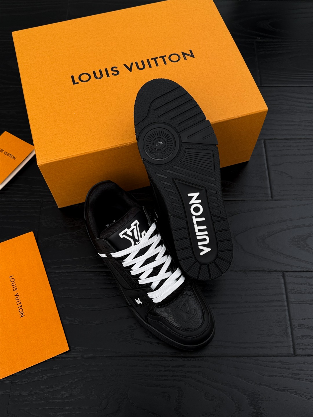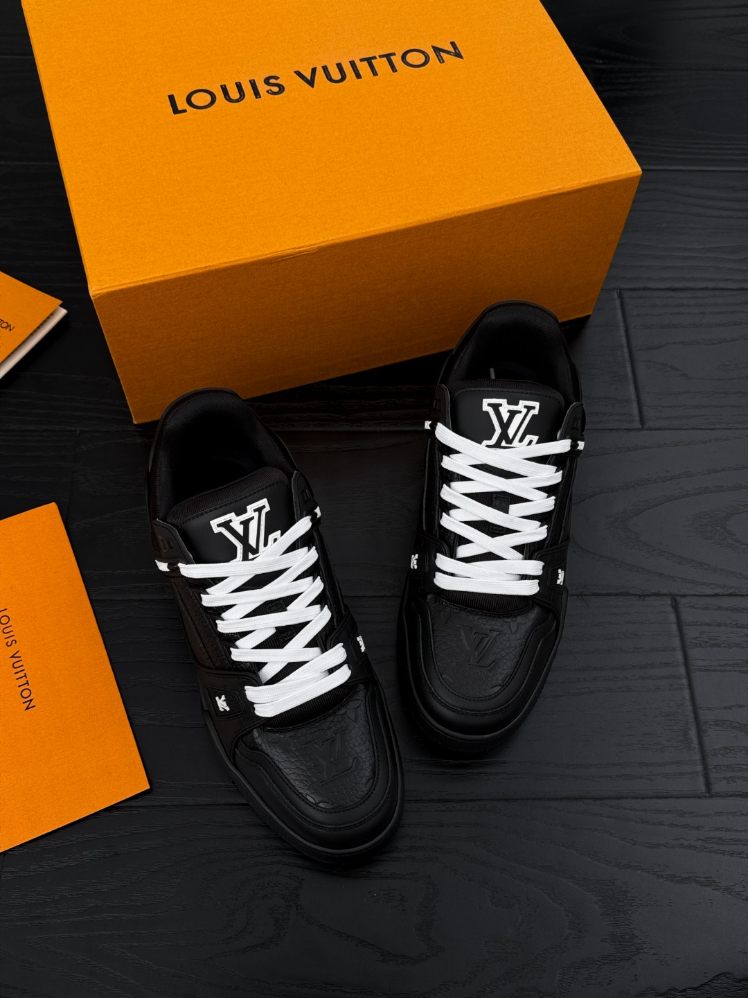 这款鞋子是AAAAA 1:1 质量 (非常棒). 使用了和原版一模一样的材料. 商标部分也保持了和路易威登/Louis Vuitton一样. 图片拍摄是实物鞋子拍摄, 您所收到的实物保证和我们图片一模一样.