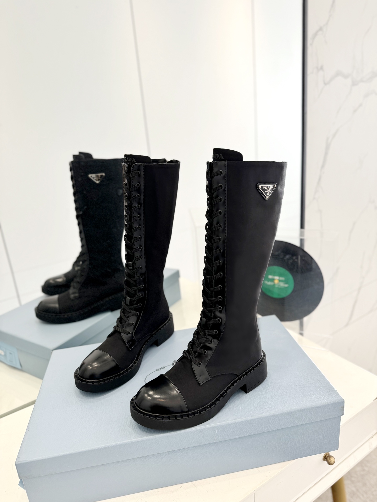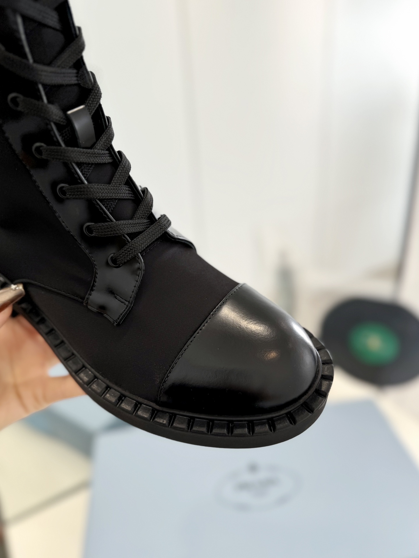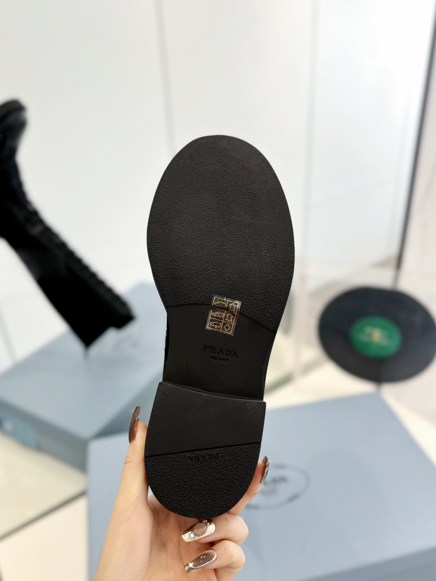 这款鞋子是AAAAA 1:1 质量 (非常棒). 使用了和原版一模一样的材料. 商标部分也保持了和普拉达/Prada一样. 图片拍摄是实物鞋子拍摄, 您所收到的实物保证和我们图片一模一样.