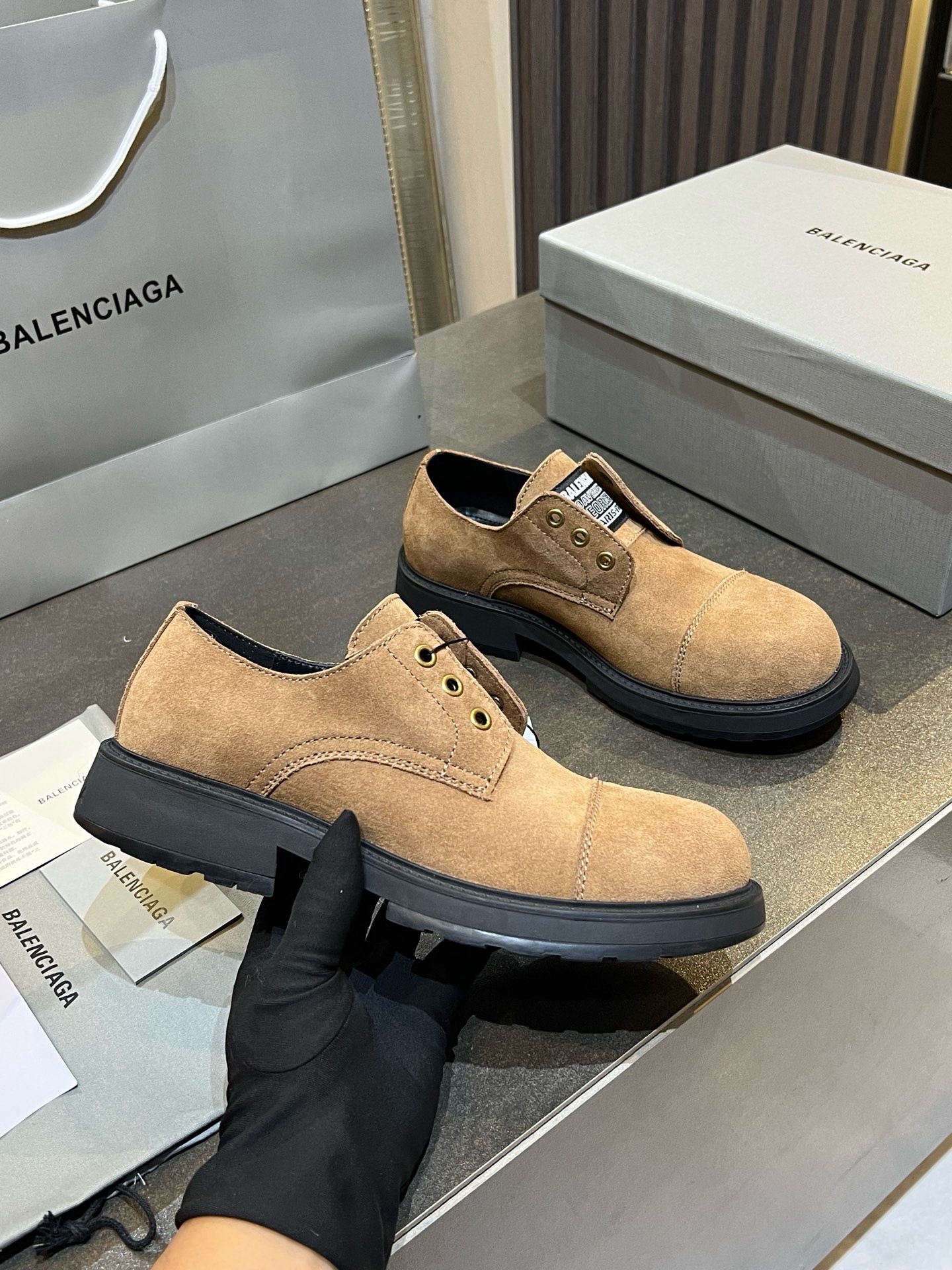 这款鞋子是AAAAA 1:1 质量 (非常棒). 使用了和原版一模一样的材料. 商标部分也保持了和巴黎世家/Balenciaga一样. 图片拍摄是实物鞋子拍摄, 您所收到的实物保证和我们图片一模一样.