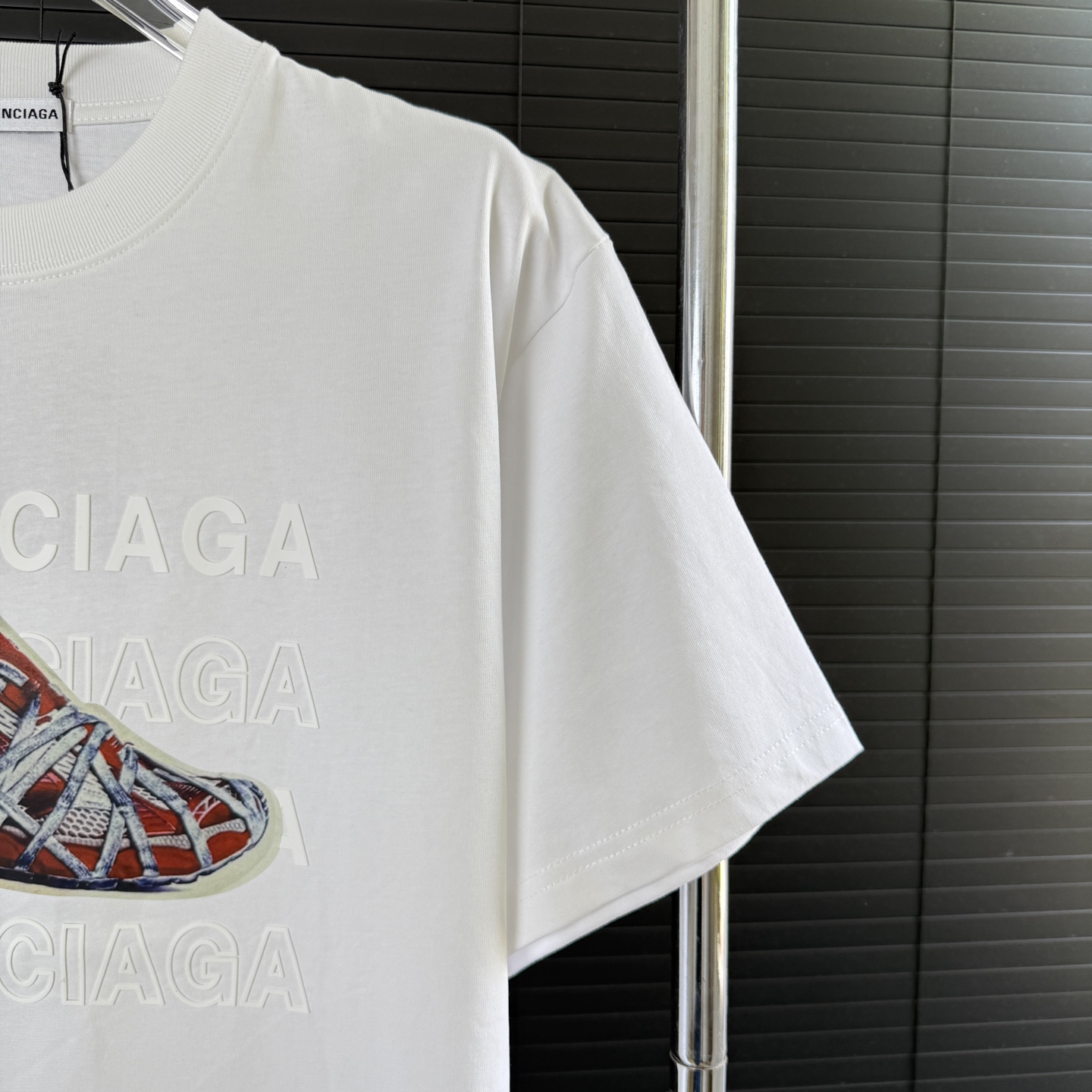 这款衣服是AAAAA 1:1 质量 (非常棒). 使用了和原版一模一样的材料. 商标部分也保持了和巴黎世家/Balenciaga一样. 图片拍摄是实物衣服拍摄, 您所收到的实物保证和我们图片一模一样.