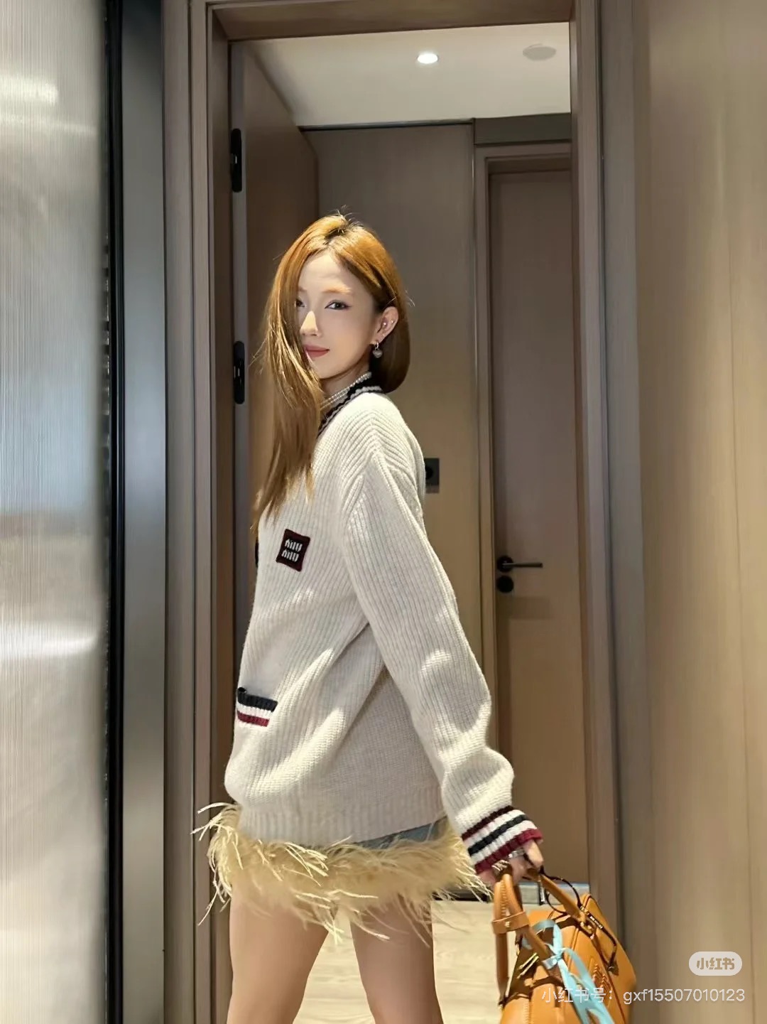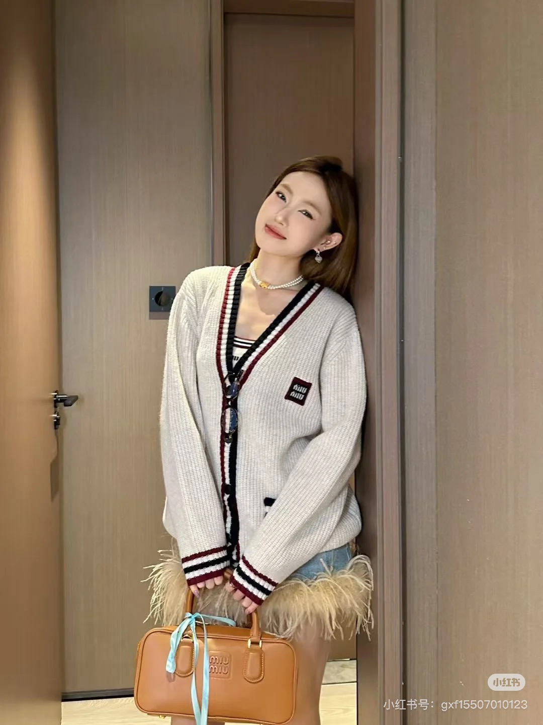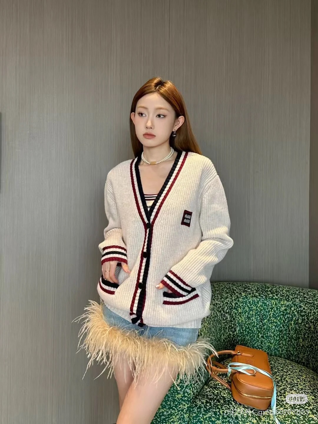 这款衣服是AAAAA 1:1 质量 (非常棒). 使用了和原版一模一样的材料. 商标部分也保持了和缪缪/Miu Miu一样. 图片拍摄是实物衣服拍摄, 您所收到的实物保证和我们图片一模一样.